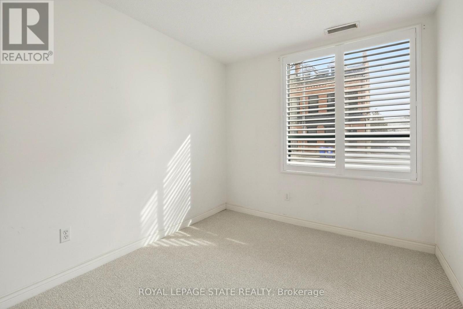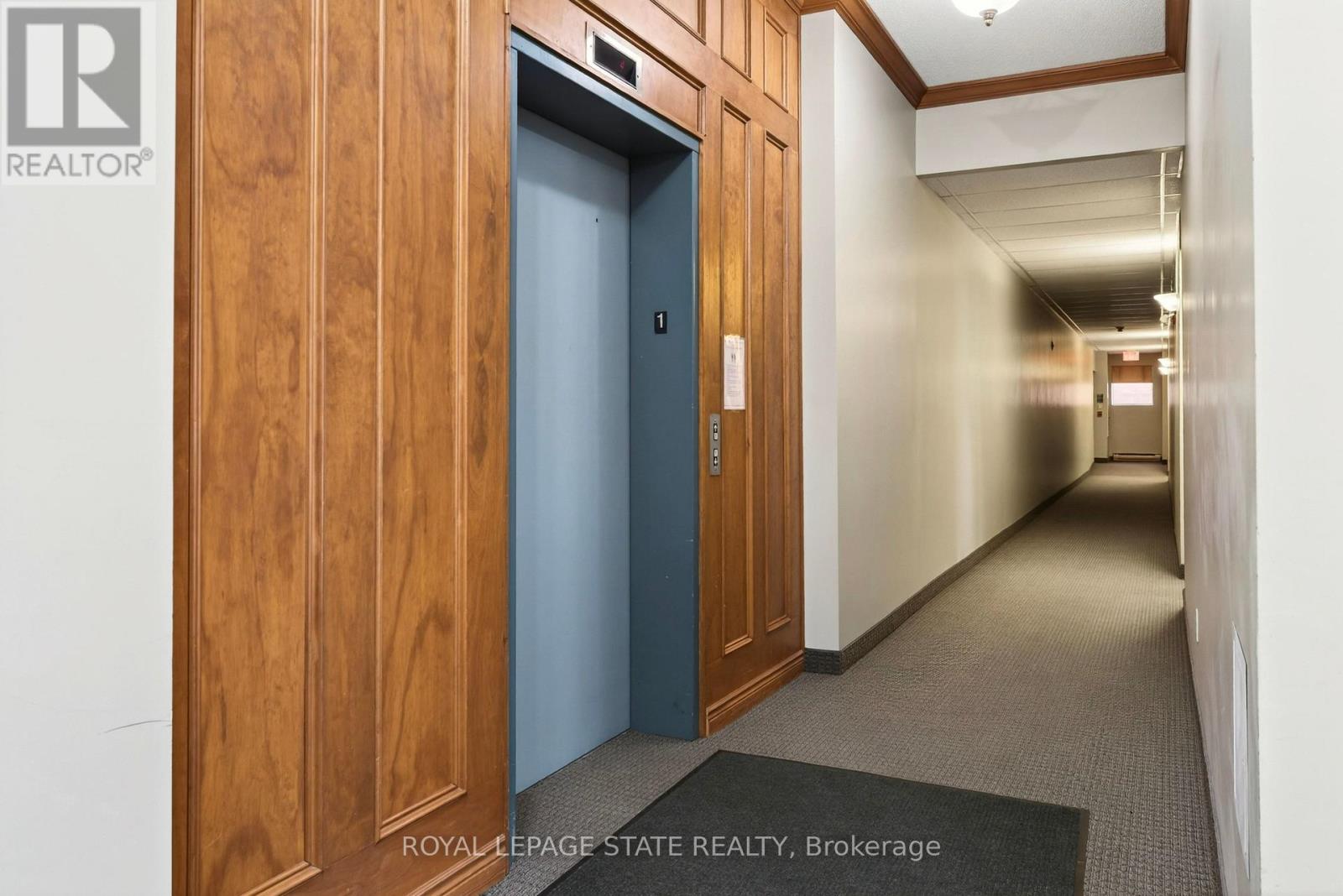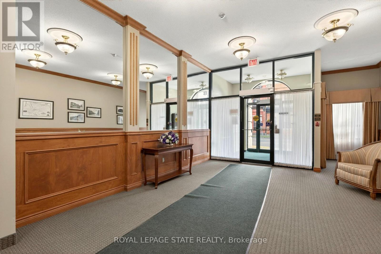 Welcome to Grafton Square in the heart of downtown Dundas. This main floor end unit provides accessible, walkable living just steps to shops, restaurants, parks, churches, the library, public transit and more. Bright and open, this condo is a blank canvas ready for your finishing touches. New carpet in both bedrooms(2026). The primary bedroom features his and hers closets and a 3-piece ensuite. Ensuite laundry. Enjoy your private balcony and the added light that comes with being an end unit. California shutters throughout. Includes one underground parking space and a large locker. Quiet well managed building with great amenities including a community room, exercise room, car wash, guest suite and plenty of visitor parking. (id:64974)