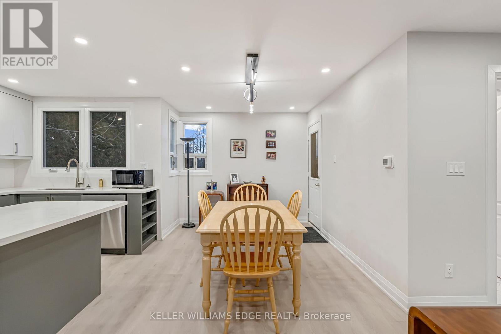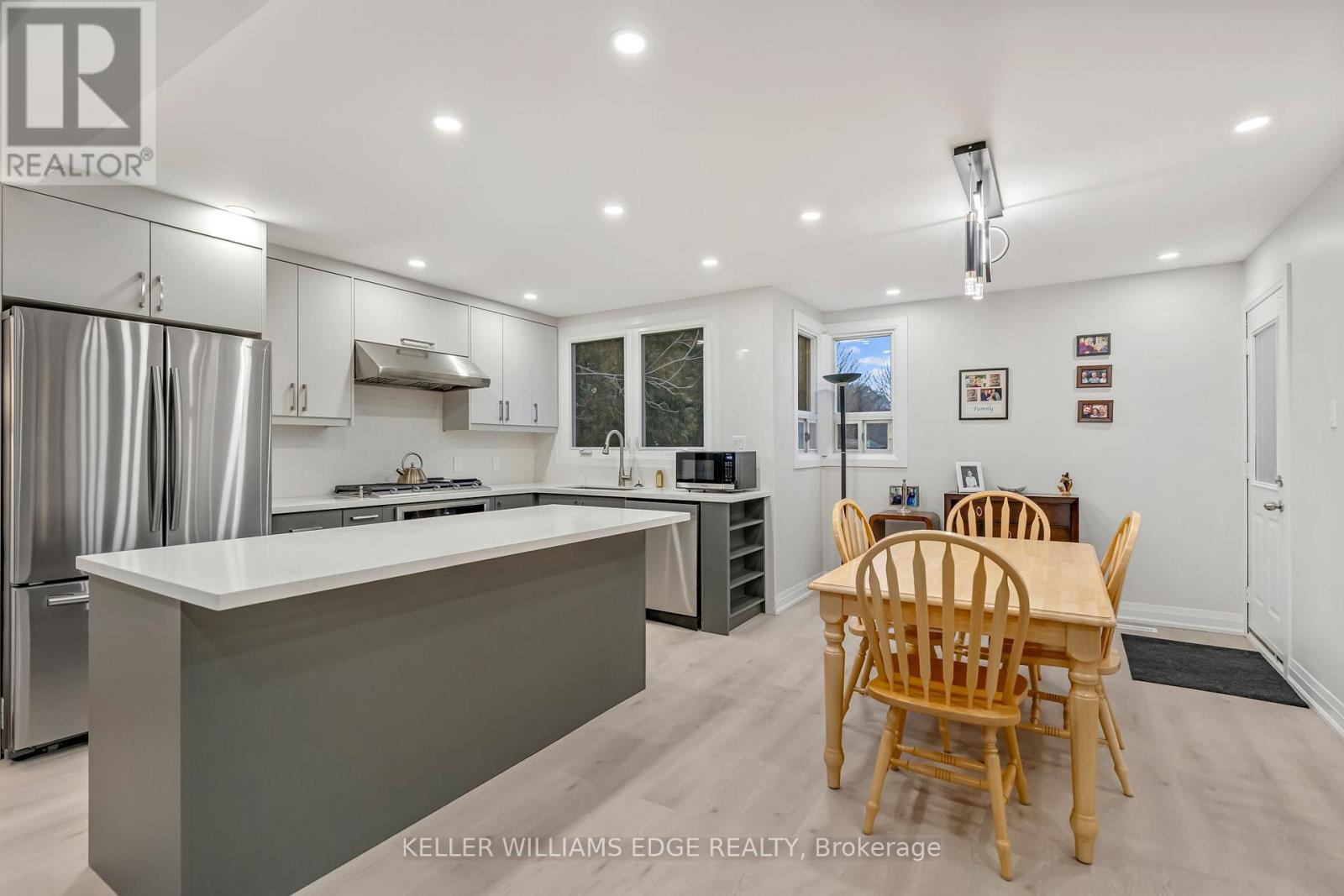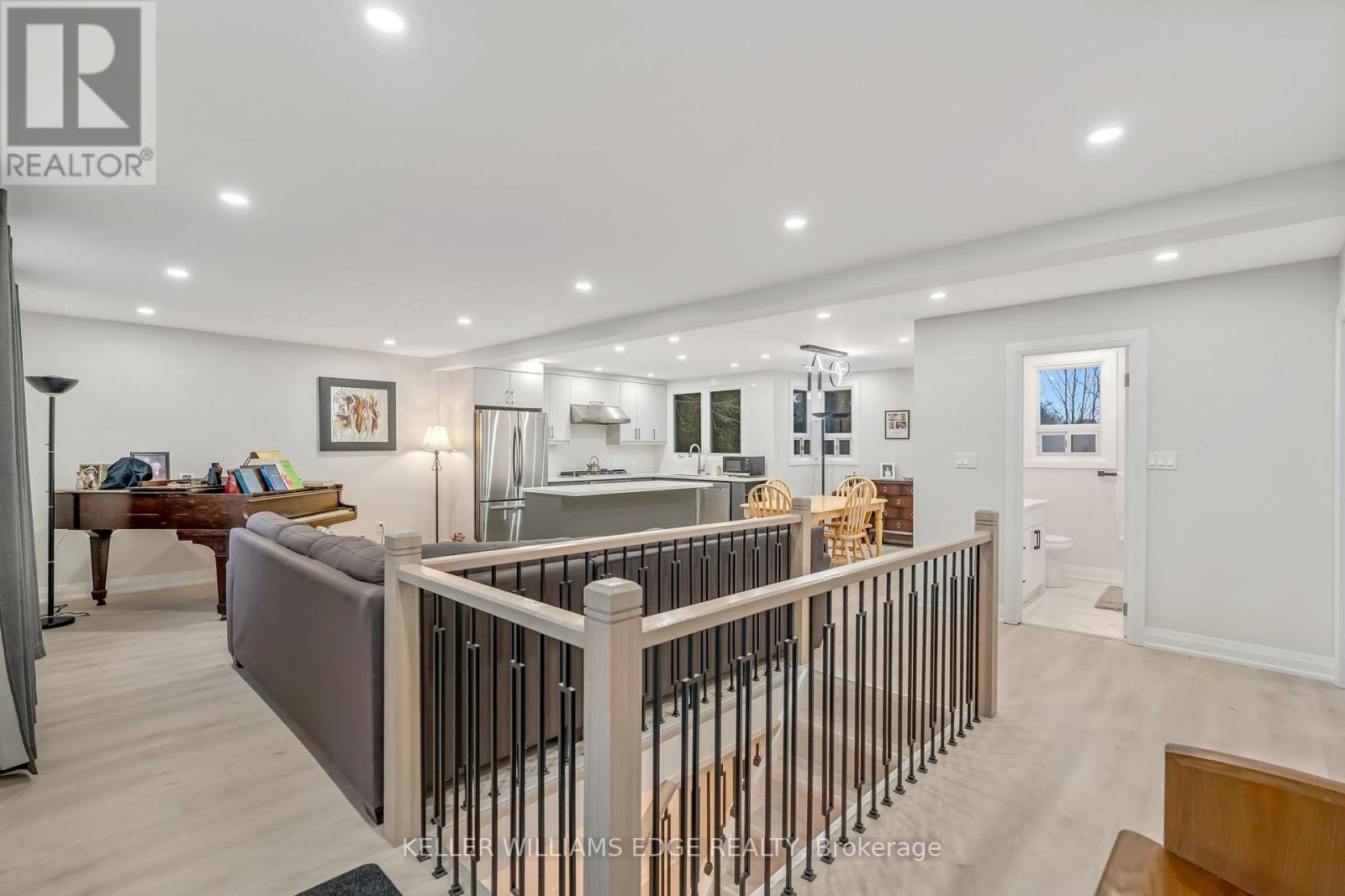 Located in one of Stoney Creek's most desirable neighbourhoods, this beautifully updated bungalow with 2+1 bedrooms, and 2 full bathrooms, is surrounded by Cherry Heights Park, Corman Park, local schools, the Historic Downtown, and an excellent selection of quality restaurants and amenities. The home has been thoughtfully redesigned to enhance light, flow, and everyday functionality, featuring oversized windows and a seamless open-concept layout. The modern kitchen is both stylish and practical, offering quartz countertops, stainless steel appliances, and a comfortable eat-in breakfast nook. A custom railing staircase leads to a well-planned lower level complete with an additional bathroom and a spacious recreation room perfect for guests, teenagers, or extended living space. Step outside to a newly built wood deck overlooking a professionally landscaped backyard oasis - backing onto a park - ideal for relaxing, entertaining, and enjoying the changing seasons. A truly turnkey property in an established community, offering refined updates, outdoor living, and an exceptional location. (id:64974)