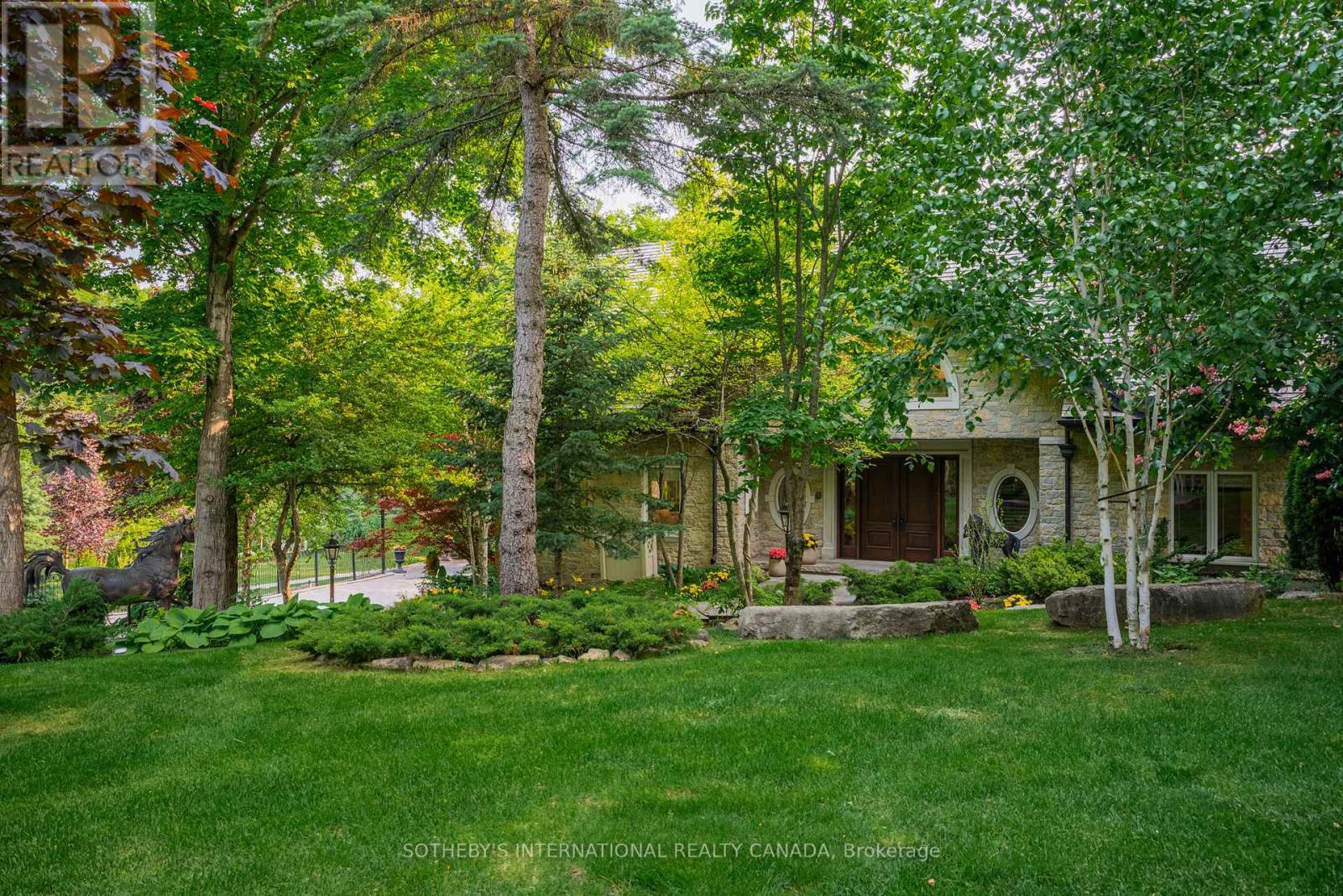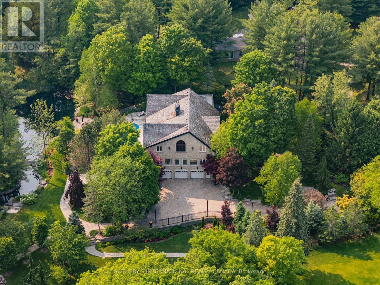 Exquisite Country Estate in Prestigious Kleinburg, Welcome to a truly one-of-a-kind oasis, nestled on over an acre of professionally landscaped grounds in the heart of Kleinburg, backing onto the prestigious Copper Creek Golf Club. This magnificent stone family home boasting over 6000 sq ft offers 4 spacious bedrooms, 6 luxurious bathrooms, and expansive principal rooms with soaring ceilings and top-of-the-line quality finishes throughout. The heart of the home is a gourmet chefs kitchen, seamlessly blending elegance and functionality for everyday living and exceptional entertaining. The finished lower level is a dream retreat, complete with a large wine cellar, perfect for connoisseurs. Outdoors, your private sanctuary awaits: In ground pool and spa with magical water features and two cascading waterfalls. Terrace with a custom-built BBQ house, complete with an overhead ventilation system. Pool house featuring a full chefs kitchen and 3-piece bath, opening directly to the terrace ideal for entertaining. Spring-fed pond , creating a serene, resort-like atmosphere. Heated private driveway, 3-car garage, outdoor lighting, in-ground sprinkler system, and lush rockery gardens all meticulously designed for year-round beauty and comfort. This rare gem combines unmatched luxury, privacy, and natural beauty, offering the best of refined country living just backing onto Copper Creek Golf Club & minutes from the conveniences of the city. Experience the magic of this breathtaking estate schedule your private tour today. (id:64974)