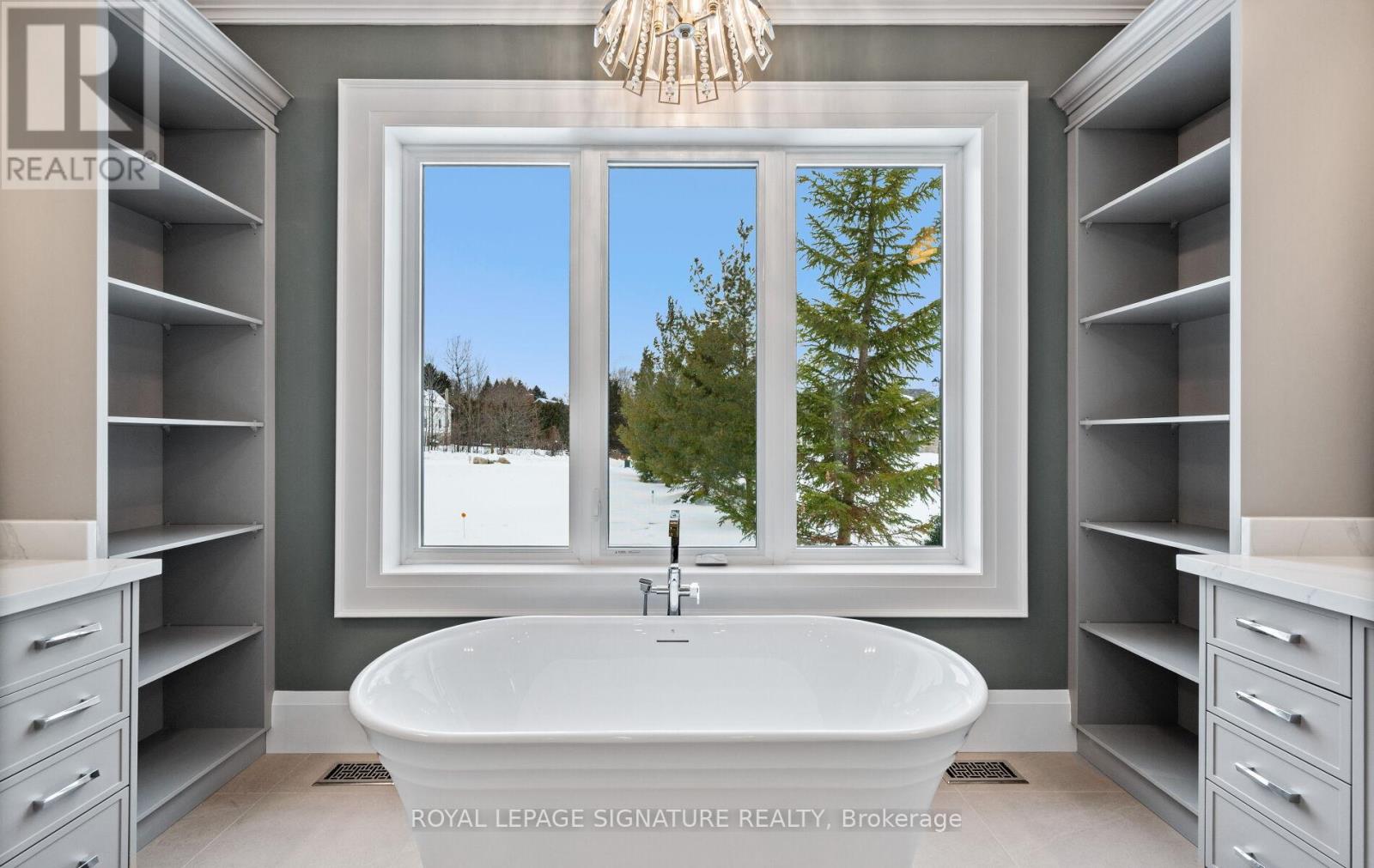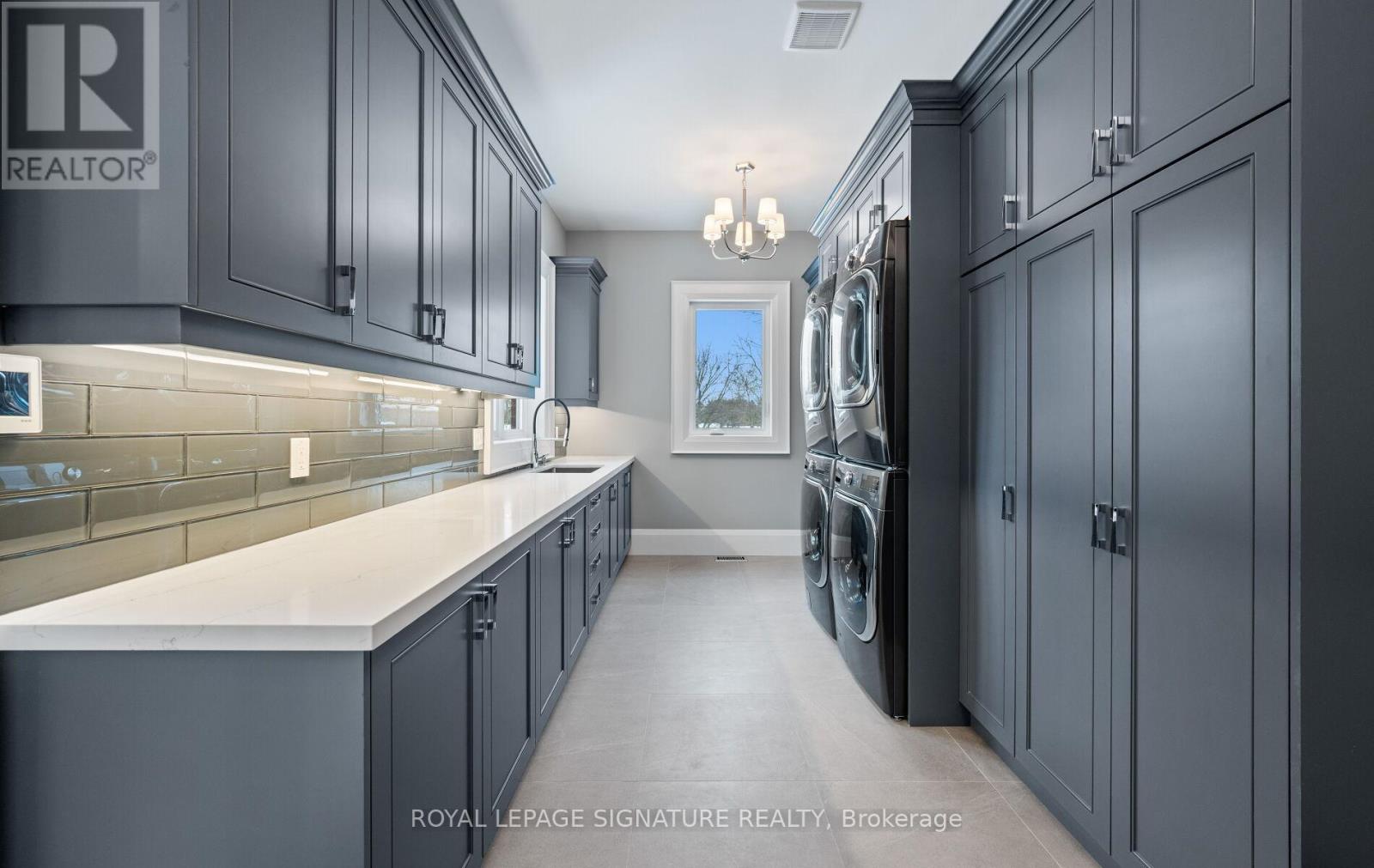 Welcome to a truly exceptional estate offering over 8,234 sq ft of finished living space on an approximately 1-acre lot, where grand scale meets thoughtful design and premium craftsmanship throughout.The home features 10' ceilings on the main floor and 9' ceilings on both the second level and walk-out basement, creating an airy, light-filled atmosphere. With 7 bedrooms and 9 bathrooms, this residence is perfectly suited for large families, multigenerational living, or those who love to entertain. At the heart of the home is a spectacular great room open to above, anchored by a dramatic floor-to-ceiling stone fireplace. The chef's kitchen is a showstopper, equipped with high-end built-in stainless steel appliances, an oversized island, custom backsplash, and direct walkout to the expansive 55' x 16' deck, ideal for indoor-outdoor living. A butler's pantry with prep kitchen adds both elegance and functionality.Retreat to the main-floor primary bedroom which is a private sanctuary featuring a gas fireplace with stone slab surround, walkout to the deck, a spa-like 5-piece ensuite, and a massive walk-in closet complete with a large center island. The main level is rounded out by hardwood flooring, plaster mouldings, and a highly functional laundry room with two sets of washers and dryers. Upstairs, you'll find four generously sized bedrooms, each with its own 3-piece ensuite and walk-in closet, offering comfort and privacy for every family member.The fully finished walk-out basement continues the luxury with two additional bedrooms, each with private ensuites, a large recreation room, fitness room, wet bar and high-end vinyl flooring. A separate 3-piece bathroom with backyard access makes this level ideal for entertaining or poolside plans. Additional highlights incl. Geothermal heating, Mvac central vac with hide a hose, paved driveway with concrete curbs. This one-of-a-kind property delivers luxury, efficiency, and scale in a refined package. An extraordinary home. (id:64974)