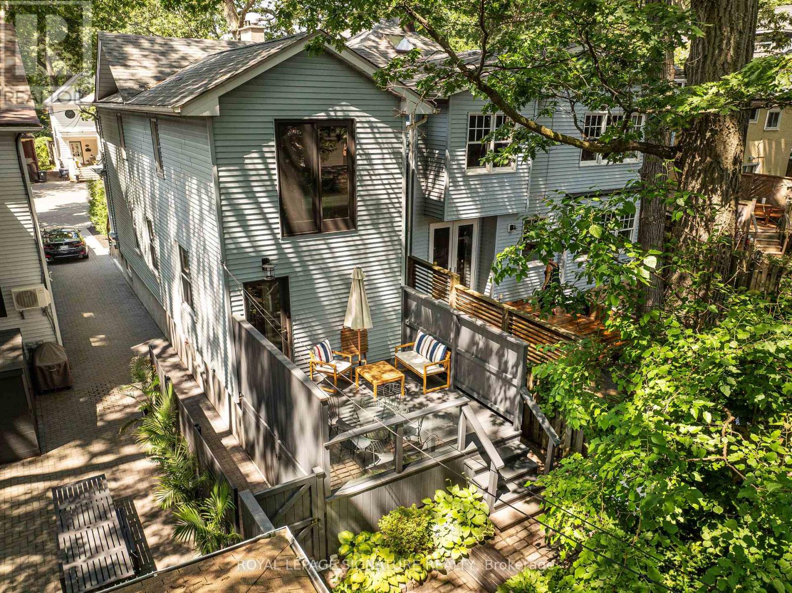 Coveted Silver Birch - Beneath The Most Enchanting Tree Canopy In The Beach. Balmy community - where mature trees arch overhead and neighbours become lifelong friends. And are you ready for this? LEGAL two-car tandum parking (with charger.) Said No Semi EVER! Beach nostalgia included. A quintessential front porch sets the tone - morning coffees, post-swim chats, Halloween magic. Solid character. Evident pride of ownership. A super-functional layout filled with stunning natural light, beautifully juxtaposed with warm wood tones and 9' ceilings.The main floor checks every box: a rare powder room, fireplace for cozy nights, a walk-in mudroom closet (because real life happens), and a generous dining room made for holiday dinners & long-table gatherings. Ideal kitchen for entertaining, homework & an extension for moving outdoors & bbqs on the deck (& check out the stunning original door.) Upstairs, the primary suite is incredibly spacious & private, with leafy views & beautiful natural shade - your own treetop retreat.The walk-out lower level with separate entrance offers flexibility for guests, teens, or in-laws. Out back, the yard is ready for dinner under the stars, storage for kayaks, and shady summer playdates. Steps to the lake and all the conveniences of Queen Street East. Out of milk? Craving warm bagels? You're close enough to go in your jammies. This is The Beach at its very best. (id:64974)