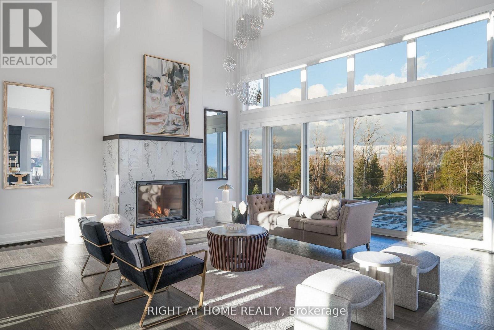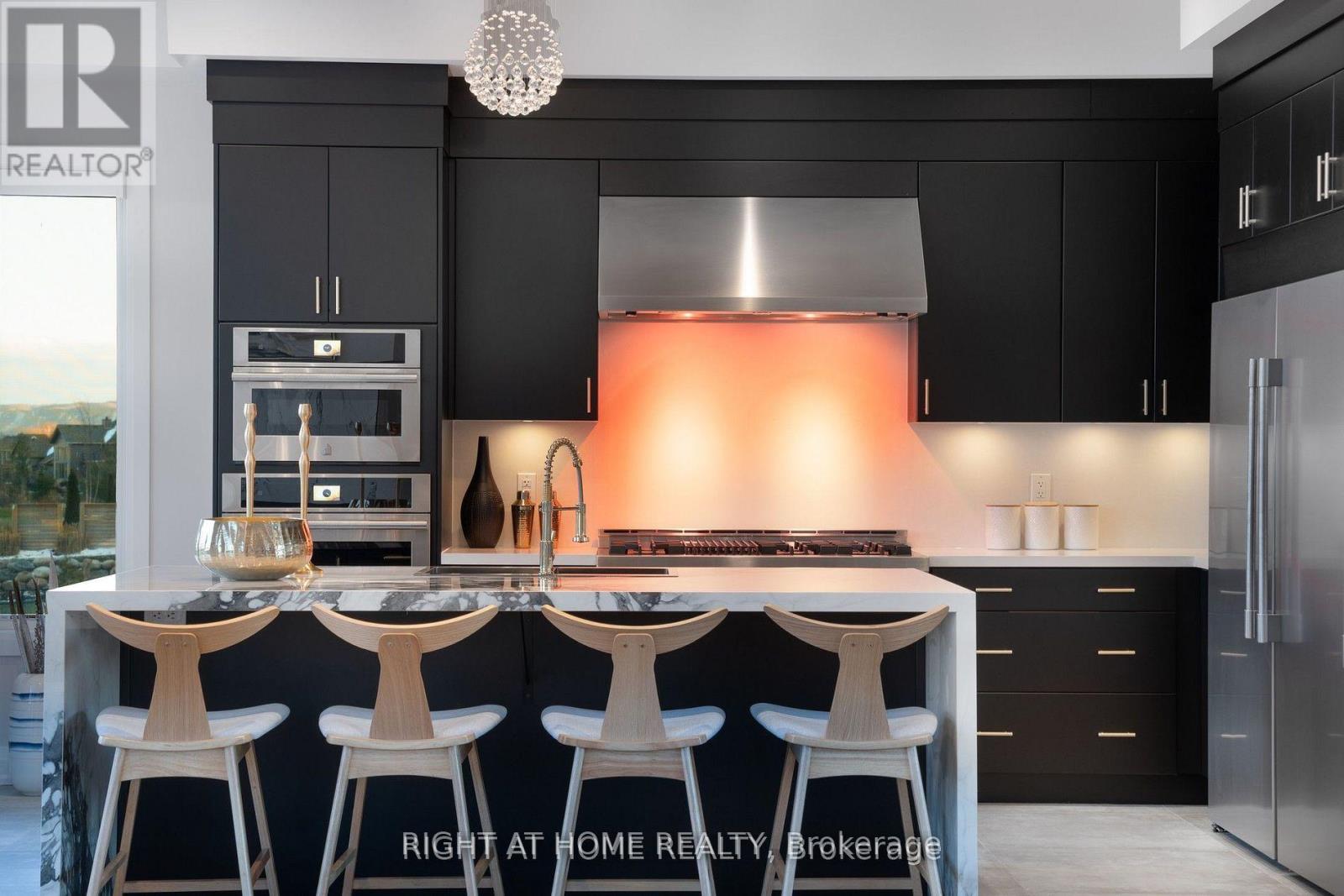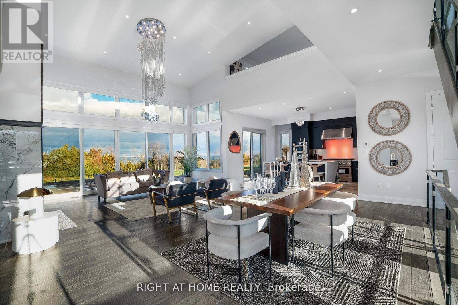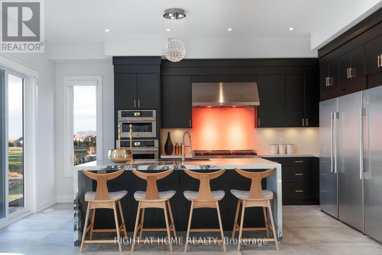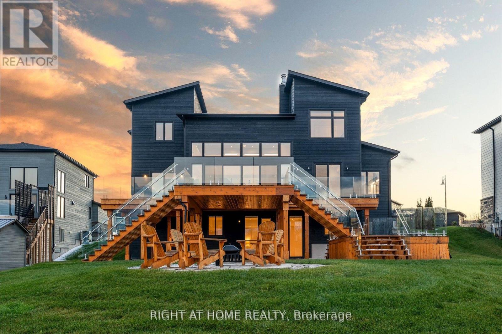 Welcome Home! An extraordinary residence perfectly positioned on one of Lora Bay's most prestigious and private lots. Overlooking the 13th hole, with sweeping views of Georgian Bay and the Niagara Escarpment, this architectural masterpiece offers an unparalleled lifestyle of elegance and serenity. Showcasing 5,337 sq. ft. of refined living space, this home impresses from the moment you step inside. The grand great room features 25 ft. cathedral ceilings, floor-to-ceiling windows, and seamless access to an expansive InvisiRail deck-a truly spectacular vantage point for sunrise, sunset, and year-round fairway vistas.The chef's kitchen is designed for both culinary excellence and entertaining, complete with a commercial-grade gas range, built-in convection microwave, stainless steel triple refrigerator/freezer, oversized island, and automated main-floor blinds for effortless comfort and privacy.The luxurious primary suite offers a private retreat with a gas fireplace, walkout to the deck, walk-in closet, and spa-inspired ensuite with a deep soaker tub and glass shower. The main level also includes an additional bedroom, a four-piece bath, and a convenient laundry room.The second-floor mezzanine overlooks the great room and leads to a bright office with bay views, two generous bedrooms, a four-piece bath, and a stylish wet bar with dishwasher-ideal for relaxation or hosting.The walkout lower level features a 1,700 sq. ft. approved apartment, perfect for extended family or guests, offering a roughed-in kitchen, two bedrooms, a four-piece bath, and direct access to the luxury hot tub and fire-pit lounge. An elegant paved driveway, curtain-style windows, and a double-car garage enhance the already striking curb appeal of this exceptional property. This is more than a home-it's a lifestyle of distinction in one of Georgian Bay's most desirable communities. (id:64974)