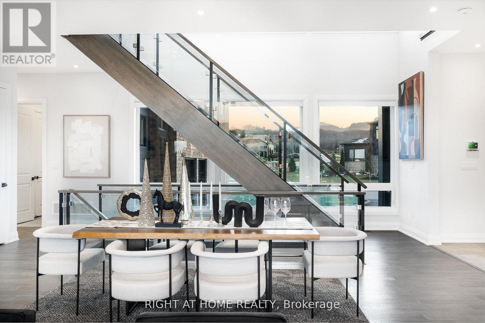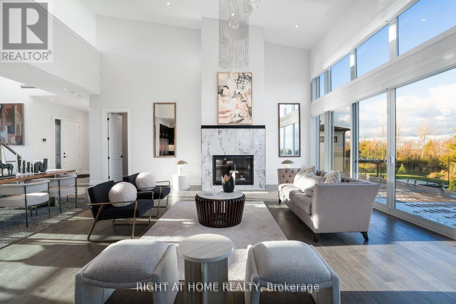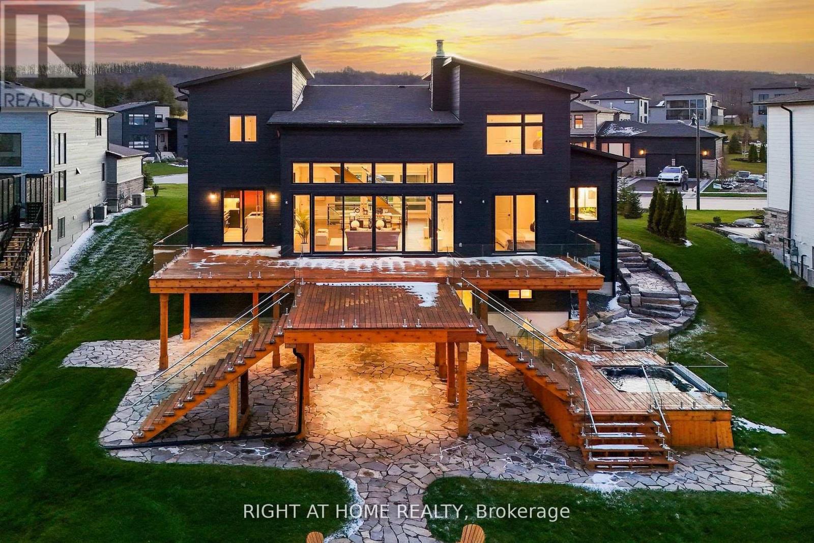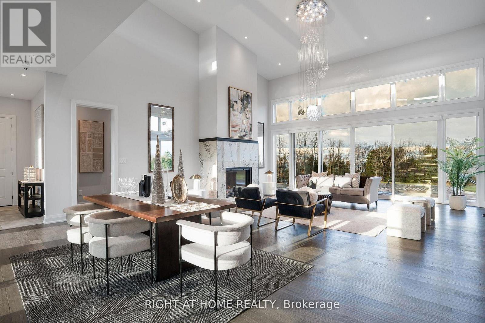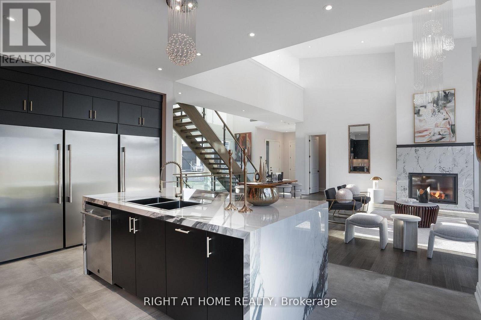 Welcome Home! An extraordinary residence perfectly positioned on one of Lora Bay's most prestigious and private lots. Overlooking the 13th hole, with sweeping views of Georgian Bay and the Niagara Escarpment, this architectural masterpiece offers an unparalleled lifestyle of elegance and serenity. Showcasing 5,337 sq. ft. of refined living space, this home impresses from the moment you step inside. The grand great room features 25 ft. cathedral ceilings, floor-to-ceiling windows, and seamless access to an expansive InvisiRail deck-a truly spectacular vantage point for sunrise, sunset, and year-round fairway vistas.The chef's kitchen is designed for both culinary excellence and entertaining, complete with a commercial-grade gas range, built-in convection microwave, stainless steel triple refrigerator/freezer, oversized island, and automated main-floor blinds for effortless comfort and privacy.The luxurious primary suite offers a private retreat with a gas fireplace, walkout to the deck, walk-in closet, and spa-inspired ensuite with a deep soaker tub and glass shower. The main level also includes an additional bedroom, a four-piece bath, and a convenient laundry room.The second-floor mezzanine overlooks the great room and leads to a bright office with bay views, two generous bedrooms, a four-piece bath, and a stylish wet bar with dishwasher-ideal for relaxation or hosting.The walkout lower level features a 1,700 sq. ft. approved apartment, perfect for extended family or guests, offering a roughed-in kitchen, two bedrooms, a four-piece bath, and direct access to the luxury hot tub and fire-pit lounge. An elegant paved driveway, curtain-style windows, and a double-car garage enhance the already striking curb appeal of this exceptional property. This is more than a home-it's a lifestyle of distinction in one of Georgian Bay's most desirable communities. (id:64974)