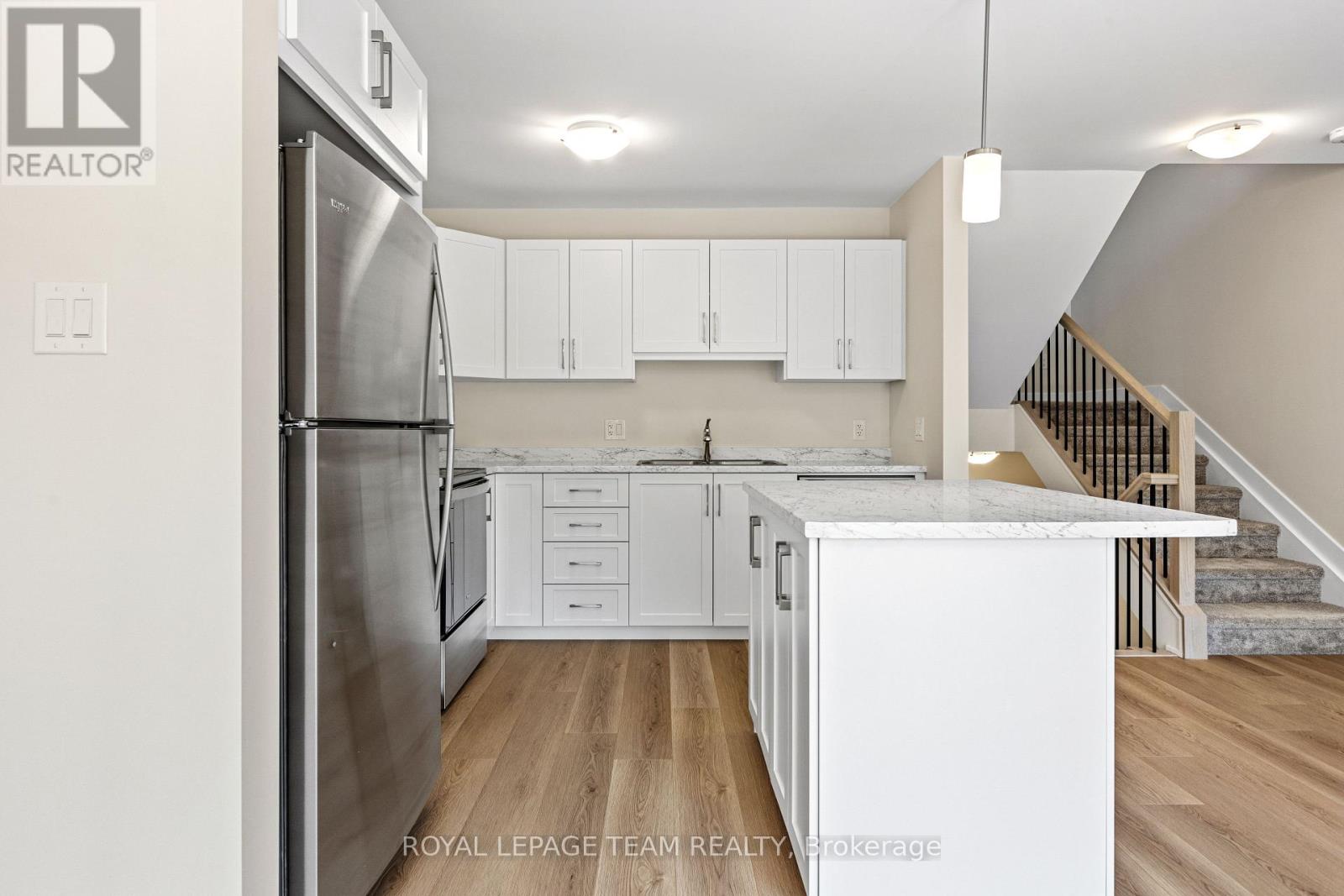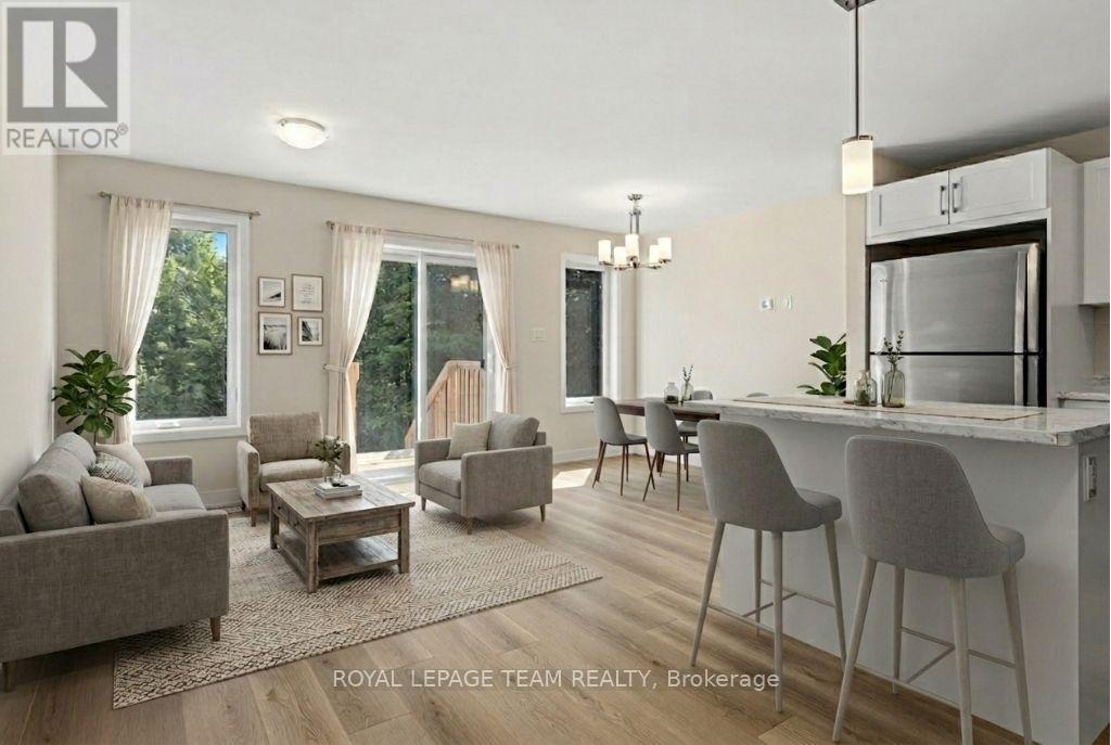 Move-In Ready - No Rear Neighbours- The ETSON by Park View Homes. Step into homeownership with confidence in The ETSON - a brand-new ENERGY STAR certified 3-bedroom, 2.5-bath townhome designed with first-time buyers in mind. Offering modern finishes, functional space, and peaceful greenspace views, this home blends comfort, value, and efficiency in one smart package. The bright open-concept main floor creates an inviting space to gather with friends and family, featuring laminate flooring, modern trim, flat ceilings, and satin nickel hardware throughout. The kitchen is both stylish and practical with a large island and pendant lighting, soft-close cabinetry, laminate countertops, stainless steel sink, and a full stainless steel appliance package - making it truly move-in ready from day one. Upstairs, the private primary suite includes a walk-in closet and an ensuite with a glass walk-in shower. Two additional bedrooms and a full main bath provide flexibility for guests, a nursery, or a dedicated home office. Convenient upper-level laundry with included washer and dryer makes everyday living easy. The finished lower level offers bonus living space - perfect for a rec room, workout area, or cozy movie nights. Additional features include modern spindles and rails, ceramic tile in bathrooms and laundry, low-flow toilets, and a designer-curated finishing package. Outside, enjoy a rear deck overlooking serene greenspace, plus sodded front and rear yards, an asphalt driveway, and a patio stone walkway for polished curb appeal. Located in a growing, family-friendly community, you'll appreciate nearby parks, schools, everyday shopping, and convenient access to major routes - offering small-town charm with easy connectivity. Built in 2024 and backed by the full Tarion Warranty Program, The ETSON is move-in ready and waiting to welcome you home. (id:64974)