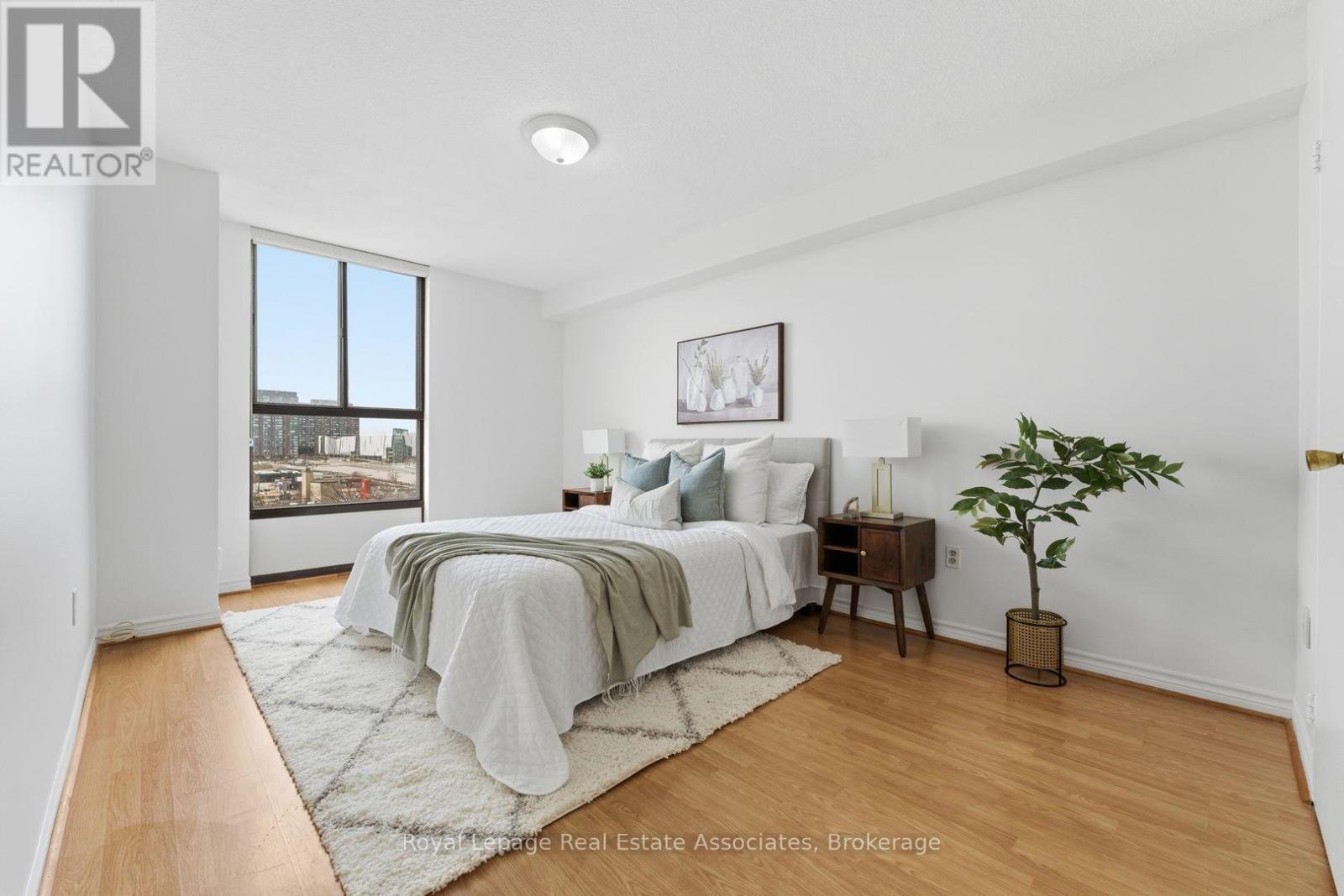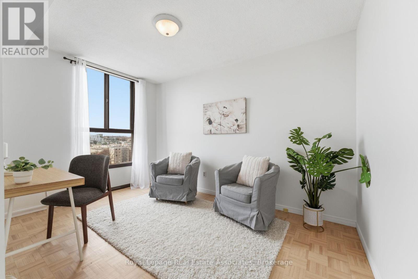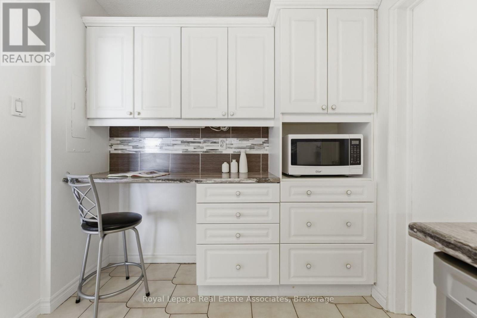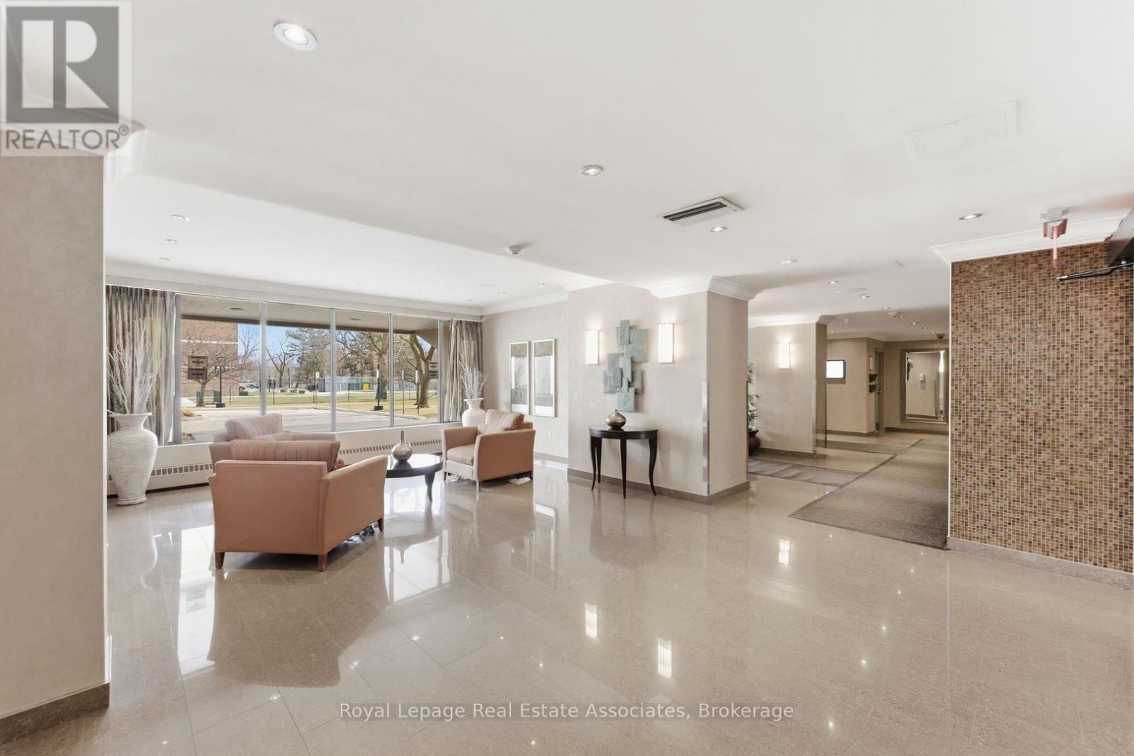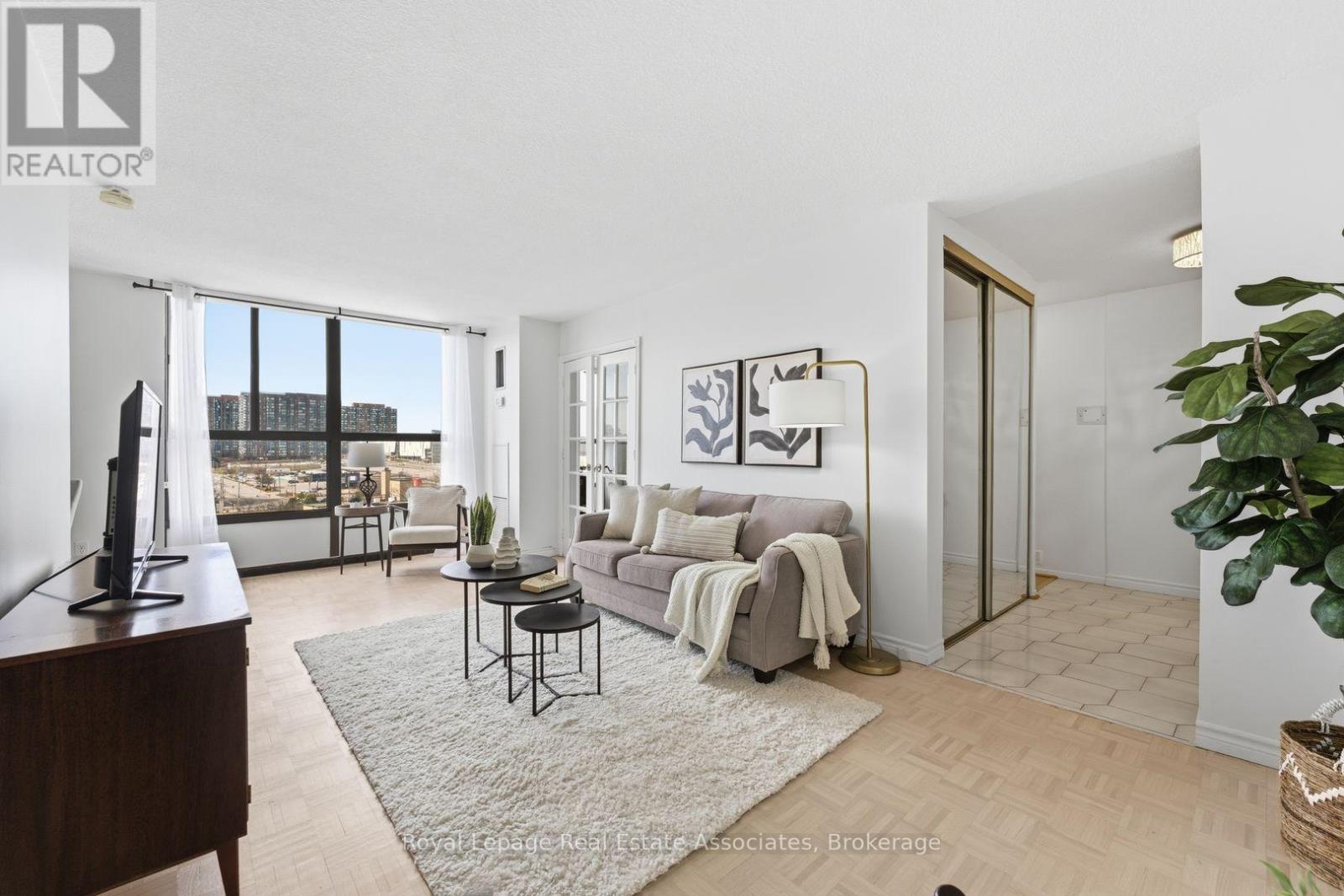 With 1265 square feet, 2 large bedrooms and a huge den graced with double French doors, this spacious and bright unit is just what you've been looking for! The kitchen features modern white cabinetry, stainless steel appliances, ceramic floors, tile backsplash, double sink and lots of storage. Perfect for creating those wonderful holiday meals! The open concept living/dining space features large windows for lots of natural light, warm parquet floors and a walkout to the lovely balcony - a wonderful place to relax at the end of the day. The bedrooms include hardwood floors, big windows and large closets and the oversize den can easily serve as a third bedroom. Both washrooms have been updated with modern finishes, soft-close cabinets and ceramic flooring. There's an ensuite storage room and a massive ensuite laundry room with even more storage space! Public Transit options are plentiful with nearby Cooksville GO, numerous bus routes and the upcoming Hurontario LRT. Easy access to the QEW or 403 and just 16 minutes to Pearson Airport. Trillium Hospital is close by and there are fantastic shopping and restaurant options all along Dundas and Hurontario. Explore the numerous parks and trails in the vicinity, pop over to Cooksville Library for a good read or enjoy skating, fitness and swimming at Mississauga Valley Community Centre. This neighbourhood has everything you and your family need! (id:64974)