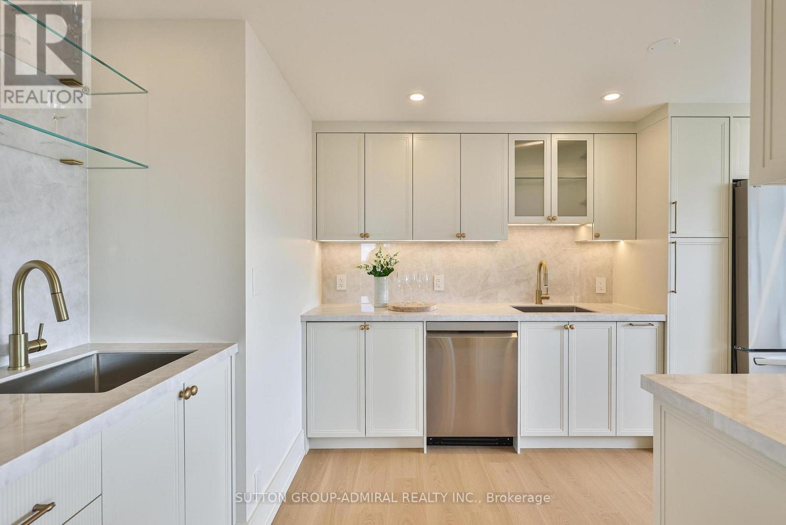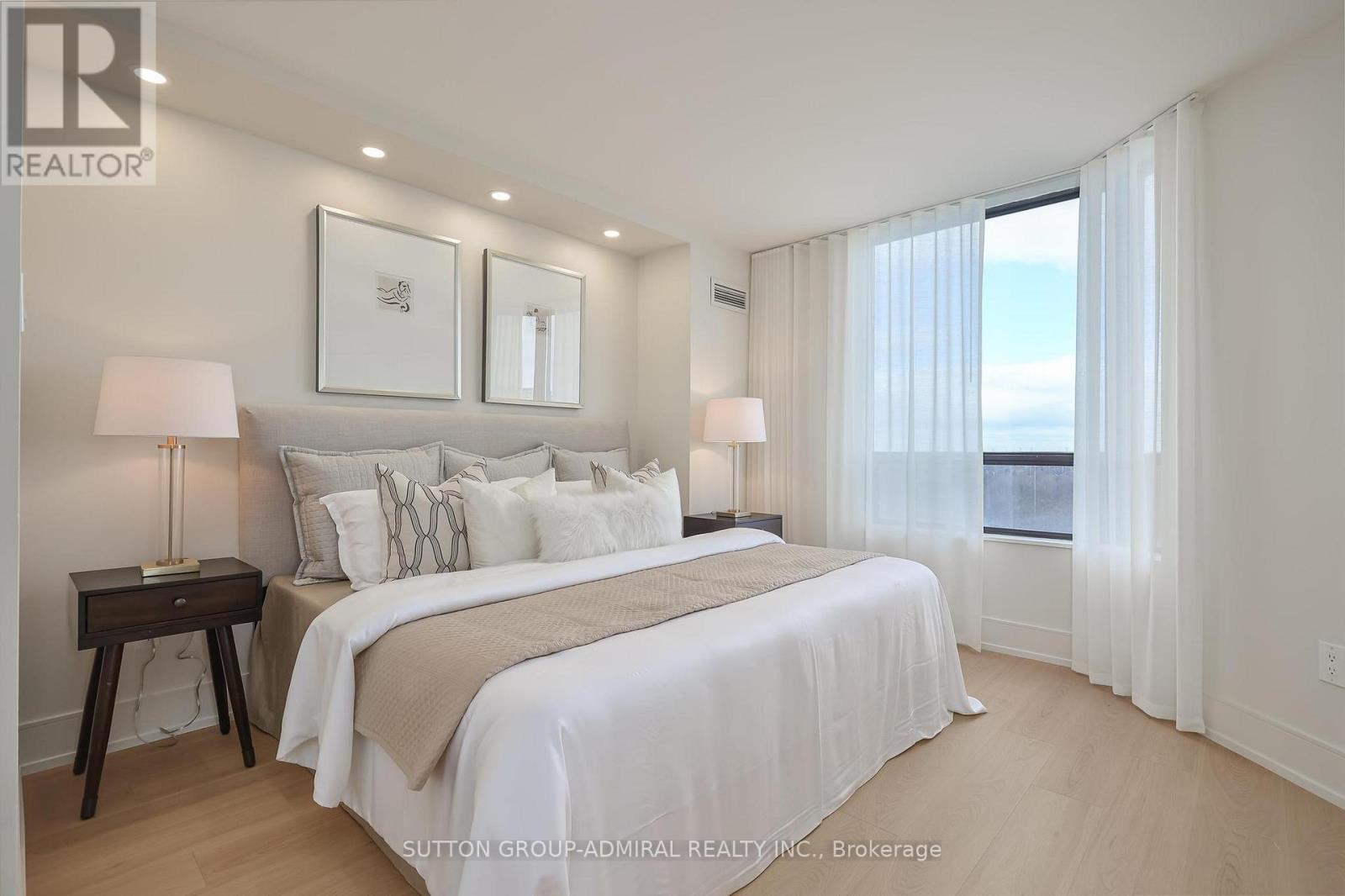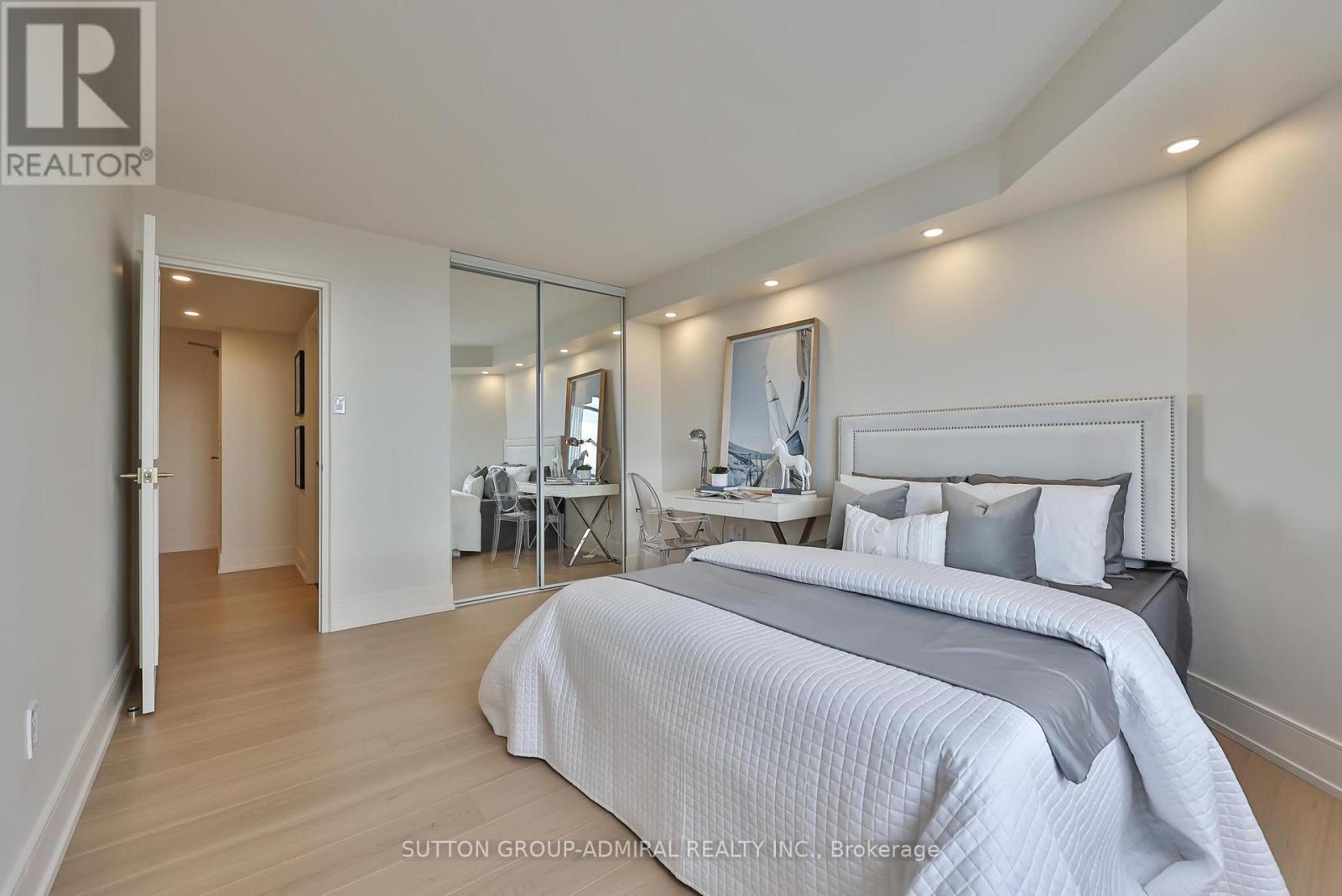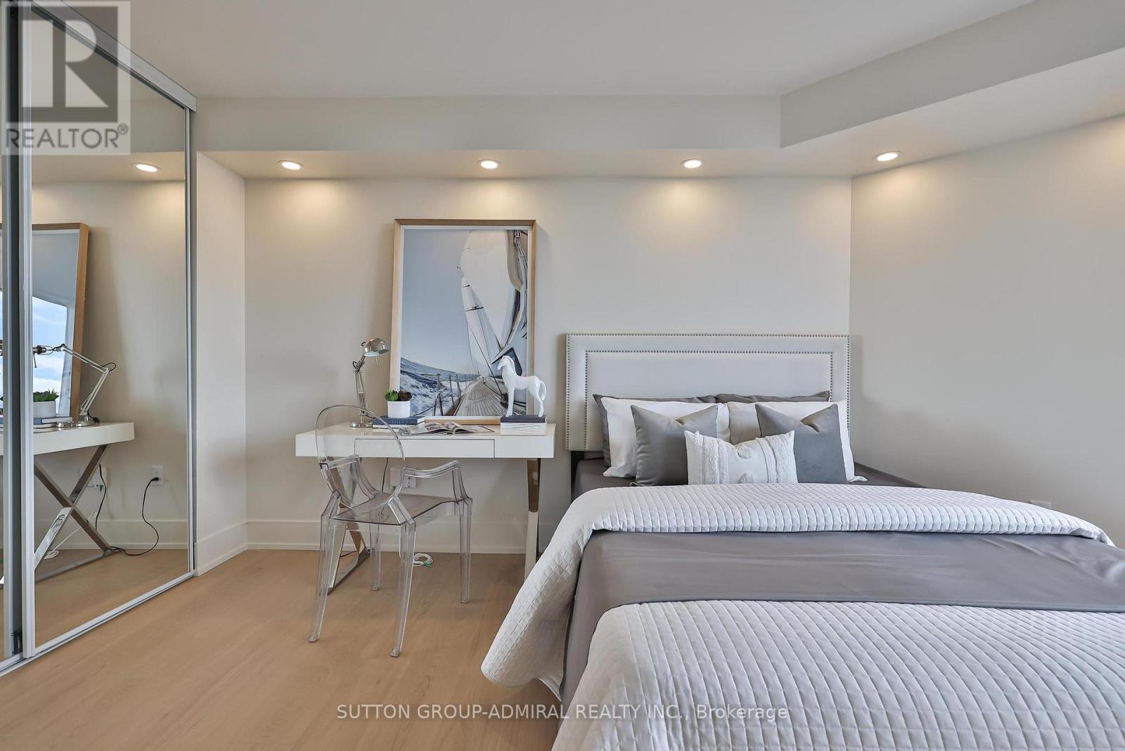 Stunning Fully Renovated 2 Bedroom, 2 Bathroom Suite Featuring The Largest Layout In The Building! Enjoy Spectacular Unobstructed South And West Views Stretching All The Way To The CN Tower. This Designer-Finished Unit Showcases Smooth Ceilings, LED Pot Lights, And High-End Finishes Throughout. The Dream Kitchen Is Perfect For Cooking And Entertaining, Featuring Stainless Steel Appliances, Two Separate Sinks, And A Spacious Eat-In Area. The Primary Bedroom Offers A Custom Walk-In Closet And A Luxurious 4-Piece Ensuite Bathroom. Step Out To The Large South-Facing Balcony And Take In The Incredible Panoramic Views. Includes The Rare Bonus Of Two Parking Spots. A Truly Stunning Unit That Shows Beautifully. (id:64974)