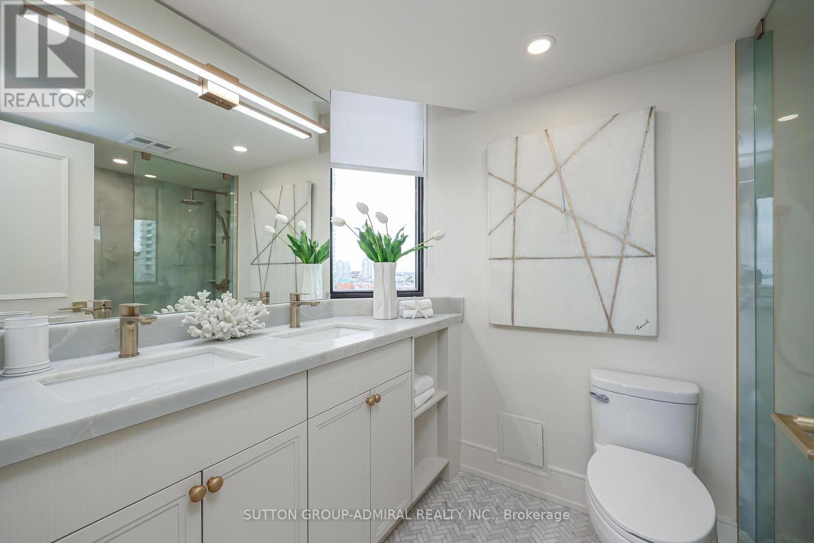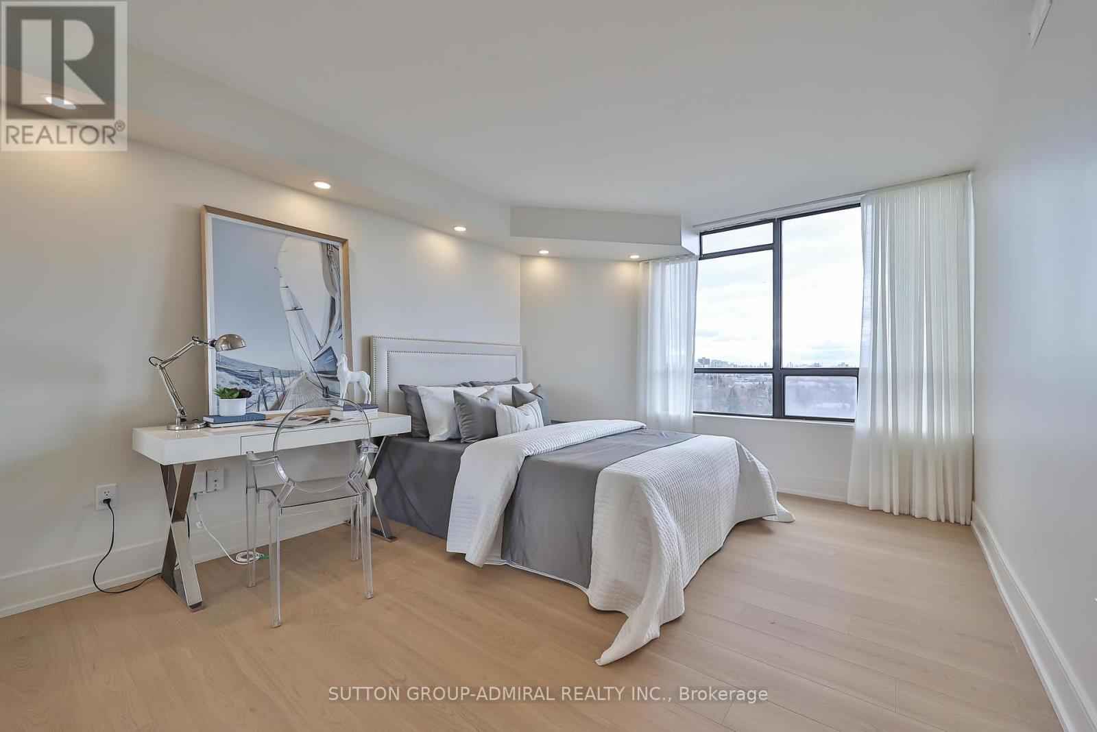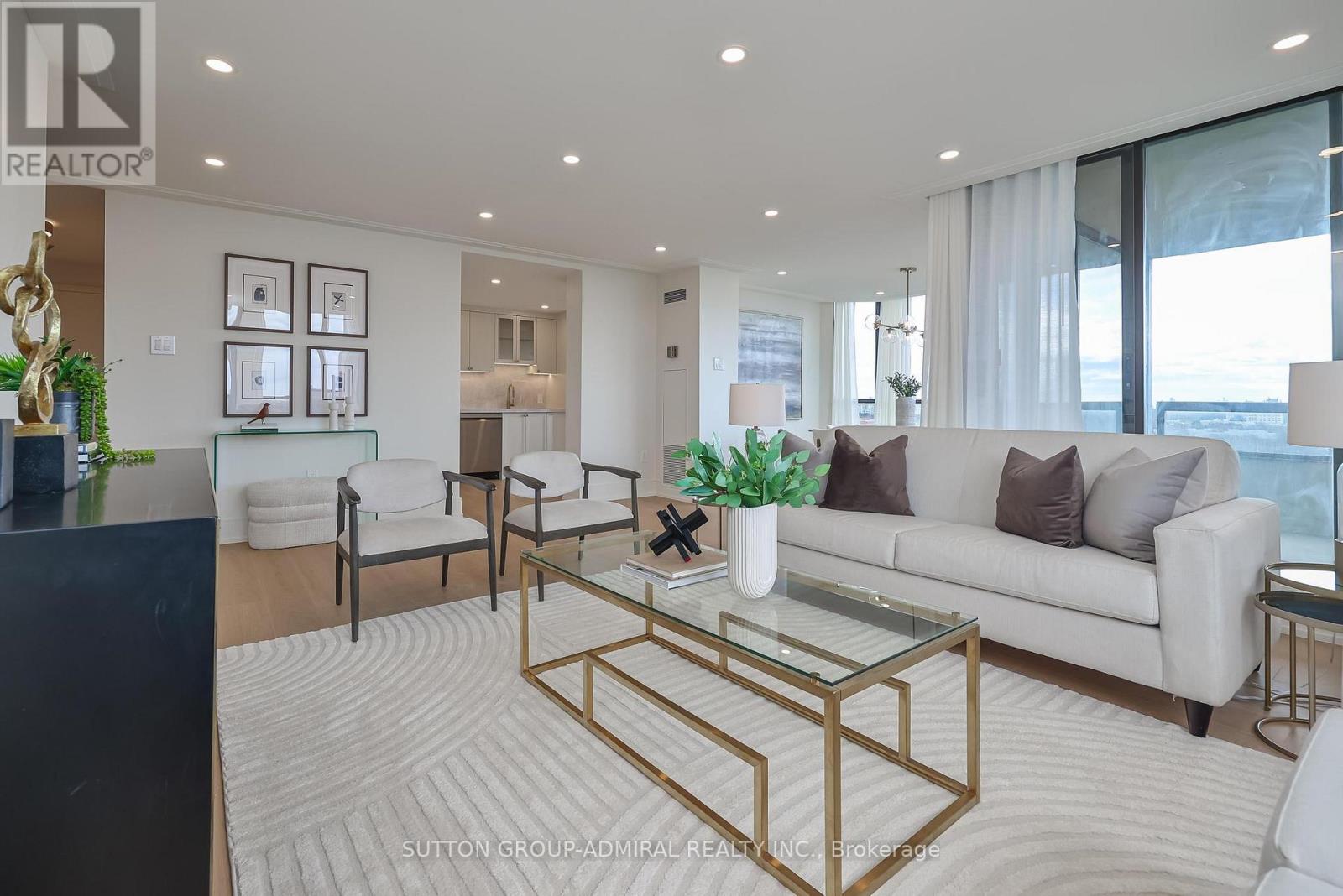 Stunning Fully Renovated 2 Bedroom, 2 Bathroom Suite Featuring The Largest Layout In The Building! Enjoy Spectacular Unobstructed South And West Views Stretching All The Way To The CN Tower. This Designer-Finished Unit Showcases Smooth Ceilings, LED Pot Lights, And High-End Finishes Throughout. The Dream Kitchen Is Perfect For Cooking And Entertaining, Featuring Stainless Steel Appliances, Two Separate Sinks, And A Spacious Eat-In Area. The Primary Bedroom Offers A Custom Walk-In Closet And A Luxurious 4-Piece Ensuite Bathroom. Step Out To The Large South-Facing Balcony And Take In The Incredible Panoramic Views. Includes The Rare Bonus Of Two Parking Spots. A Truly Stunning Unit That Shows Beautifully. (id:64974)