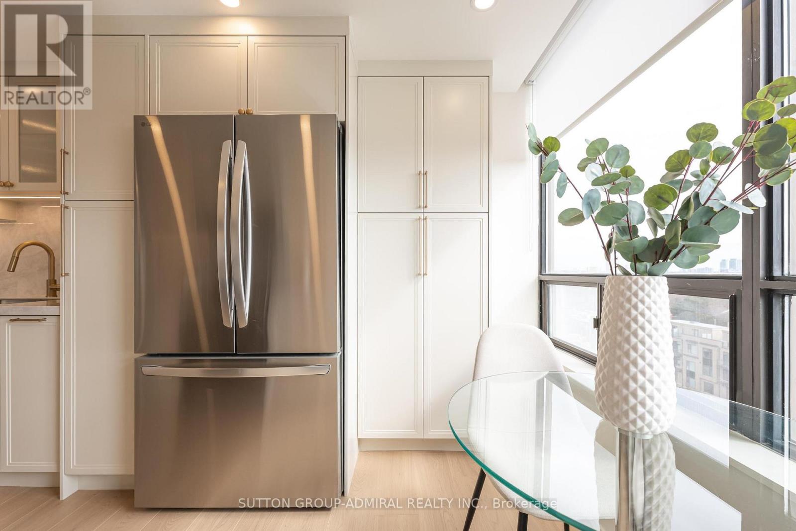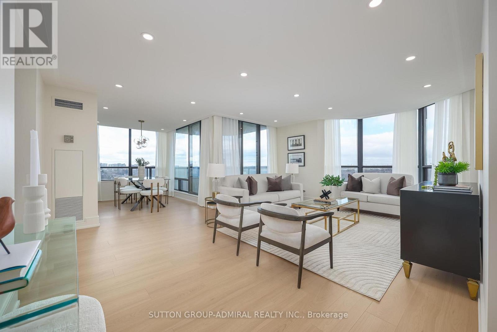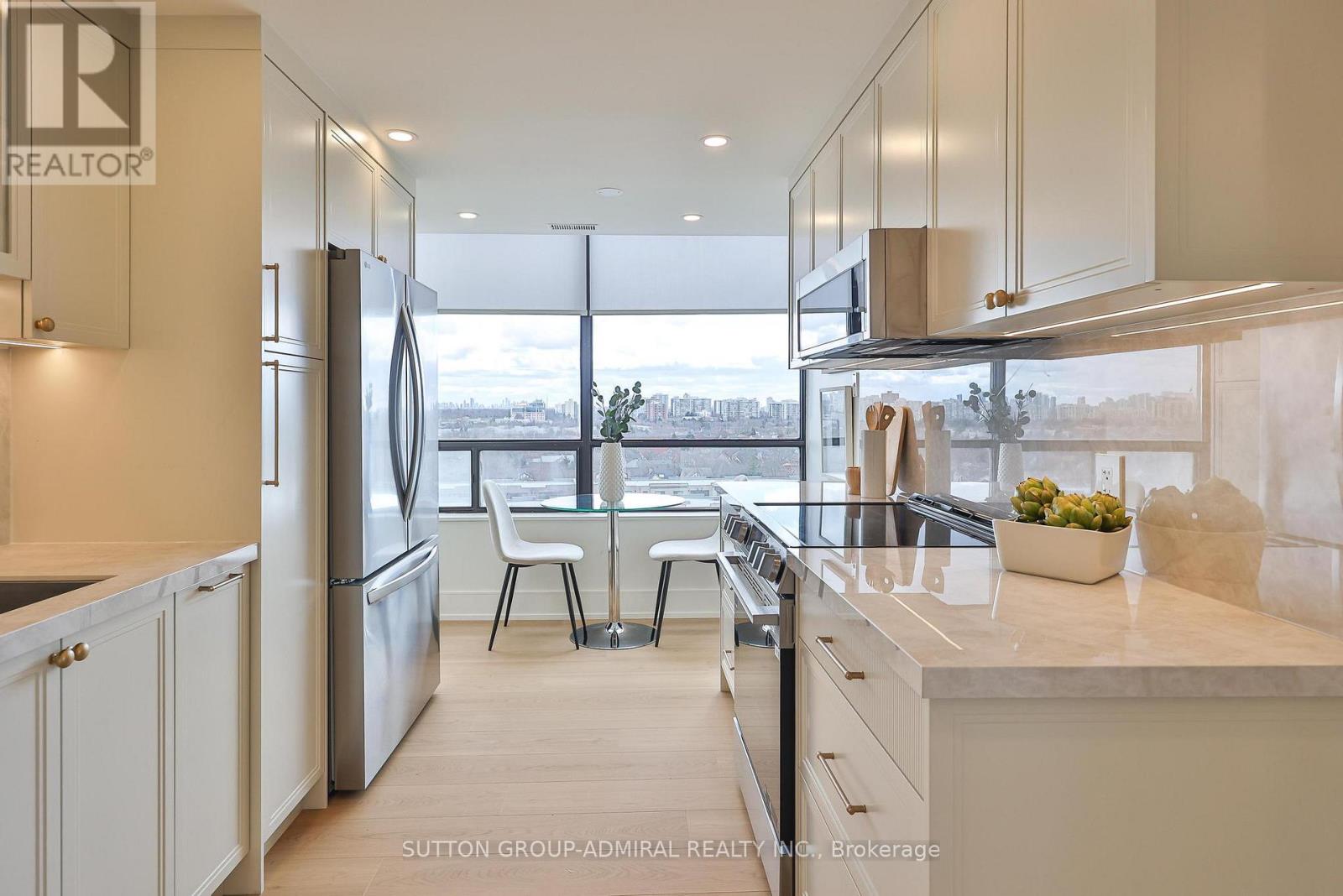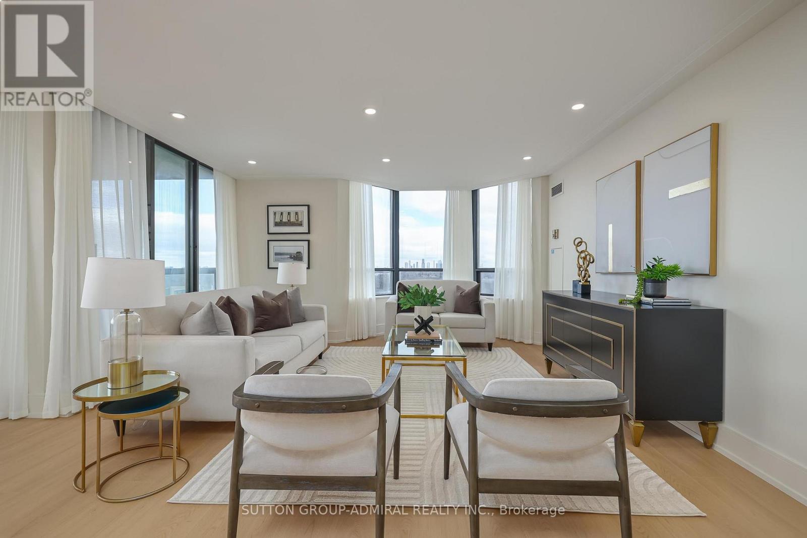 Stunning Fully Renovated 2 Bedroom, 2 Bathroom Suite Featuring The Largest Layout In The Building! Enjoy Spectacular Unobstructed South And West Views Stretching All The Way To The CN Tower. This Designer-Finished Unit Showcases Smooth Ceilings, LED Pot Lights, And High-End Finishes Throughout. The Dream Kitchen Is Perfect For Cooking And Entertaining, Featuring Stainless Steel Appliances, Two Separate Sinks, And A Spacious Eat-In Area. The Primary Bedroom Offers A Custom Walk-In Closet And A Luxurious 4-Piece Ensuite Bathroom. Step Out To The Large South-Facing Balcony And Take In The Incredible Panoramic Views. Includes The Rare Bonus Of Two Parking Spots. A Truly Stunning Unit That Shows Beautifully. (id:64974)
