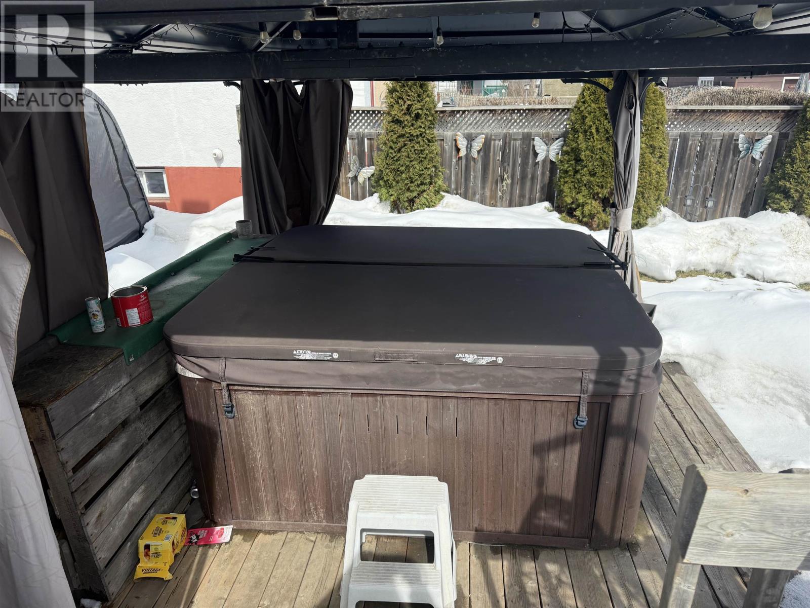 Great Starter Home with Space & Extras! This fantastic starter home offers 3+1 spacious bedrooms and an oversized living room—perfect for entertaining family and friends. Enjoy a separate dining area with sliding doors that lead to a private deck complete with a hot tub, overlooking a fully fenced yard. Outside, you’ll find a heated and wired outbuilding, could be converted back to a garage or ideal for a workshop, hobby space, or extra storage. A perfect blend of comfort, space, and value—this home is ready for you to move in and enjoy! (id:64974)