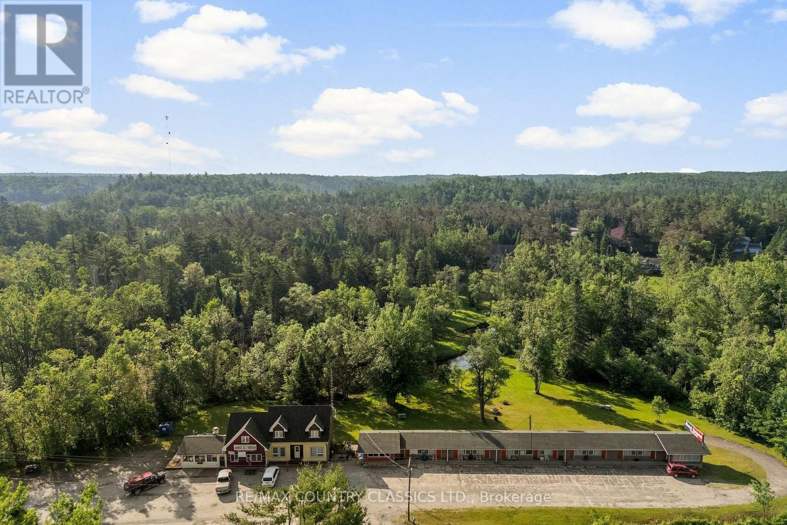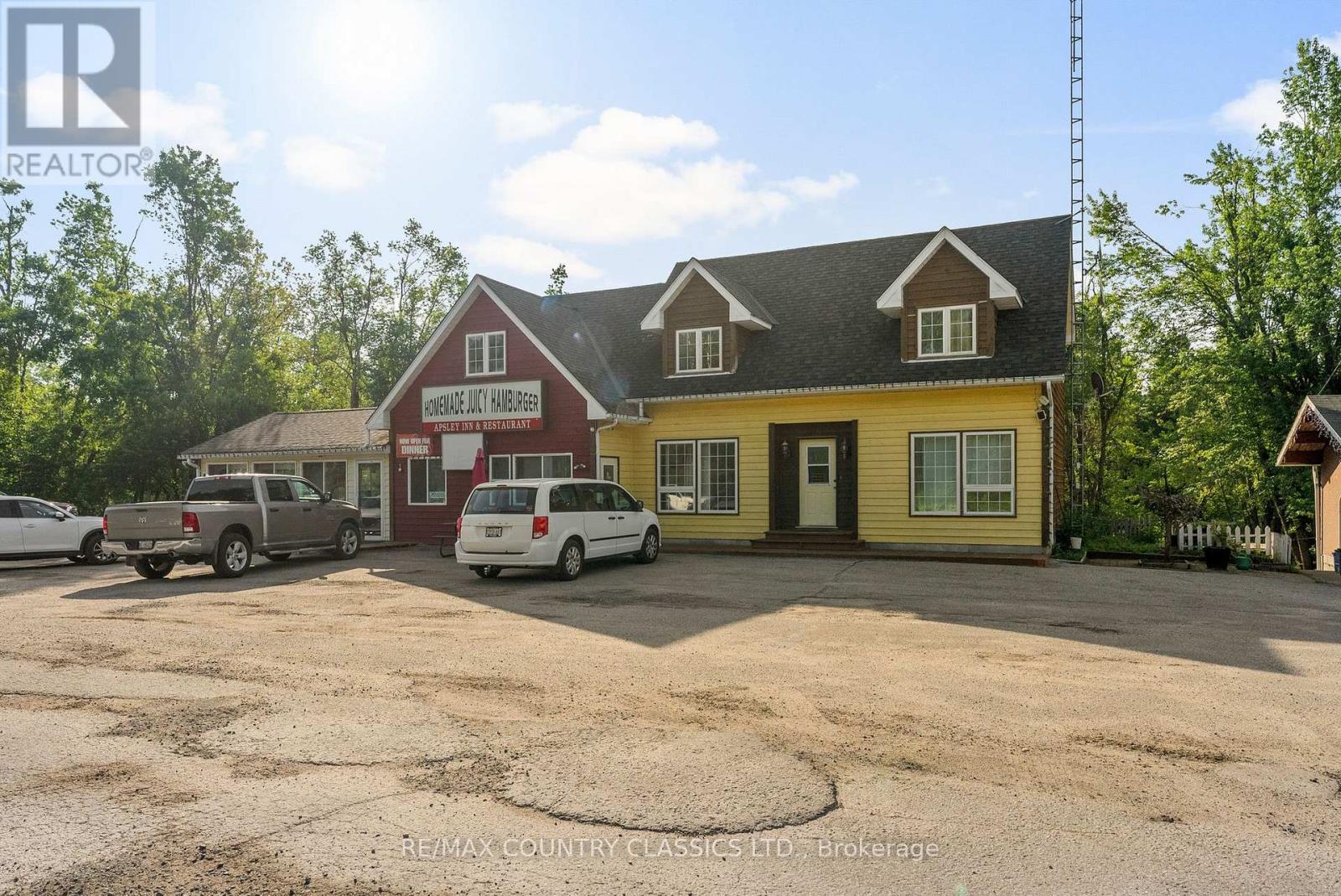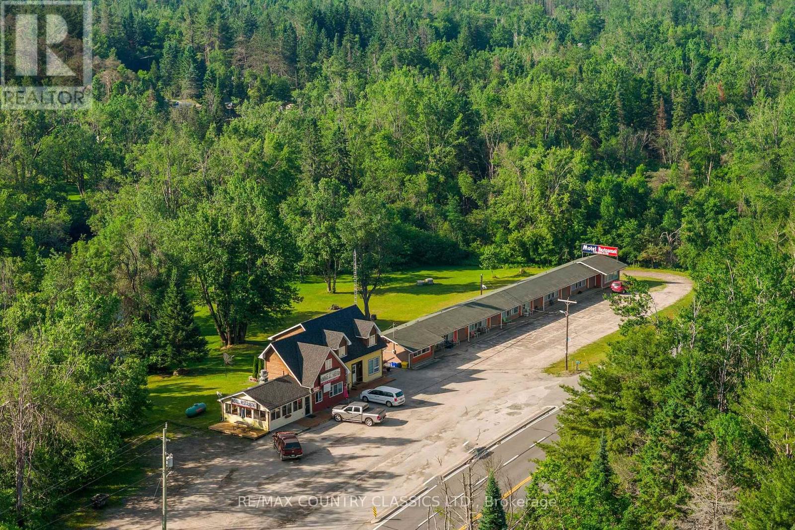 Welcome to the Apsley Inn and Restaurant. Discover this incredible hotel property in the heart of North Kawartha, just off Highway 28 South, in picturesque Apsley. Nestled on 1.93 acres with over 600 feet of river frontage on Eels Creek. This unique offering includes an 11-unit hotel ready for guests, a busy restaurant, and a 3-bedroom, 2-bathroom home with walk-out basement, extra large rooms and custom kitchen making it ideal for staff accommodation or added rental income. Located near many beautiful lakes and surrounded by nature, this property offers the perfect blend of tranquility and accessibility, making it a sought-after stop for travelers, tourists, and locals alike. Whether youre looking to expand your hospitality portfolio or invest in a thriving turn-key business, this is your chance to own a high-traffic location with multiple income streams. Dont miss out on this rare opportunity to own a prime commercial property in cottage country, your next great investment awaits! (id:64974)