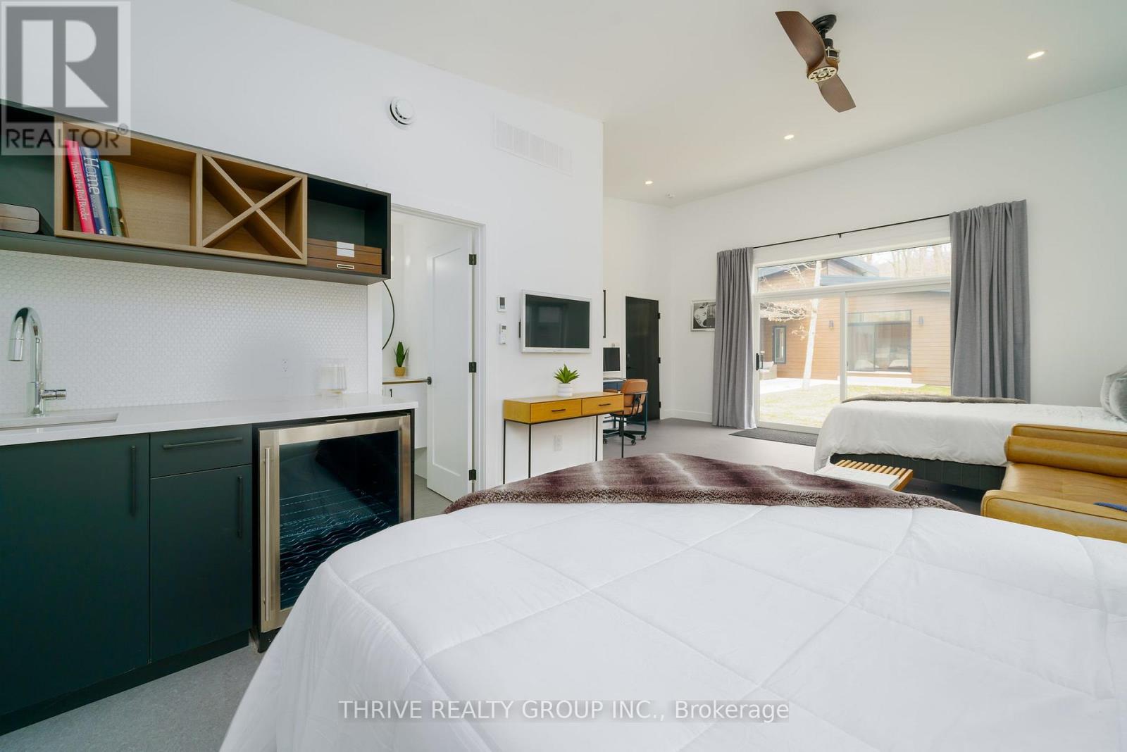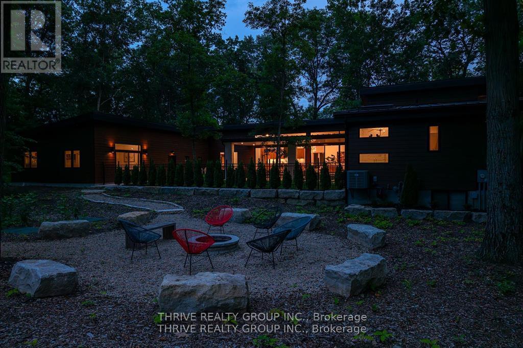 10107 Pinery Bluffs Road in Grand Bend is a luxurious residence in the midst of Lottery Dream Homes that seamlessly blends modern design with the tranquility of its natural surroundings. This newly constructed home offers a unique opportunity to own a contemporary home in one of Grand Bends most sought-after neighborhoods, combining upscale living with the natural beauty of Ontarios landscapes. The property offers a spacious layout featuring three bedrooms on the main level plus a 460-square-foot private guest suite, gym or home office complete with its own Heat/Cool pump, fridge & sink. The interior showcases high-end finishes and appliances with an open-concept design, creating an inviting atmosphere ideal for both relaxation and entertaining. Step out back through the sliding glass wall of doors to an impressive private courtyard with a large covered terrace perfect for your summer enjoyment. This property also offers a tandem 4 car garage complete with hot/cold water connections, roughed-in gas furnace hookup and a 100amp electrical sub panel. Situated in the prestigious Pinery Bluffs community, this property provides direct access to the serene landscapes of the adjacent Pinery Provincial Park. Residents can also enjoy a variety of outdoor activities, including hiking, biking, bird-watching and observing Award Wining Sunsets all within steps of their front door. The homes proximity to the shores of Lake Huron further enhances its appeal, offering opportunities for beach outings and water sports. *** May be purchased fully furnished*** (id:64974)