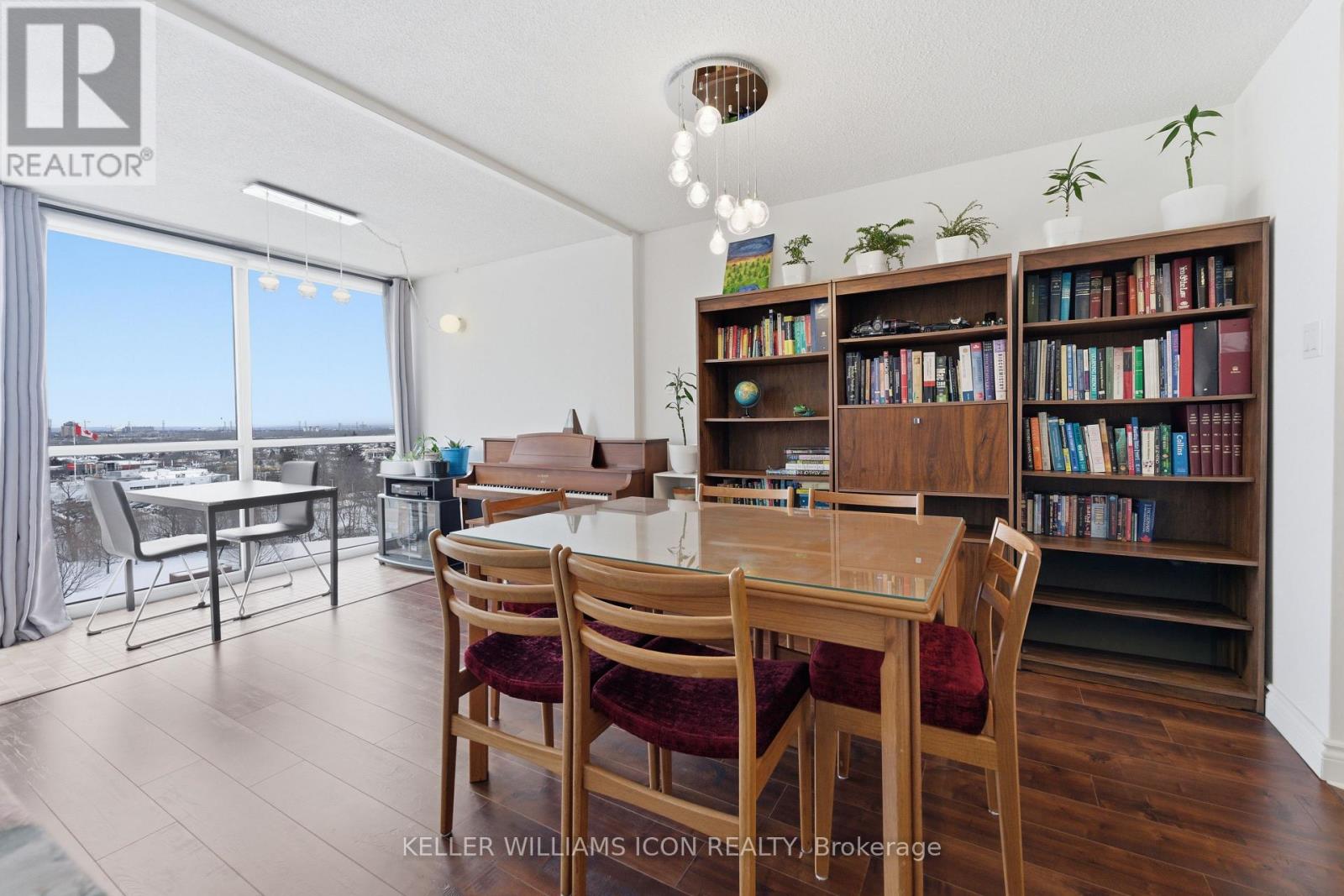 Stunning condo, one of the most beautiful units in the building, upgraded for comfort, style, and convenience in one desirable package. The kitchen was fully renovated in 2018 and features stainless steel appliances, quartz dining island and countertops, and soft-close cabinetry, making it a true chef's delight. The open-concept layout, enhanced by natural light, and the stylish dining and living areas are perfect for both relaxation and entertaining. Enjoy engineered hardwood flooring throughout the living and dining rooms and all bedrooms. The living room features large windows that fill the space with natural light and offer spectacular views. The primary bedroom includes a 4-piece ensuite and double closets. The second bedroom is spacious and paired with a main bathroom and in-unit laundry. The condo-like resort-like amenities include:* Outdoor pool* Indoor sauna* Indoor hot tub* Squash courts* Library* Dance room* Workshop* Exercise room* Rooftop terrace. Here are the upgrade details for the condominium:* **2018:** * Washroom: New floor, bathtub, tiles, shower, and sinks. * Kitchen: New appliances and floors.* **2019:** New room doors and entrance closet door.* **2025:** Google Nest. **2025.** Customized blinds in Livingroom. Located just minutes from South Keys Shopping Centre, with groceries, restaurants, a movie theatre, and essential services all within walking distance. Plus, enjoy easy access to major roadways, the airport, and transit. (id:64974)