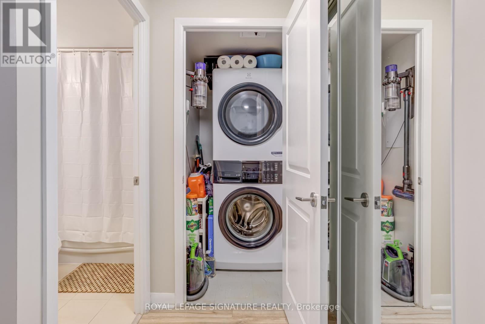Renovated in 2021. A pretty blue gray kitchen you'll want to cook in with new cabinetry, chunky quartz counters, granite sink, updated hardware, faucet and plumbing. Bathroom refreshed with a new vanity. New washer and dryer in May 2025. The bedroom fits a queen with room to breathe. Year round thermostat keeps things comfy. Step out to Whole Foods, Longo's and great restaurants. Festivals and skating at Mel Lastman Square. Minutes to the North York Civic Centre and the Toronto Centre for the Arts. Immediate access to subway. Amenities include concierge, gym, pool, party room, guest suites, billiards room, virtual golf, visitor parking and bike storage. Parking for rent $100/mo Locker $60/mo (id:64974)