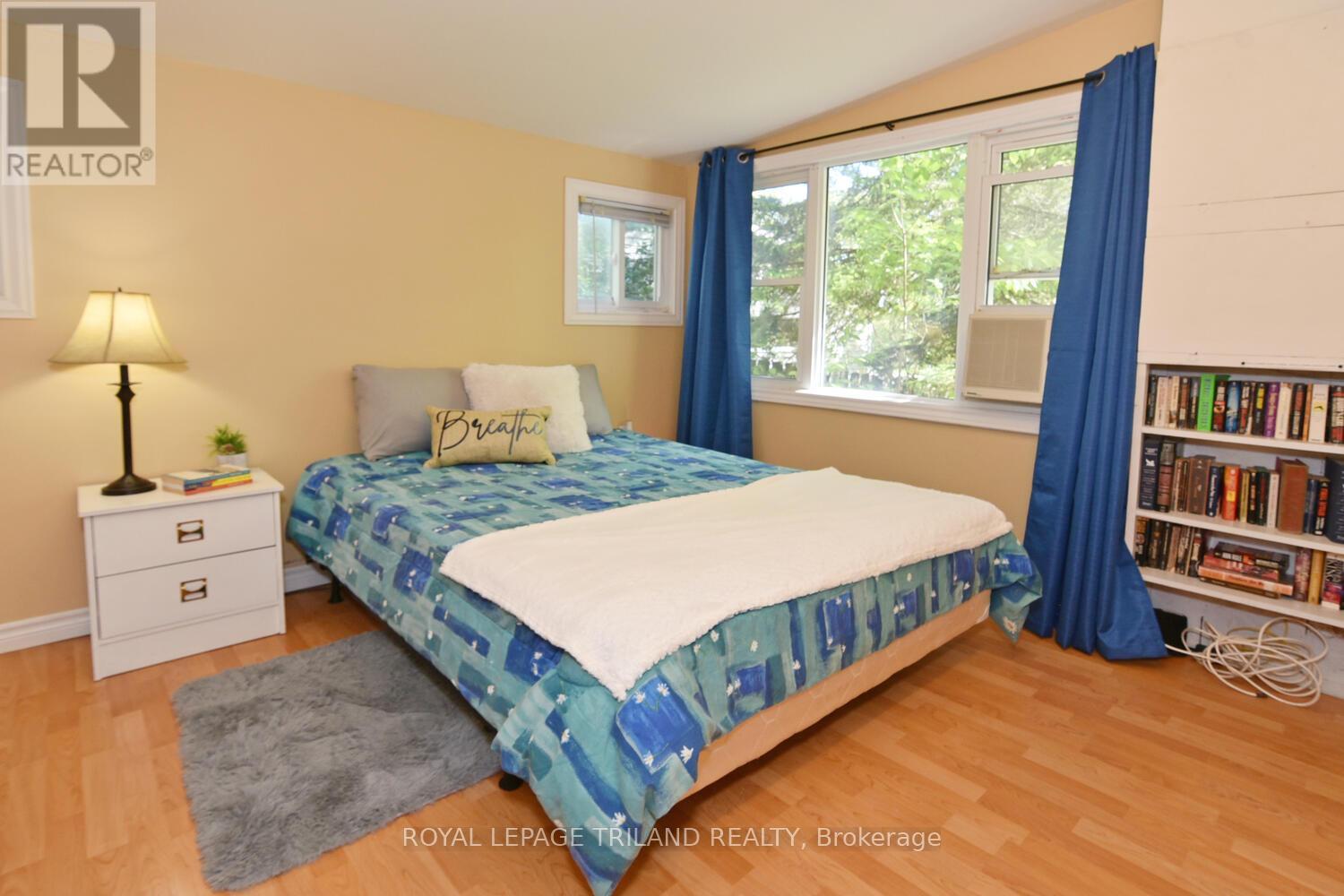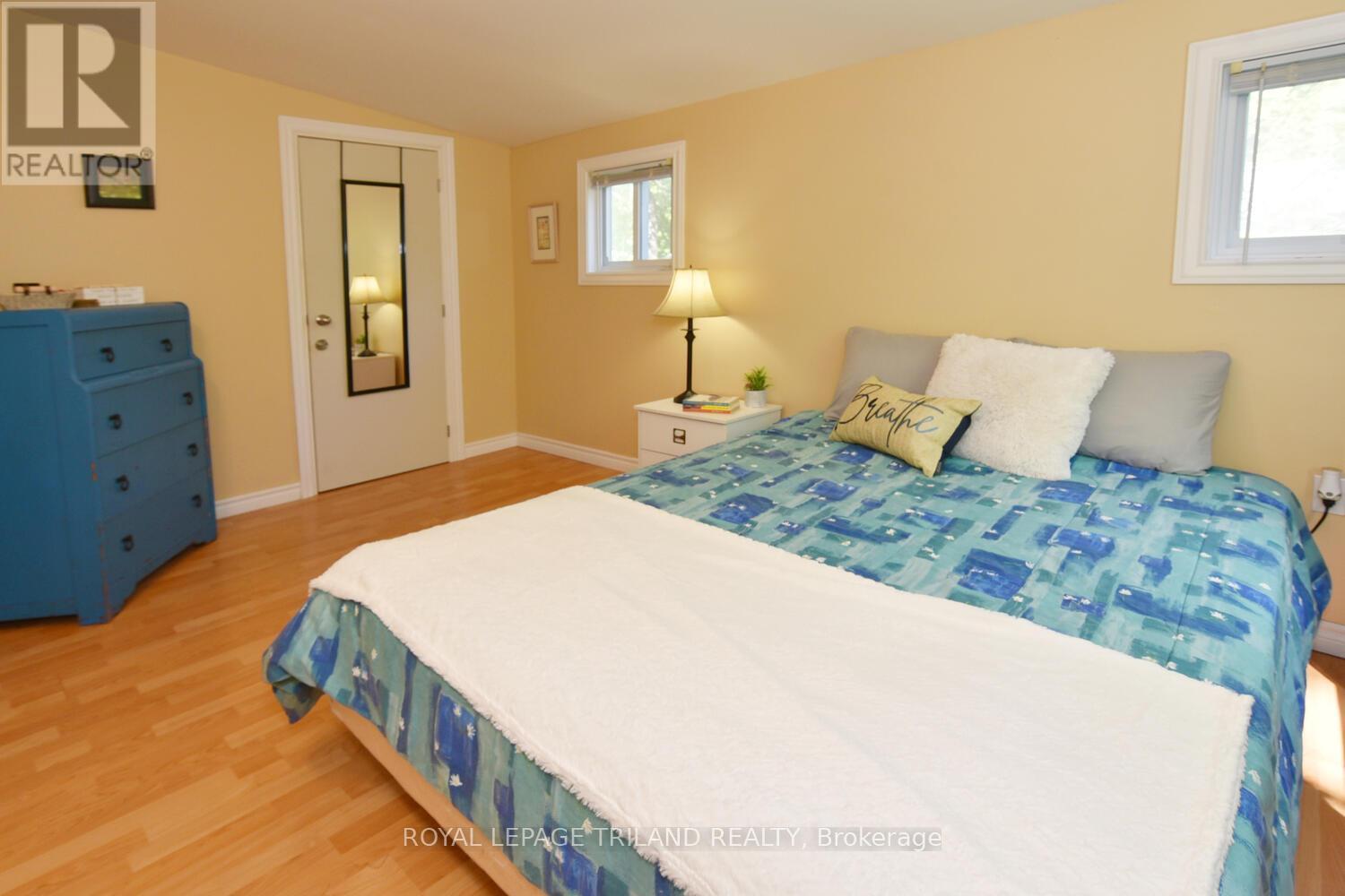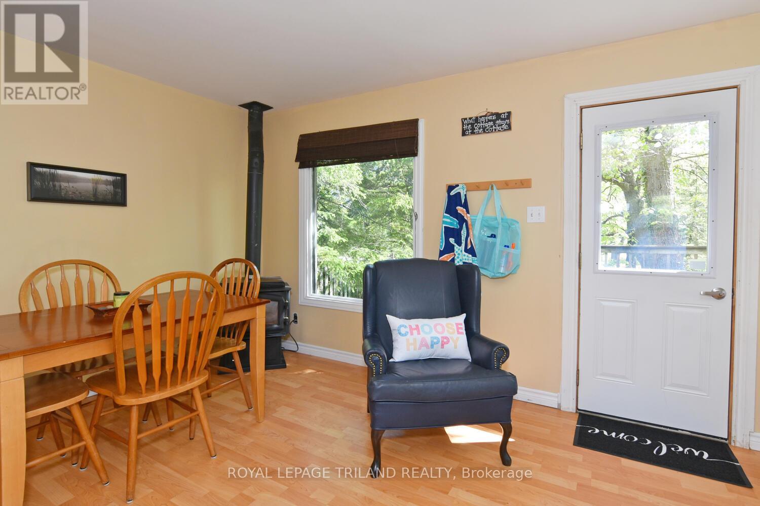 Cozy 2 bedroom cottage in Port Franks. Open-concept kitchen, dining and living area with a gas fireplace. White wooden cabinets in the kitchen. Laminate & linoleum floors throughout. Lots of windows allow an abundance of natural light. Bright primary bedroom with large window and walk-in closet. Decent sized 2nd bedroom with window and closet. Bathroom with shower. Front deck surrounded by large trees is great for entertaining. Shed out back. Deed for docking included. Close to river, walking trails, marinas, golf, restaurants and the beach! (id:64974)