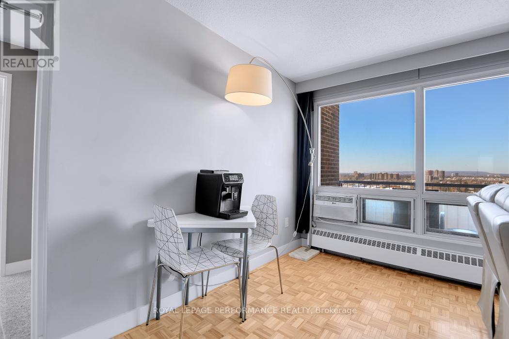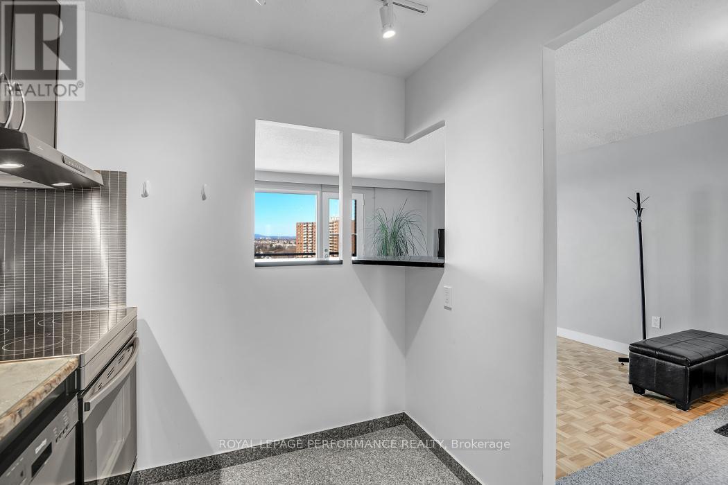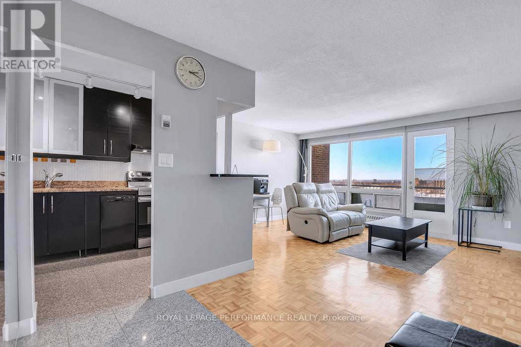Welcome to this beautifully updated, owner-occupied sanctuary on the 10th floor. This carpet-free home opens with an elegant granite-floored foyer, leading into a bright, open-concept living space. Large windows and a private balcony offer breathtaking sunset views and the Gatineau Hills in the distance.The kitchen features extra-tall cabinetry for maximum storage, while the spa-like bathroom has been modernized in sparkling white, complete with enhanced overhead lighting. The layout includes a spacious primary bedroom with northern views and a versatile second bedroom-perfectly suited as a home office or guest suite. With underground parking included, premium shopping and Movati fitness just across the street, this is the epitome of convenient urban living. Book a showing today! (id:64974)