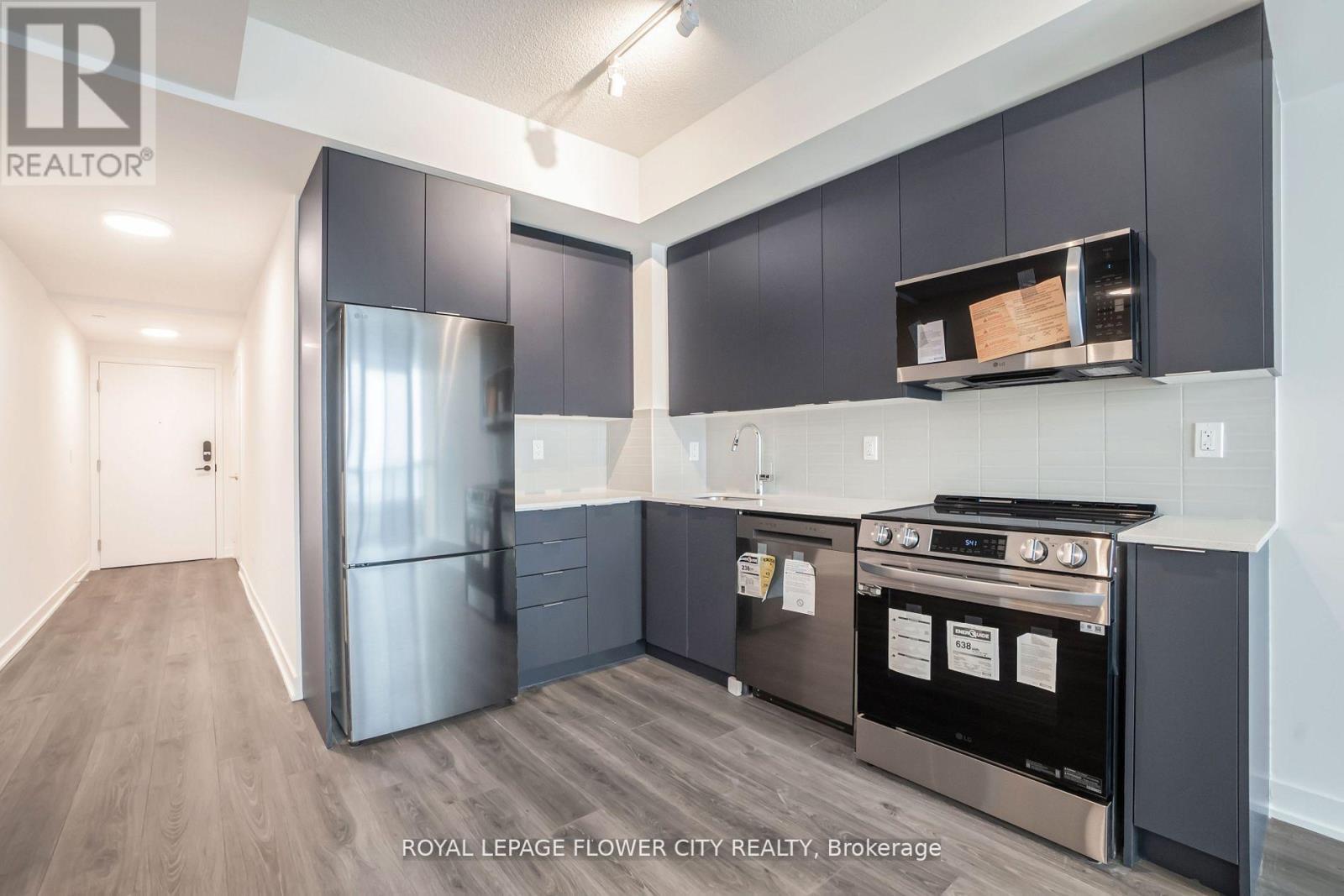 Welcome to this stunning, 1-bedroom condo in the brand new Stella Condos, located in the heart of Brampton! Open-Concept Layout, Bright and well-sized large windows and ample closet space. Gourmet Kitchen Equipped with stainless steel appliances, quartz counter tops, and custom cabinetry perfect for preparing your favourite meals. Private Balcony to Relax and enjoy your morning coffee or unwind after work with a view. Luxury Bathroom with Elegant fixtures and modern finishes create a spa-like atmosphere. In-Suite Laundry, included for your convenience. Enjoy state-of-the-art building amenities including a fitness center, rooftop terrace, party room, and more. Safe building access and beautifully designed common areas. Steps from Shoppers World and Sheridan college, Excellent Transit Options, Near Major Highways. **EXTRAS** Fridge, Stove, Microwave, Dishwasher, Washer & Dryer. High Speed internet, One underground parking and Heating included in the rent (id:64974)