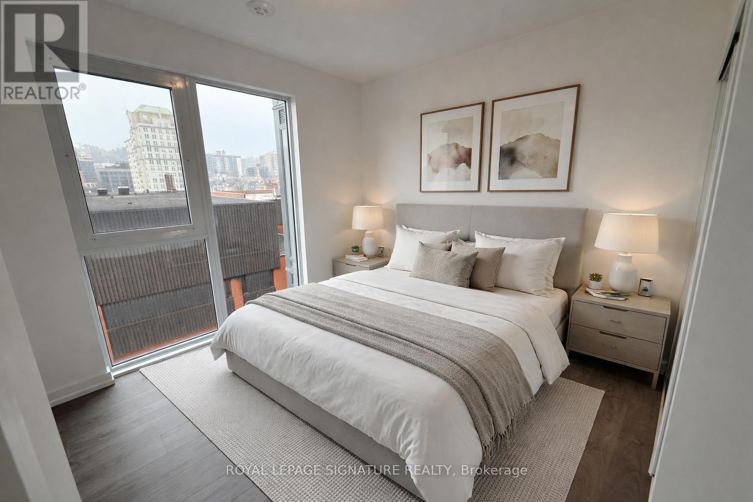 Never lived in 2bed + 2bath condo in the heart of Hamilton! This is modern condo living at its finest in downtown. The open-concept layout provides a comfortable living and dining area filled with natural light, complemented by a sleek modern kitchen with contemporary finishes. The two bedrooms offer flexibility for professionals, couples, or those needing a home office. Conveniently located near shops, restaurants, public transit, top-rated schools, and just minutes from McMaster University and easy highway access. *includes 1 parking spot and locker* (id:64974)