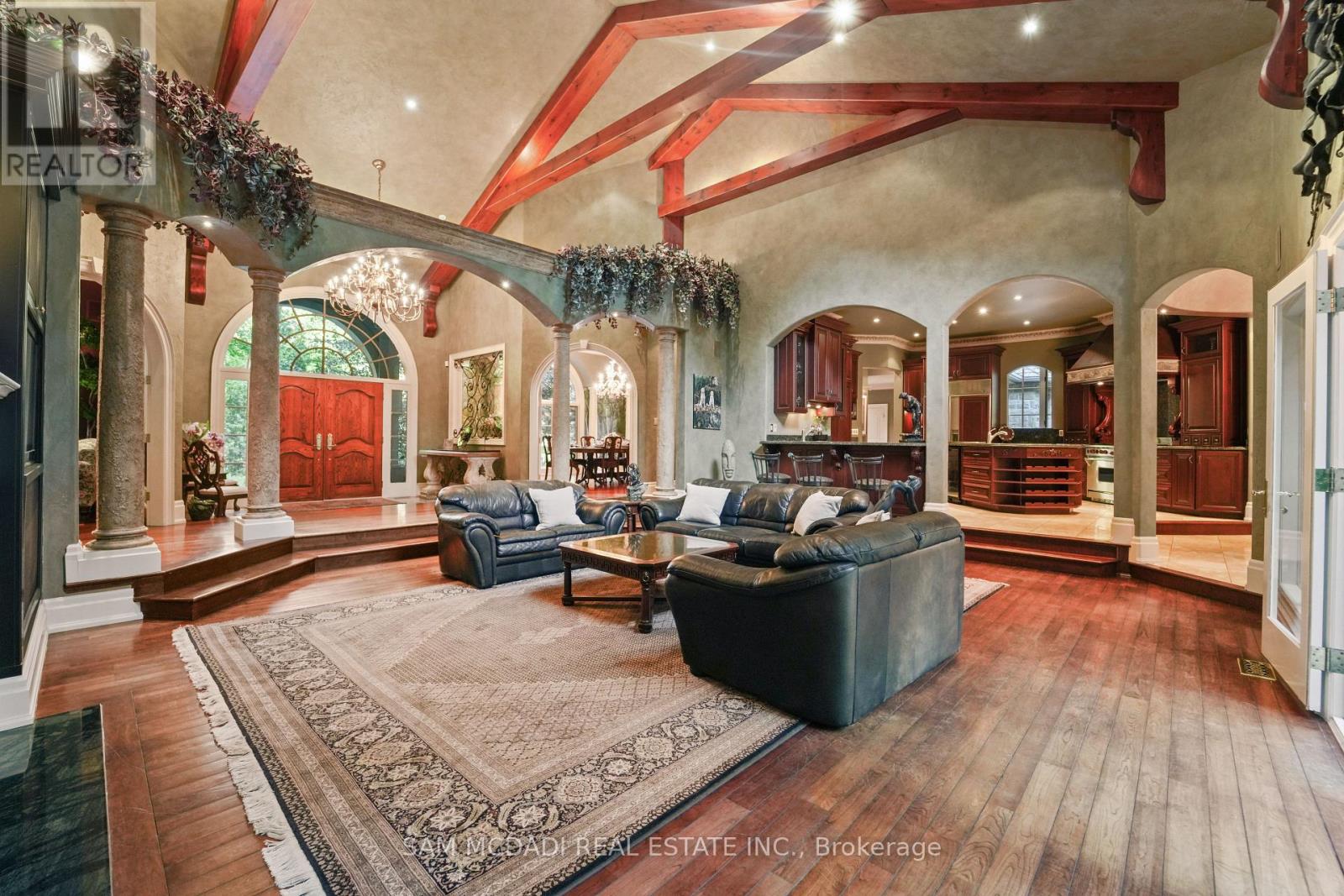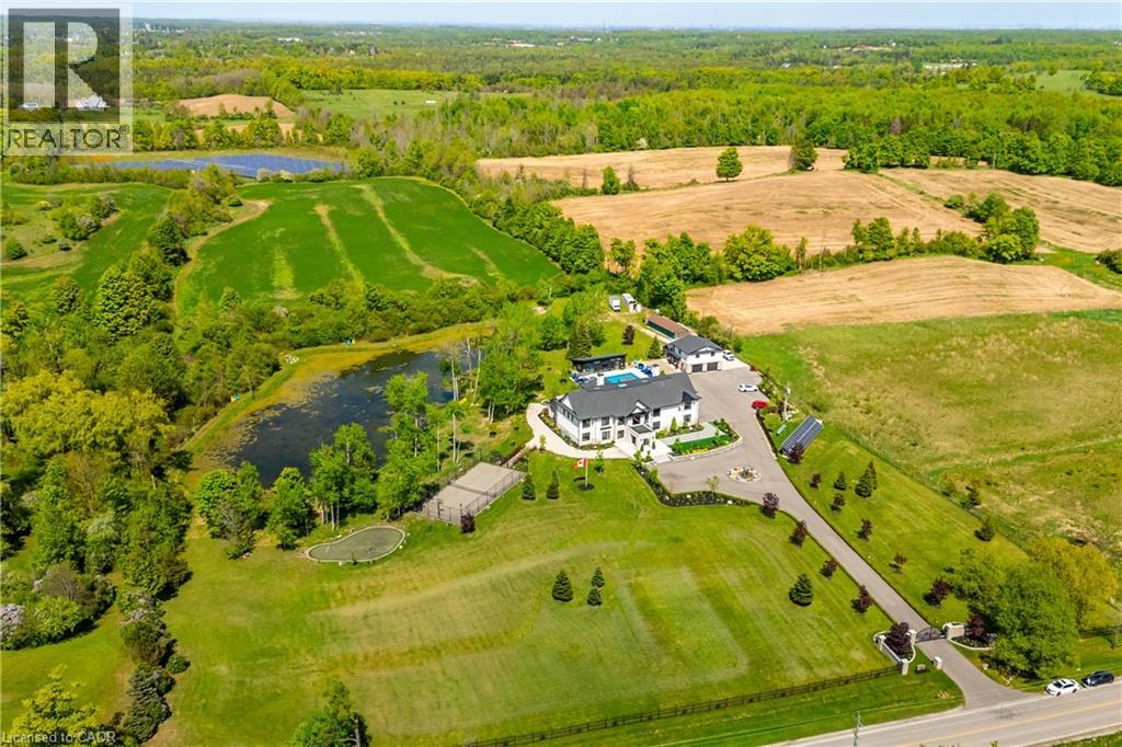 Welcome to an extraordinary luxury residence set within the prestigious enclave of Whispering Pines-a private, tree-lined haven of country estates tucked away on a quiet cul-de-sac. This custom-built estate offers the perfect balance of timeless craftsmanship, refined elegance, and modern comfort. Resting on a private 3-acre lot, the property is beautifully landscaped and features a serene pond with fountain, creating a truly picturesque setting. At the rear, a newly renovated pool, hot tub, and expansive patio overlook the lush gardens, providing an exceptional space for outdoor living and entertaining. Spanning nearly 11,000 sq. ft. of finished living space, the home was designed with scale and sophistication in mind. Inside, grand principal rooms offer the ideal setting for both everyday family living and hosting large gatherings. The residence features four spacious bedrooms, a wine cellar and tasting room, a four-car garage, and thoughtful architectural details throughout-delivering a rare blend of luxury and functionality. Ideally located, the property offers quick access to Highway 401 and is just a short drive to Guelph, Milton, Burlington, and Toronto Pearson International Airport, providing outstanding convenience without compromising the tranquility of its secluded setting. Every detail speaks to prestige and privacy, making this one of the most desirable offerings in the region. (id:64974)