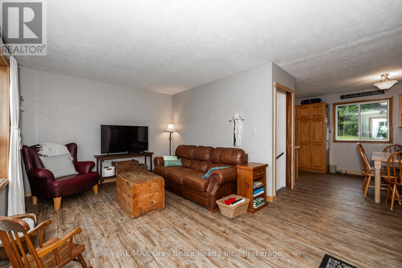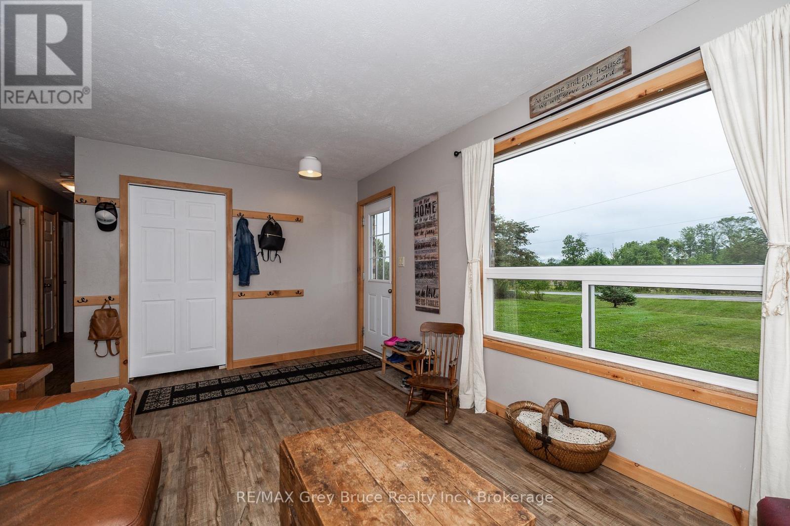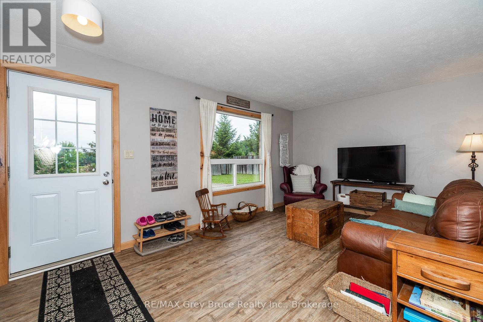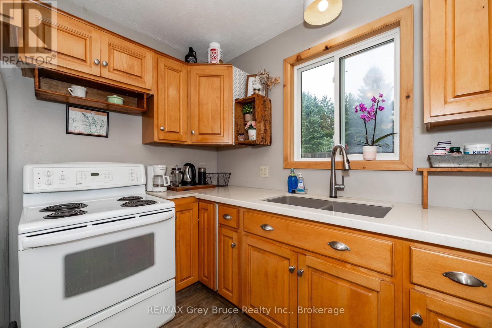 Enjoy country living just 15 minutes from Owen Sound in this charming 3+1 bedroom home set on a full acre of land. The bright kitchen has been tastefully refreshed, and fresh paint throughout gives the home a welcoming feel. Rustic trim and finishes add character, while the mostly finished basement offers lots of extra living space another bedroom and bathroom and features a cozy wood-burning stove to supplement the furnace. With plenty of room to enjoy both inside and out, this property combines warmth, functionality, and a touch of rural charm. (id:64974)