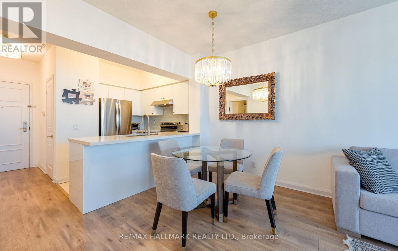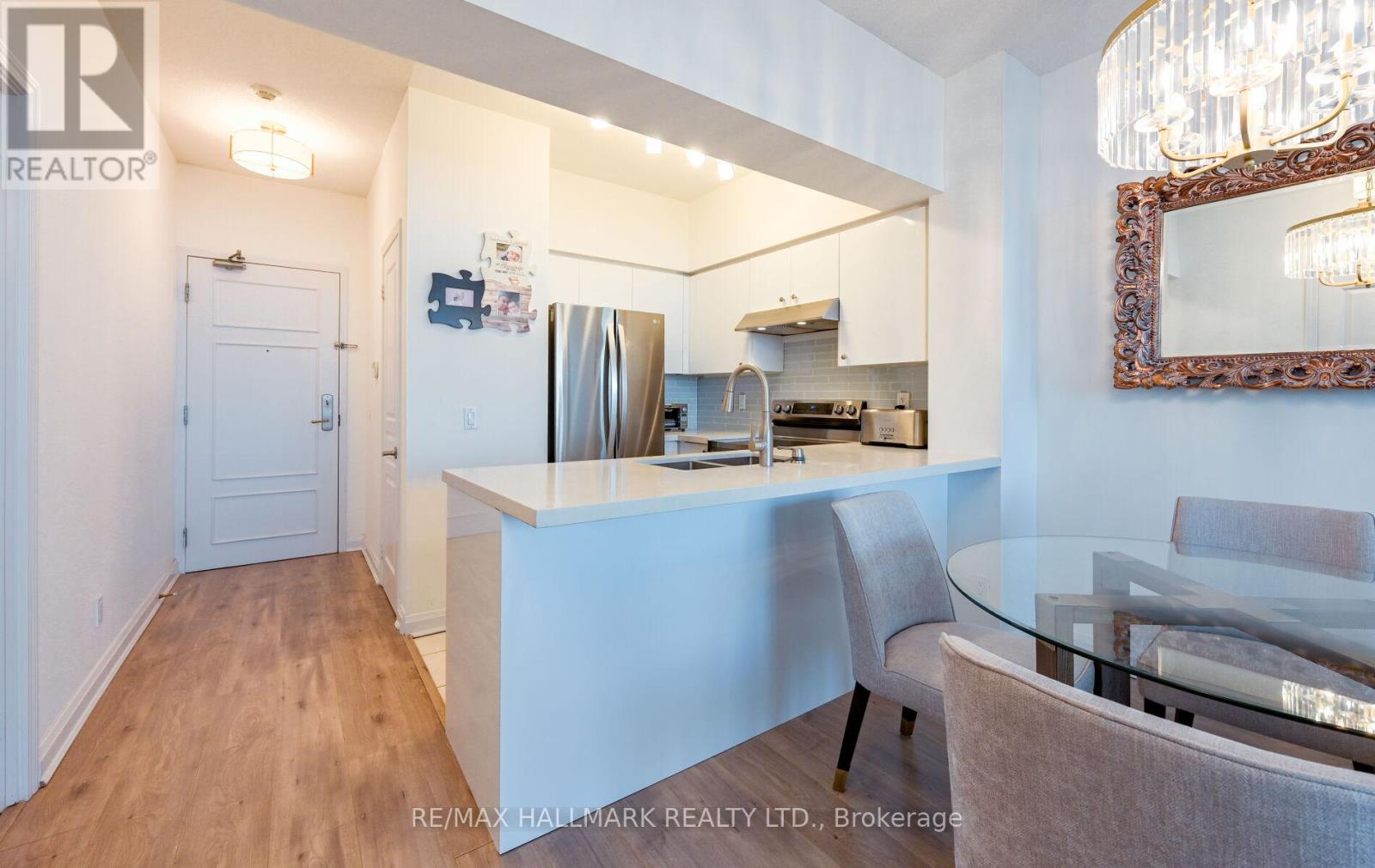 Rarely available! a hidden gem, top-quality Daniels condo in the heart of Richmond Hill, surrounded by million-dollar homes and top-ranking schools. A sun-drenched top-floor 1-bedroom suite boasting soaring 9-foot ceilings and a conveniently located parking space. The open-concept layout features expansive windows and a private terrace. Elegantly upgraded with over $35K in enhancements, including fresh paint, new Hardwood flooring, stainless steel appliances, and stylish light fixtures. Residents enjoy unparalleled resort-style amenities: indoor pool, jacuzzi, sauna, dual fitness studios, tennis court, mini putt, billiards, theatre, and main-floor BBQ patio. Complemented by 24/7 gatehouse security, central mailroom, guest suites, and party rooms. Ideally situated steps from Hillcrest Mall, transit, GO Station, future subway, fine dining, and top-tier schools - a refined fusion of luxury, convenience, and lifestyle. (id:64974)