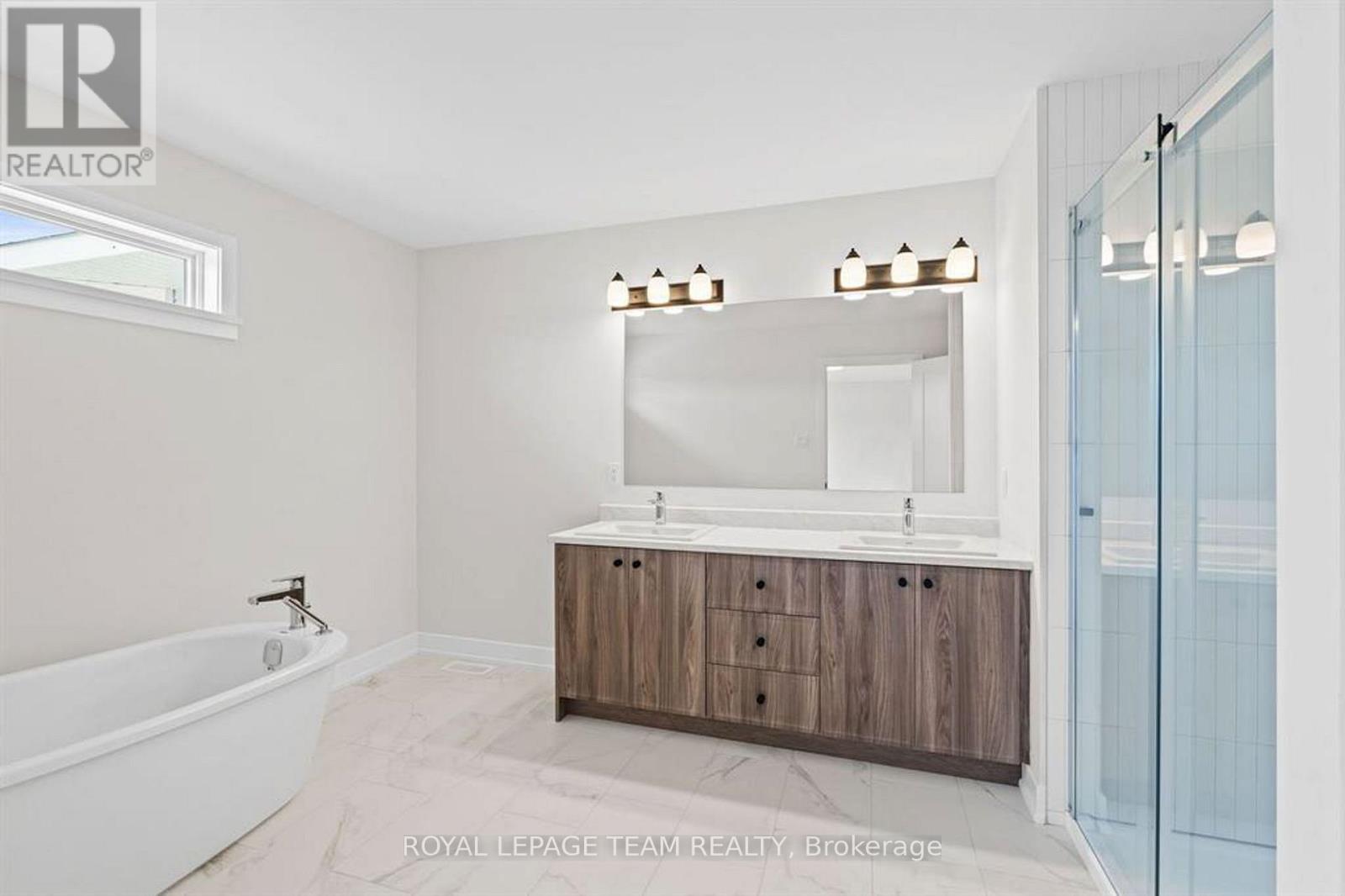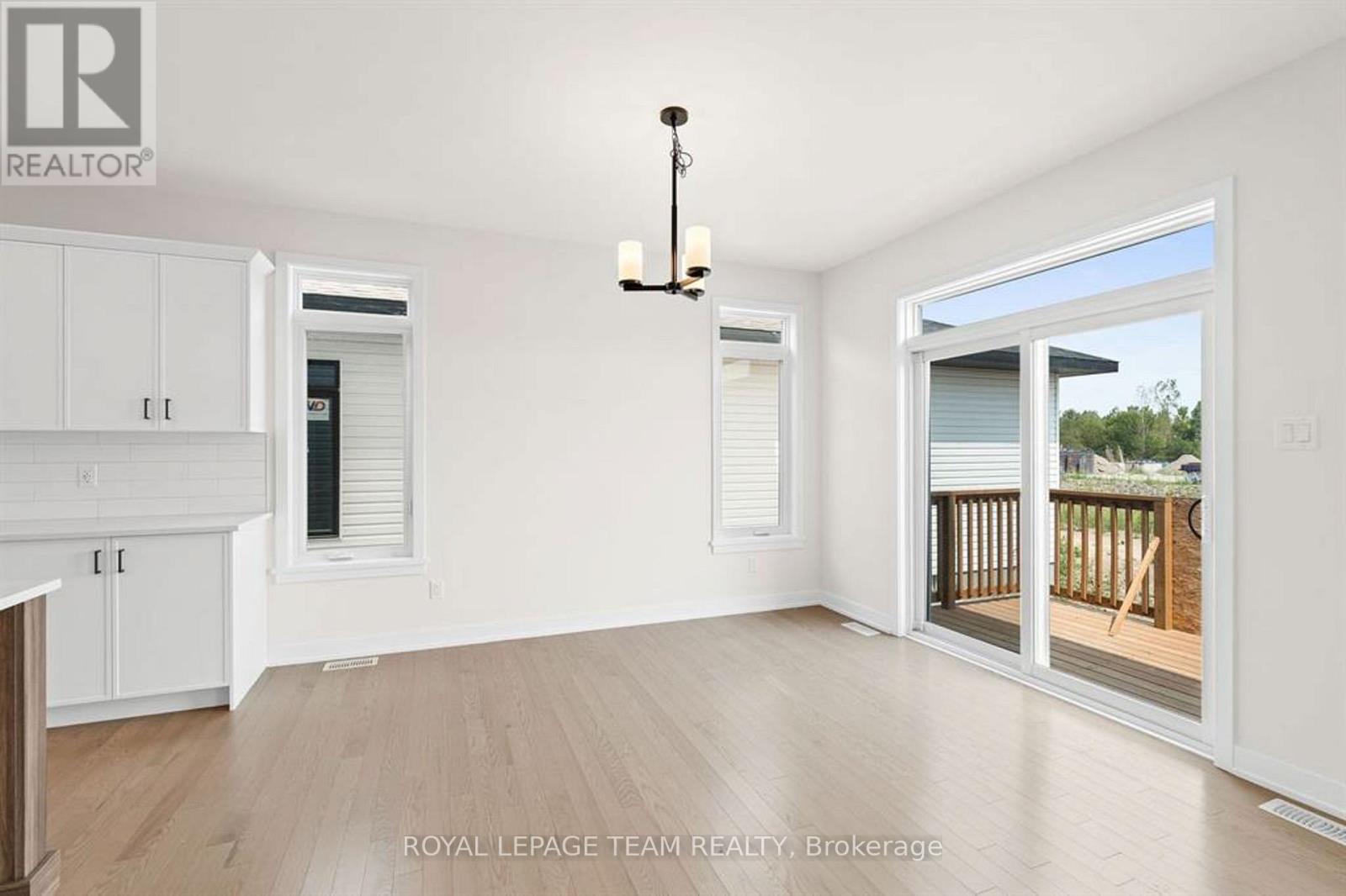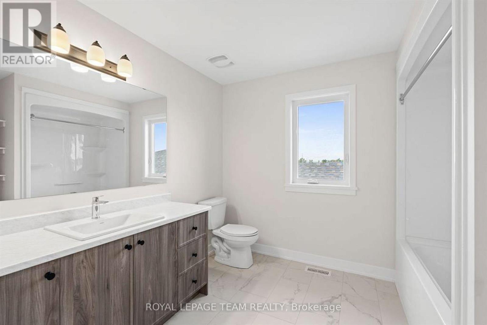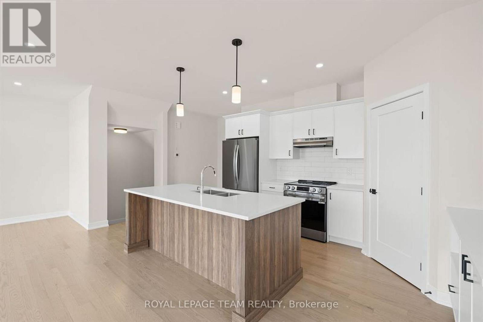 Discover this beautifully crafted semi-detached home in the sought-after Stirling Meadows community in Brockville. Available May 1, 2026, this newly built "Thornbury" model by Mackie Homes offers approximately 1,868 sq. ft. of thoughtfully designed living space, featuring 3 bedrooms, 3 bathrooms, and an oversized garage. The main floor welcomes you with a bright, open-concept layout designed for comfortable everyday living. The living and dining area features large windows, pot lighting, and hardwood flooring throughout, with direct access to the sun deck - perfect for relaxing or entertaining. The stylish kitchen blends form and function with quartz countertops, a subway tile backsplash, a centre island, a pantry, and stainless steel appliances. A convenient powder room completes the main level. Upstairs, the spacious primary suite includes a large walk-in closet and a 4-piece ensuite with a soaker tub and glass shower. Two additional bedrooms, a full bathroom, and a dedicated laundry room provide plenty of space and convenience for families or guests. Ideally located with quick access to Highway 401 and close to shopping, dining, and everyday amenities, this home offers the perfect balance of comfort, style, and convenience in one of Brockville's newest communities. (id:64974)