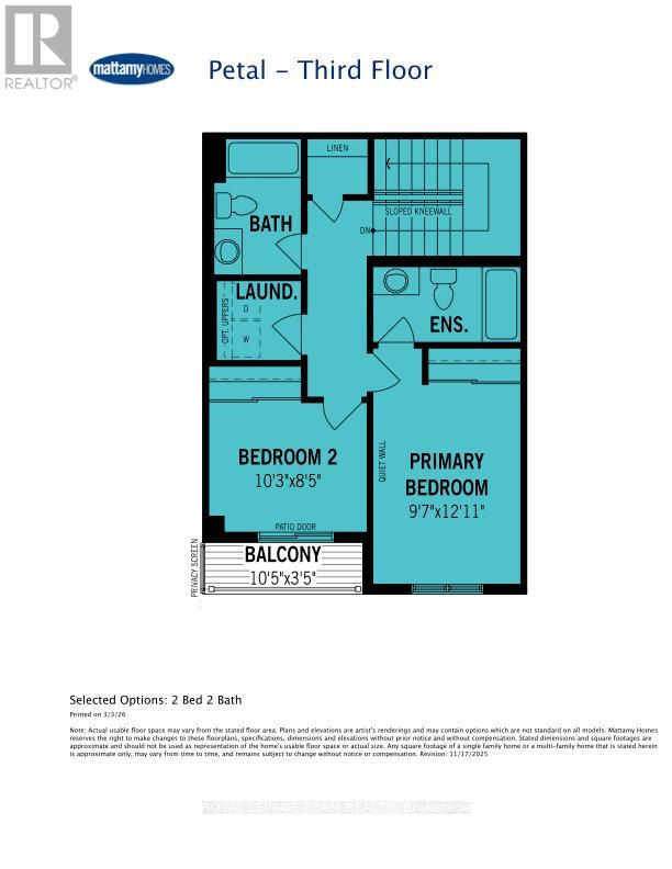 Be the first to live in Mattamy's Petal, a beautifully designed 2 bed, 2 bath freehold townhome offering modern living and unbeatable convenience in the Northwoods community in Kanata. This 3-storey home features a welcoming foyer with closet space, direct garage access, a den, and luxury vinyl plank (LVP) flooring on the ground floor. The second floor boasts an open-concept great room, a modern kitchen with quartz countertops, ceramic backsplash, and stainless steel appliances, a dining area, and a private balcony for outdoor enjoyment. The second level also includes luxury vinyl plank (LVP) flooring and a powder room for convenience. On the third floor, the primary bedroom features a 3 pc ensuite, while the second bedroom offers ample space with access to the main full bath. A dedicated laundry area completes the upper level. A second full bath can be added for additional comfort and convenience. Located in the vibrant Northwood community, this home is just minutes away from the marketplace, highway, schools, shopping, restaurants, and more! Don't miss this incredible opportunity! Images provided are to showcase builder finishes only. (id:64974)