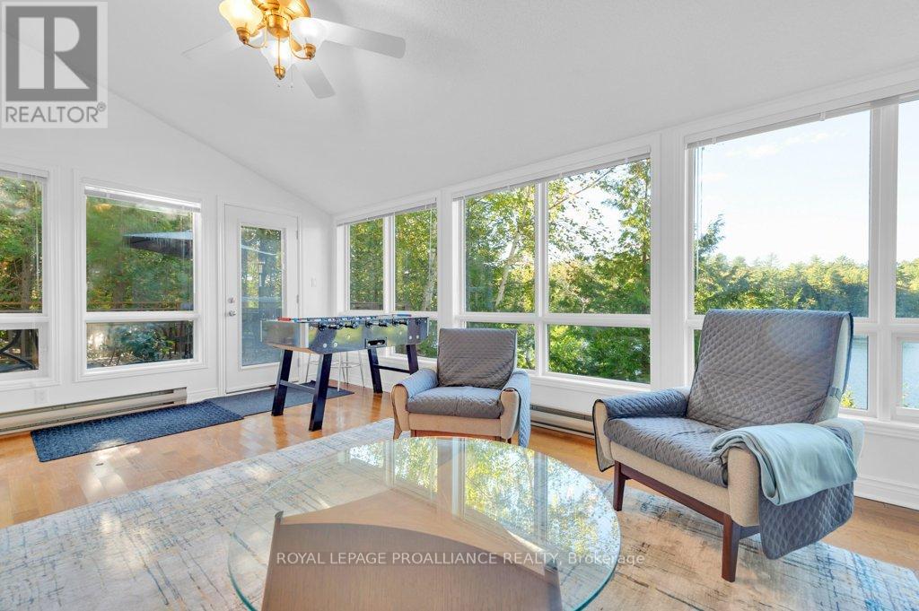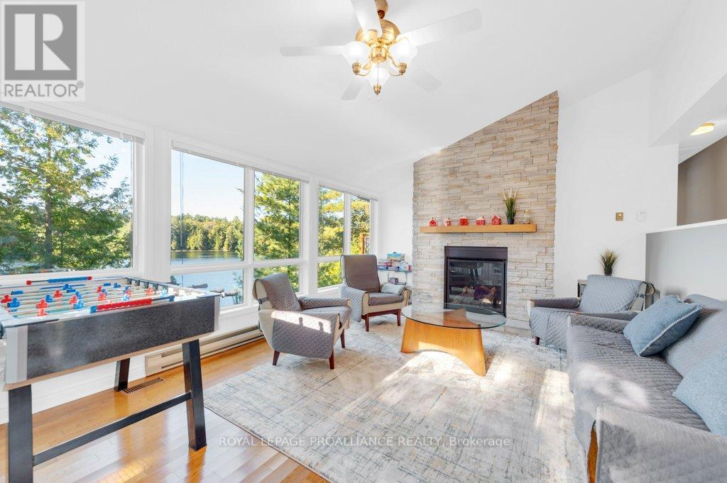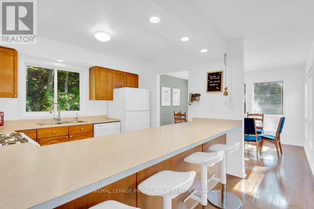 Resplendent Four-season Waterfront Retreat! Imagine finding your piece of heaven in this stunning 4 bedroom, 2.5 bathroom cottage nestled on the breathtaking Little Mississagagon Lake in Cloyne, On. This isn't just any cottage; it's a turnkey, year-round haven set against the backdrop of pristine, clear waters that sparkle like diamonds. You'll spend your days surrounded by nature, enjoying the spectacular, uninterrupted views of Crown land. This four-season retreat offers everything you could possibly desire for relaxation and fun, featuring ample entertaining spaces for family and friends. Interior highlights include an exclusive retreat with a primary bedroom that features an en-suite bathroom and private balcony overlooking the lake. 2 additional bedrooms with 2nd - 4 piece bathroom. A separate kitchen boasts a breakfast bar and all the modern amenities, flowing into the dining room and the living room. The living room features a cozy propane fireplace and a convenient walk-out to the lakeside deck, providing spectacular lake views. The lower level is dedicated to comfort and utility, offering a cozy family room with a second propane fireplace, an extra-large bedroom, walk-out to waterfront and a laundry room with abundant storage space for all your cottage toys. Gather around the lakeside fire-pit on cozy evenings or inside by one of the propane fireplaces, close to all amenities yet surrounded by lush greet spaces for everyone to enjoy. This is the ideal getaway spot or forever home. (id:64974)