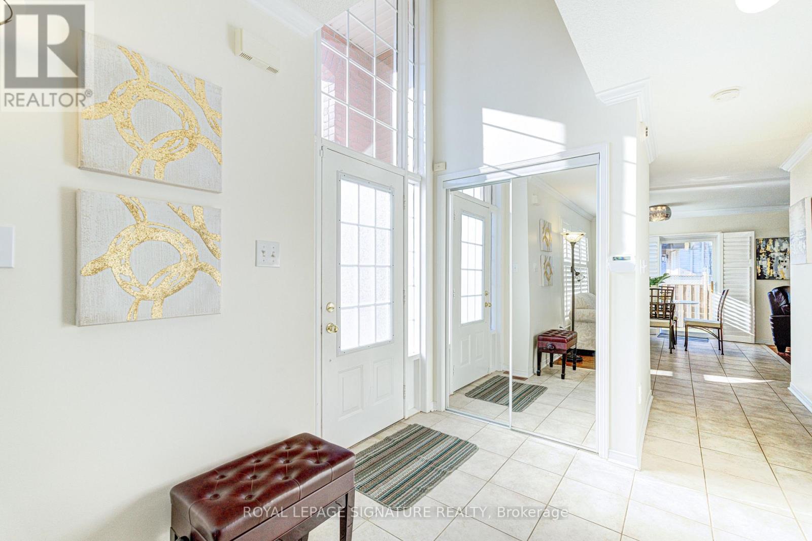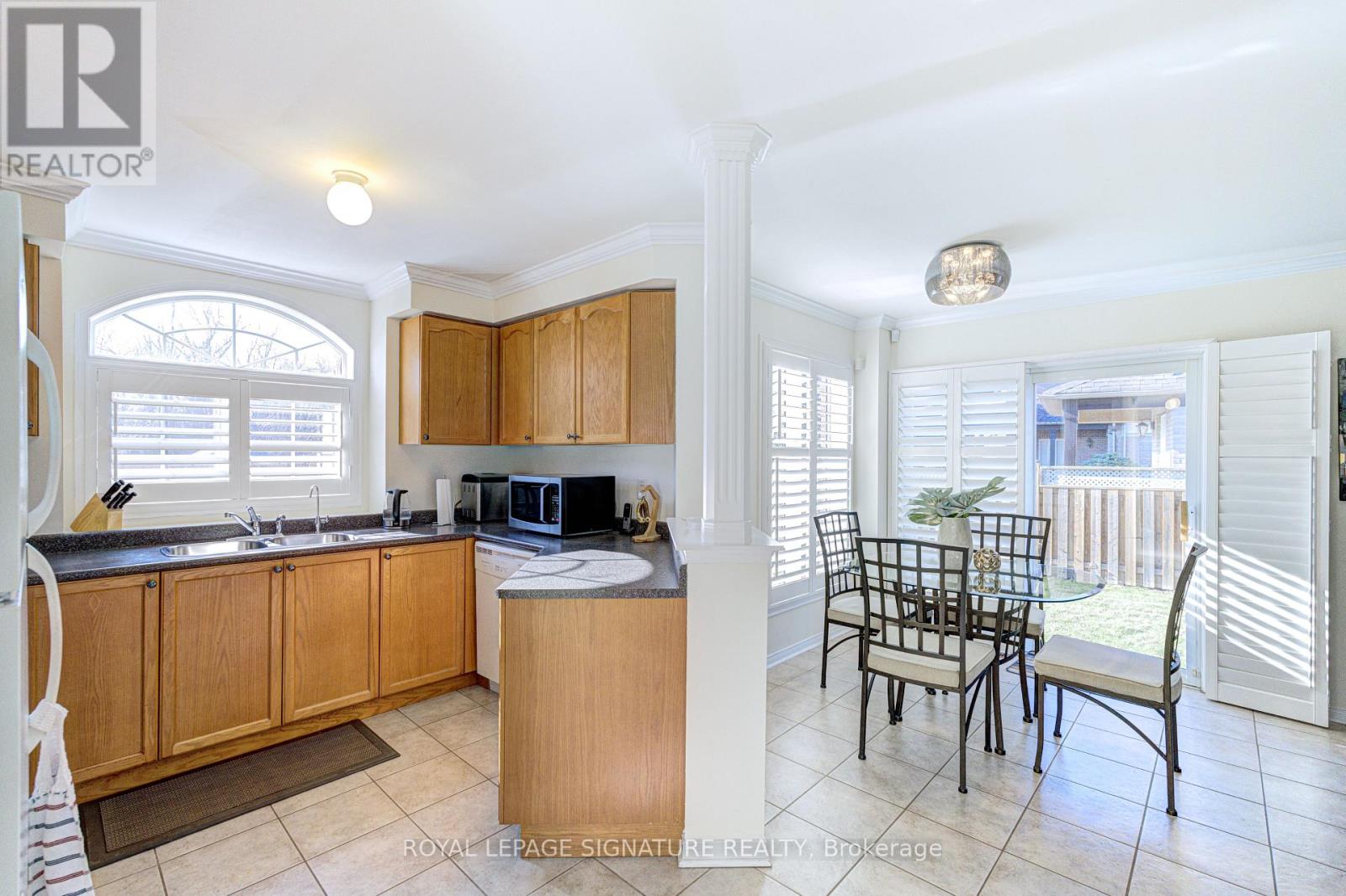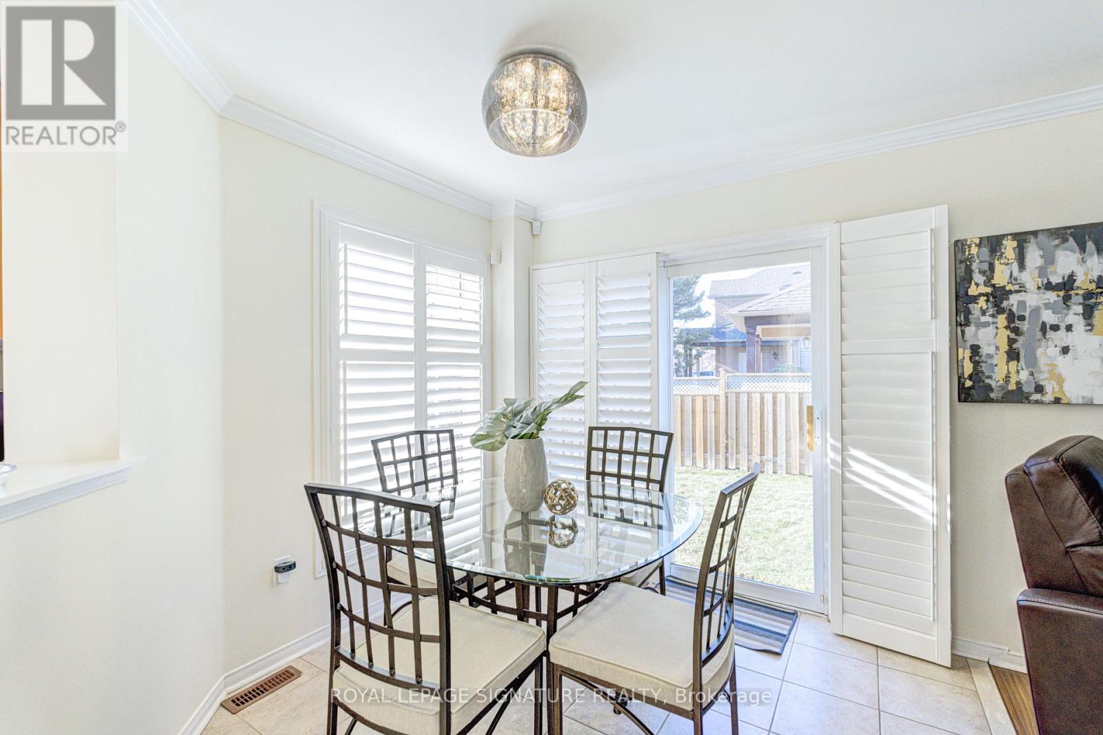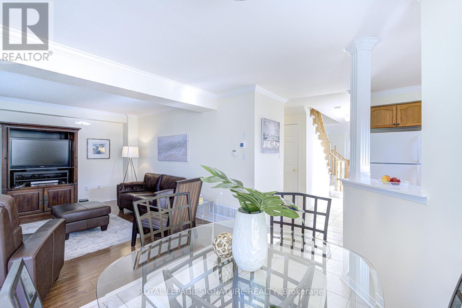 Rarely offered large end-unit townhome with the elegance and presence of a semi-detached, showcasing approximately 1,930 sq. ft. of living space above grade. the largest townhouse currently listed under $920,000, offering exceptional value in today's market. Thoughtfully designed with details throughout, this bright 2-storey home offers an exceptional blend of comfort, sophistication and space A grand open-concept foyer welcomes you with soaring ceilings, designer tile flooring, at ransom window, and a sleek mirrored closet. The main level features beautifully appointed living spaces with rich wood-tone flooring, crown moulding, deep window sills, and classic plantation shutters. Separate living and family rooms provide an ideal setting for both refined entertaining and relaxed everyday living. The kitchen and breakfast area overlook a private, fully fenced backyard-perfect for outdoor enjoyment and seamless indoor-outdoor flow. A well-equipped main floor laundry room offers a deep utility sink, built-in storage, and convenient direct access to the garage. Upstairs, the spacious primary retreat impresses with double-door entry, a walk-in closet, and a spa-inspired 4-piece ensuite featuring a separate glass shower and soaker tub. Two additional generously sized bedrooms, a stylish 4-piece bath, and a linen closet complete the upper level. Plush broadloom enhances comfort throughout the bedrooms and staircase. The full unfinished basement presents a blank canvas with endless potential for customization, whether for additional living space, a home gym, or entertainment area. Complete with a single-car garage and private driveway, this home is ideally located just minutes from top-rated schools, parks, shopping, transit, GO service, Library and major highways A rare opportunity to own a sophisticated, turnkey home offering space, style, and versatility in a highly desirable setting. (id:64974)