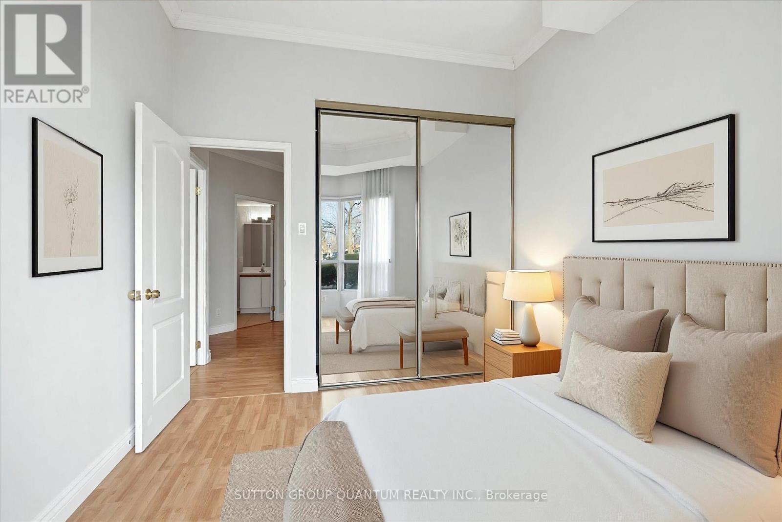 Welcome to Village Parc on the Pond, One of Milton's Most Sought After Condominium Buildings that is Ideally Located Close to All Amenities. Very Close Proximity to Downtown Area, Featuring Shops and restaurants, Only Steps Away From Mill Pond and Centennial Park. Outstanding Amenities Such as Indoor Pool, Gym, Hot Tub, Guest Suite, Party/Meeting Room. This Rarely Offered Executive 2 Bedroom, 2 Bath End Unit on the Main Floor with a NW Exposure. Bright and Spacious Features Extra Height in ceilings, Double Closets in Primary Bedroom and 4 Piece Ensuite. Gorgeous Views of Garden With Extra Height Windows, Laminate Throughout, Neutral Decor and This Unit has Recently Been Painted In October 2024. Immediate Possession is Available - Just Move In and Enjoy. (id:64974)