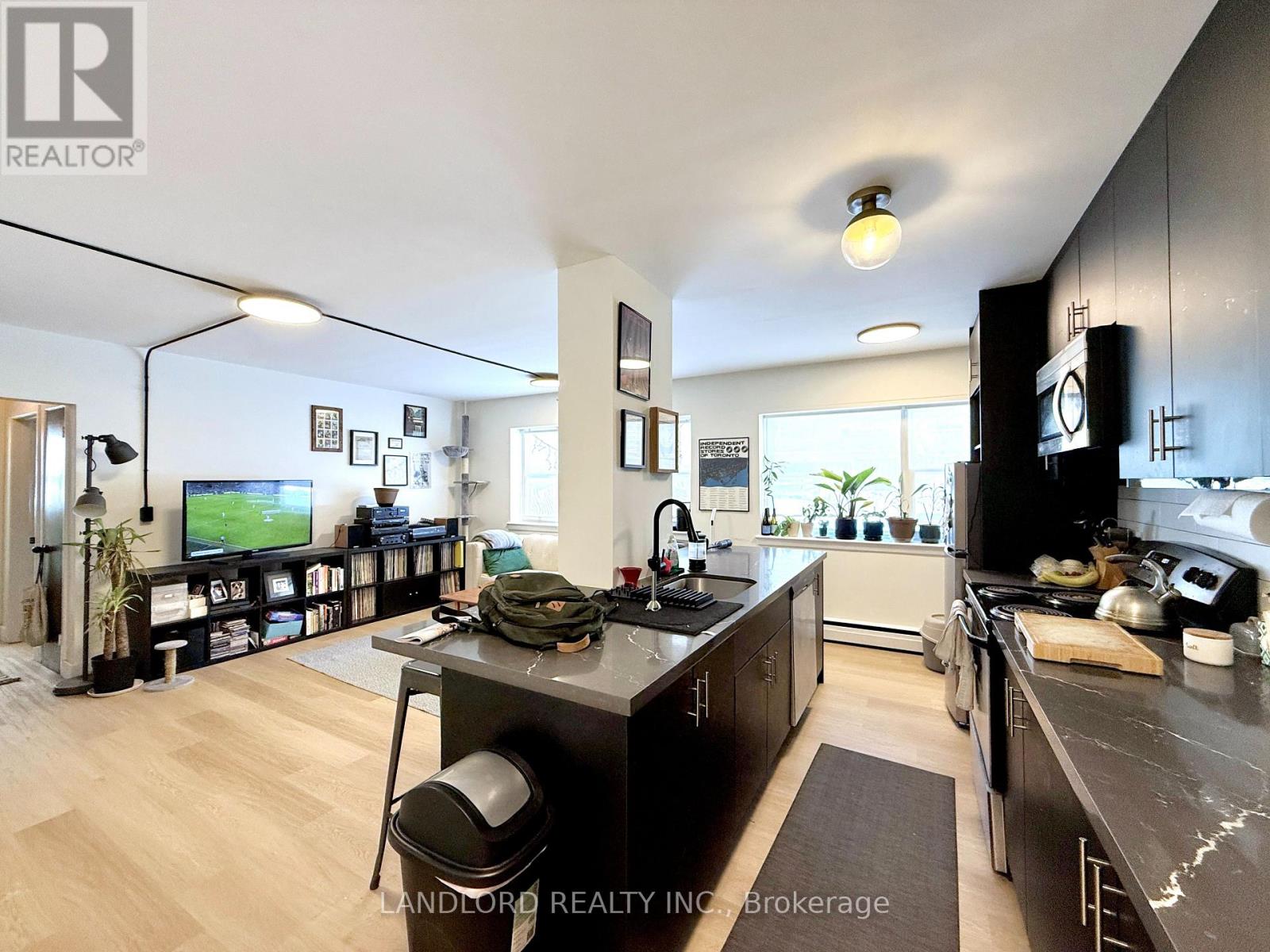 Experience Effortless Living In This Bright And Airy 1-Bedroom, 1-Bath Suite In The Heart Of Vibrant Downtown Whitby. The Open-Concept Layout Seamlessly Connects The Living And Dining Areas To A Chef-Inspired Kitchen Featuring Stainless Steel Appliances, Premium Stone Countertops, And An Oversized Center Island Perfect For Dining Or Entertaining. Sunlight Floods The Space Through Large Windows, Highlighting The Contemporary Laminate Flooring Throughout. Enjoy The Convenience Of On-Site Shared Laundry, While Being Just Steps From Eclectic Shops, Trendy Restaurants, Easy Transit, And Local Cultural Attractions. A Must See! **Appliances: Fridge, Stove, Dishwasher, B/I Microwave **Utilities: Water Included, Heat/Hydro Extra **Parking: 1 Spot Available for $50/Month (id:64974)