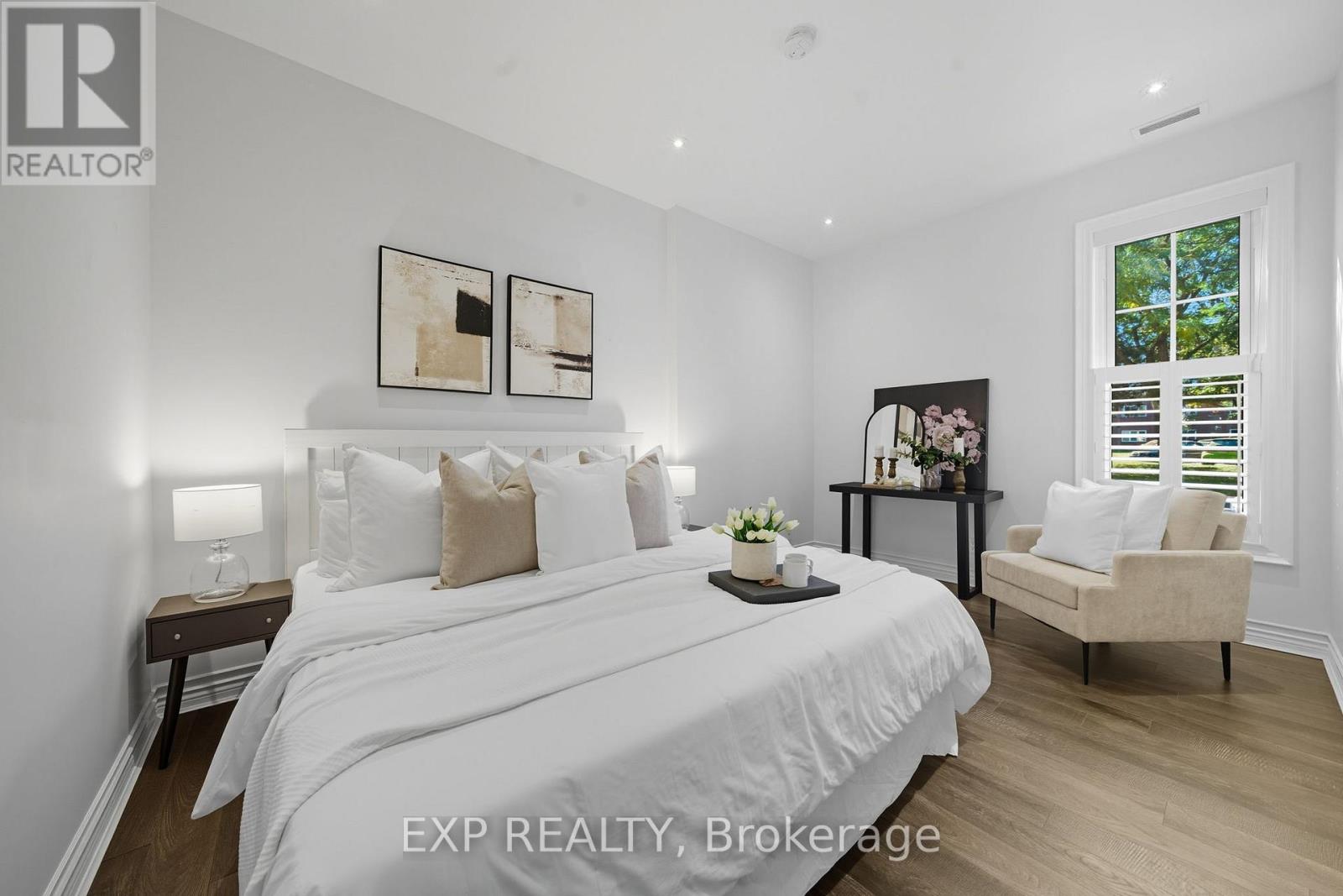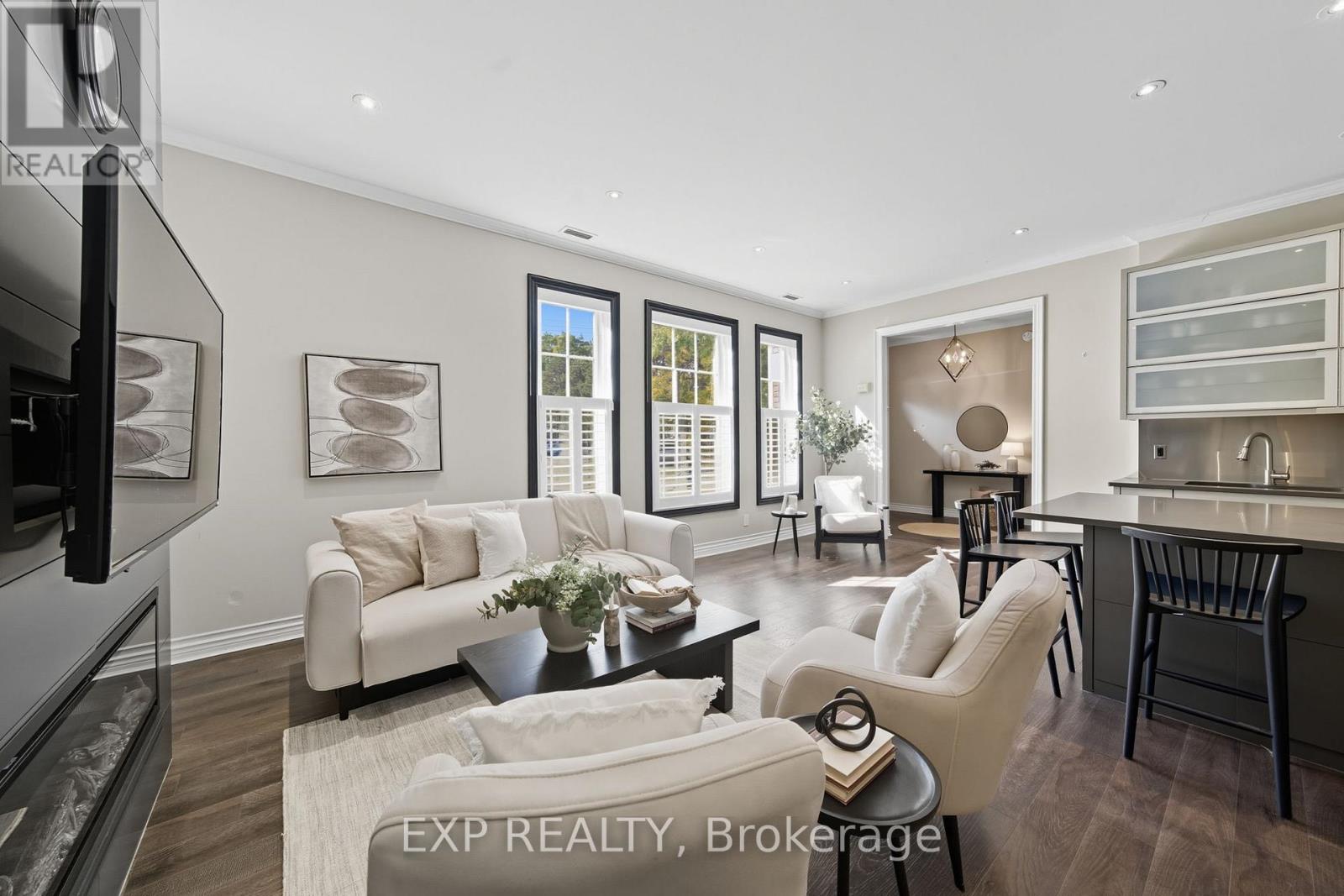 Welcome to 136 Hibernia Street, a beautifully updated 2-bedroom, 2-bathroom single-level condo offering over 1,200 sq. ft. of modern living in one of Cobourg's most charming and convenient locations. This stylish unit features open-concept living with tall ceilings, western exposure, and abundant natural light throughout. The spacious kitchen boasts a large eat-at island, sleek finishes, ample storage, and a stainless steel backsplash, seamlessly flowing into the bright living and dining areas-perfect for both relaxing and entertaining. Recent updates include new flooring and crown moulding, adding a refined touch to the modern yet character-filled interior. The home also offers in-suite laundry and exclusive access to a single-car garage for added convenience. Enjoy the best of Cobourg living, just steps from the waterfront, beach, and downtown shops and restaurants, all while tucked away in a peaceful, sought-after neighbourhood. (id:64974)