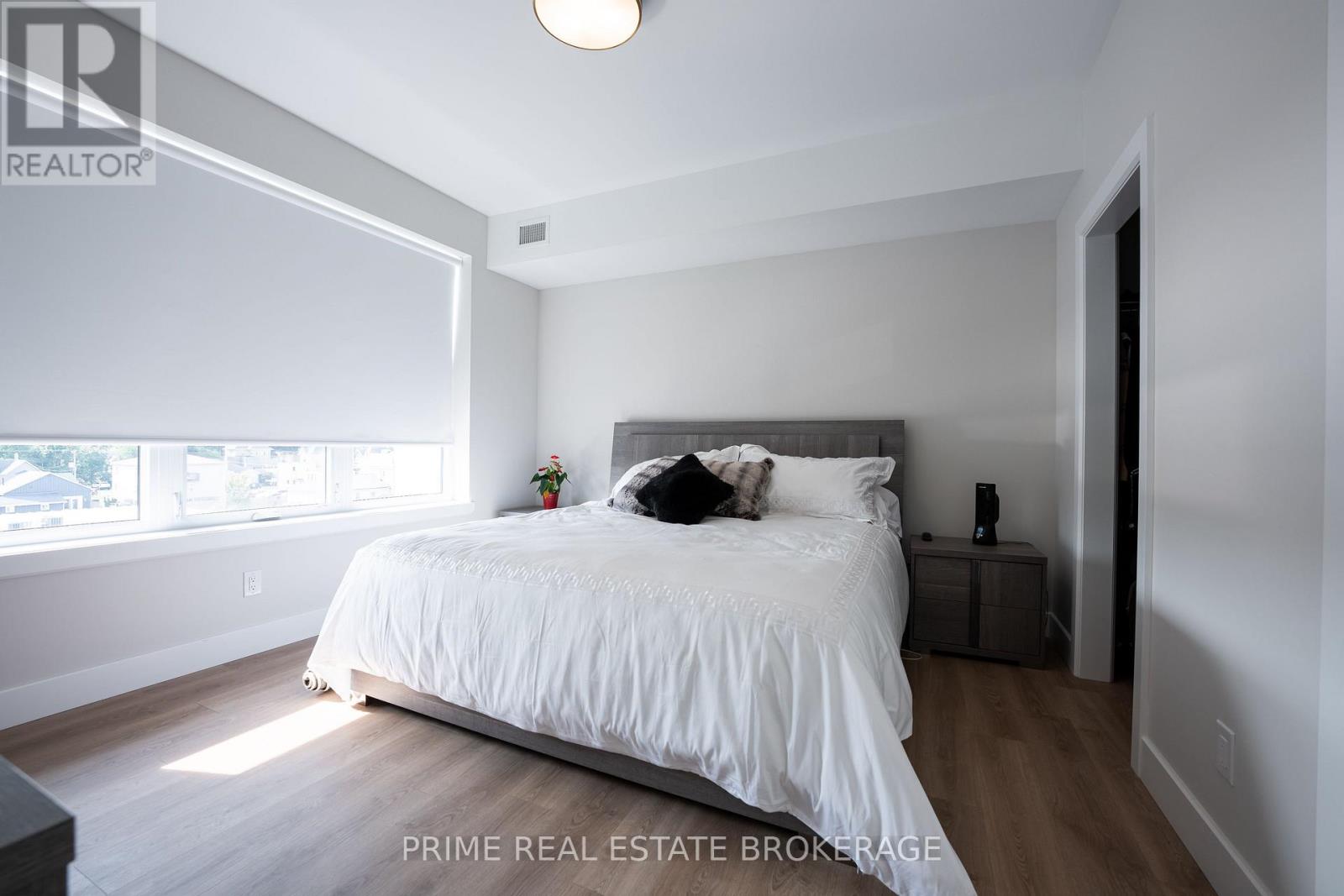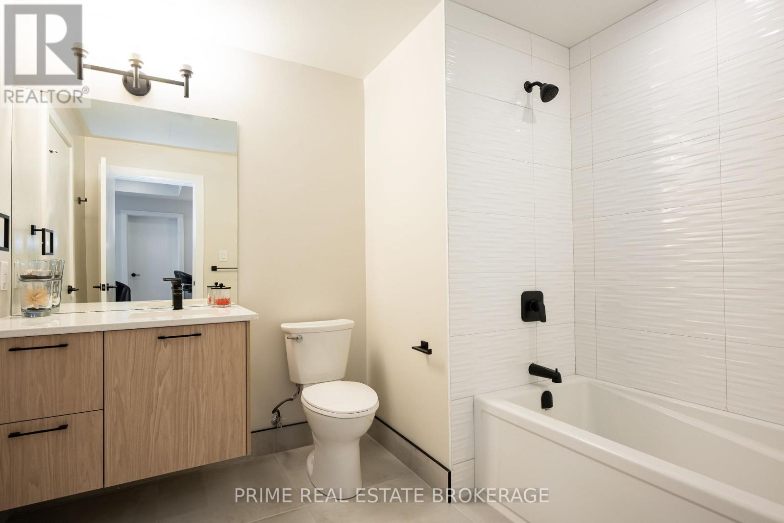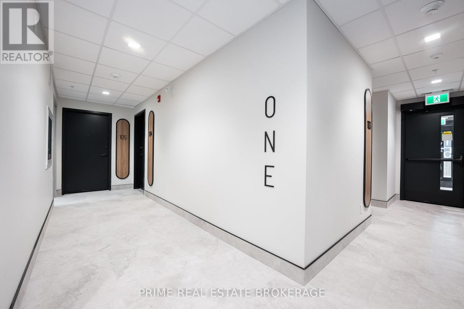 Available January 1, 2026! This barrier-free, 2 bedroom main floor suite at James Street Commons is an aesthetically pleasing, well-designed property located just one block from the vibrant MainStreet core with shopping, dining and the hospital nearby, and a quick 35 minute commute to London or Stratford. Conveniently located yet situated on a quiet residential street with 24/7 secure access, the interior boasts luxurious finishes, oversized windows and 9 foot ceiling that provide for an elegant, yet bright and comfortable space to call home. The stylish open concept kitchen/dining area features stainless steel appliances, quartz countertops, two-tone cabinetry, subway tile backsplash, and an island. An in-suite laundry room is a bonus, while a large primary bedroom with a spacious walk-in closet, and a second bedroom share a 3 pc washroom with a tiled shower. A private covered patio is perfect for relaxing during the warmer months. (id:64974)