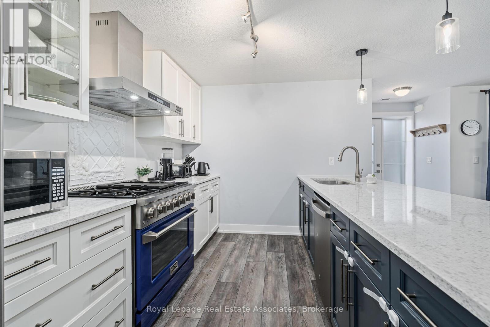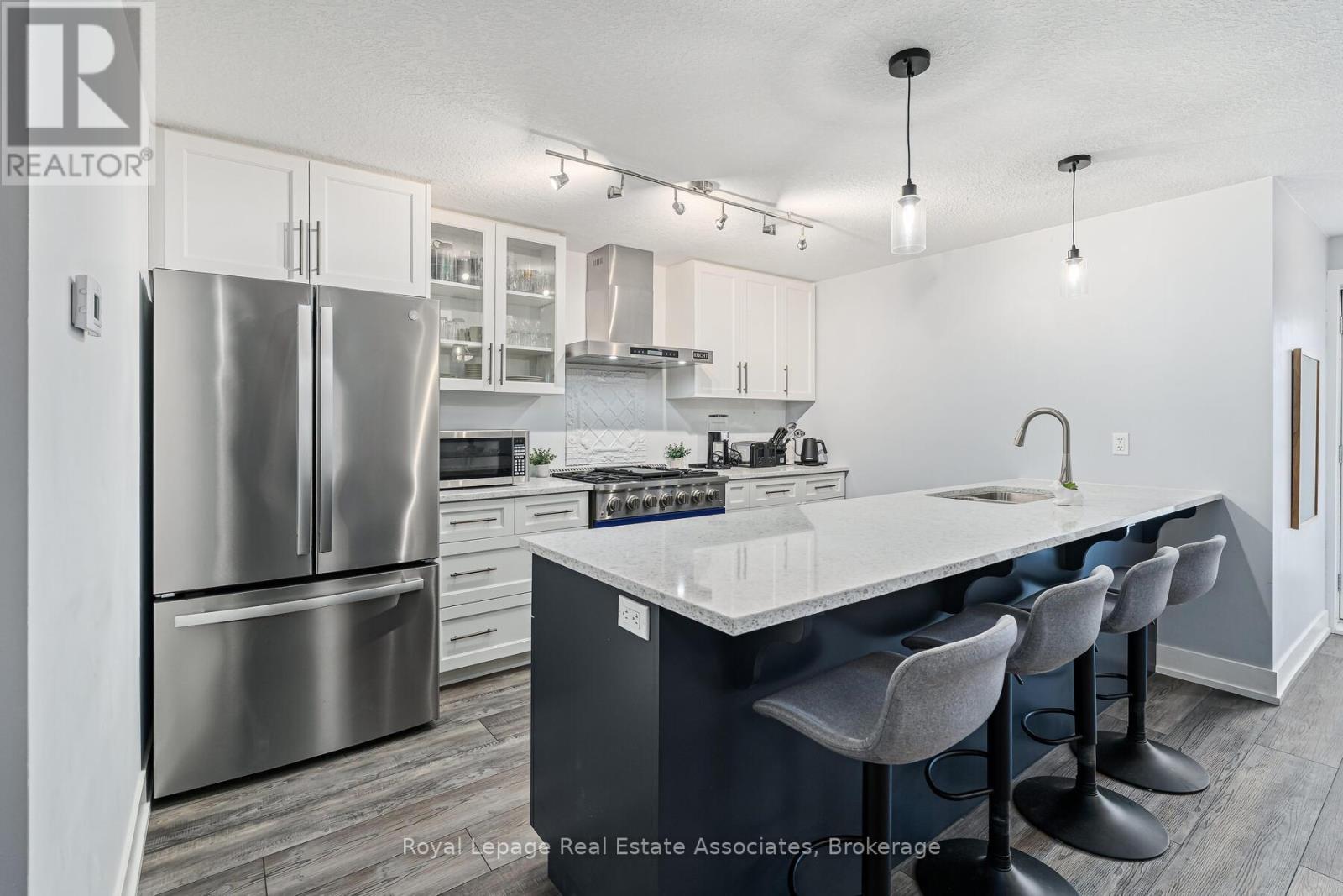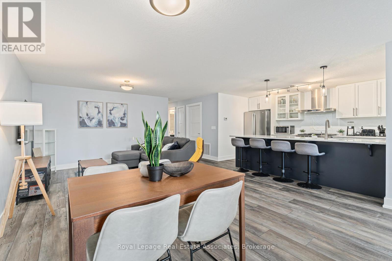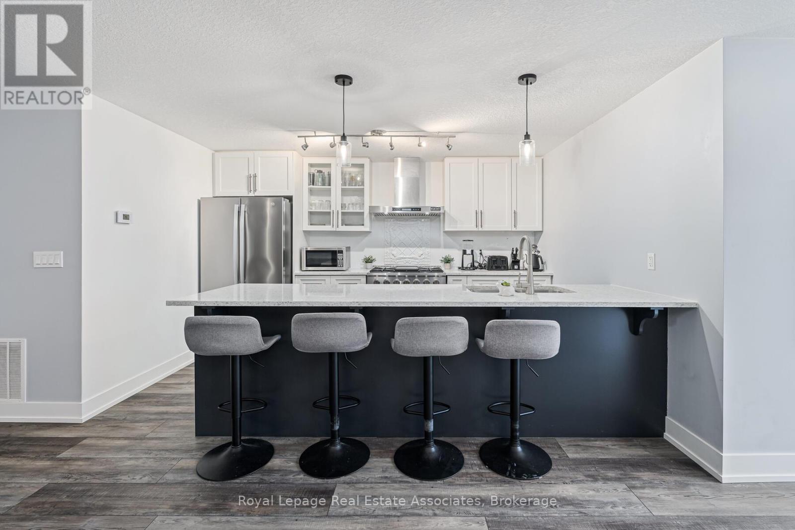 Built in 2021, this bright and beautifully maintained 2-bedroom, 2-bathroom apartment with 2 parking spots, in a highly walkable location, is ideal for first-time homebuyers, downsizers, or investors. Nestled in a quiet, safe, and friendly neighbourhood just minutes from the heart of downtown Orangeville, the home features an open-concept layout with luxury vinyl flooring throughout. The kitchen is thoughtfully designed with quartz countertops, stainless steel appliances, a gas stove, a double sink, ample cabinetry, and a peninsula with seating. The spacious living and dining area is perfect for relaxing or entertaining, with a convenient walkout to the terrace, perfect for barbecues and enjoying the warmer months. The primary bedroom includes a walk-in closet and a 4-piece ensuite with a quartz countertop and a double sink, while the second bedroom offers a double closet and easy access to the secondary 4-piece bathroom, also finished with quartz countertop and tile flooring. Enjoy low-maintenance living with a well-managed condo corporation that handles exterior maintenance, roofing, windows, doors, snow removal, landscaping, window washing, garbage removal, and visitor parking. With charming streets, local shops, restaurants, and seasonal community events nearby, everything you need is within easy reach. (id:64974)