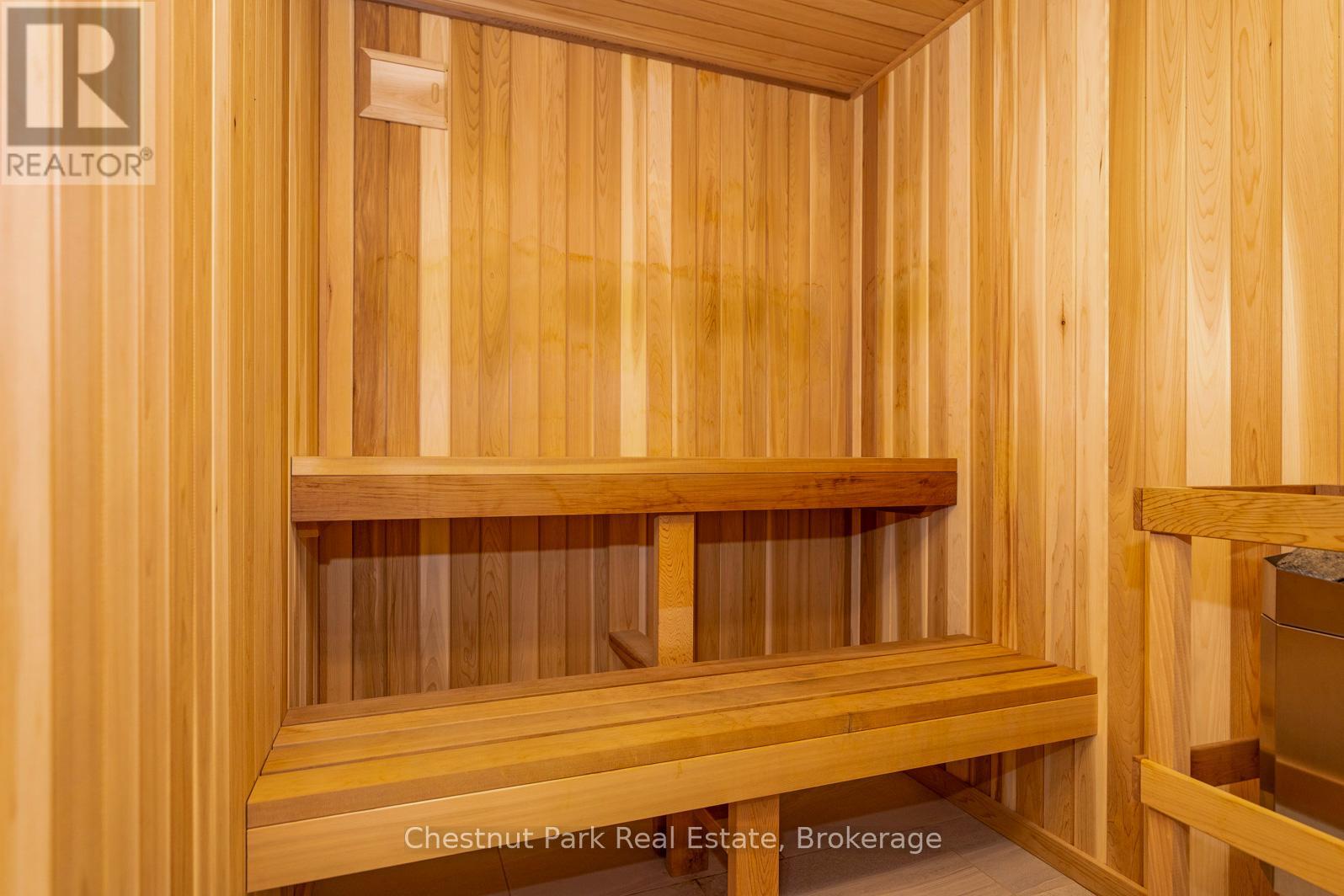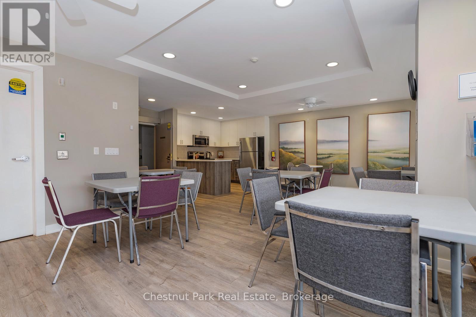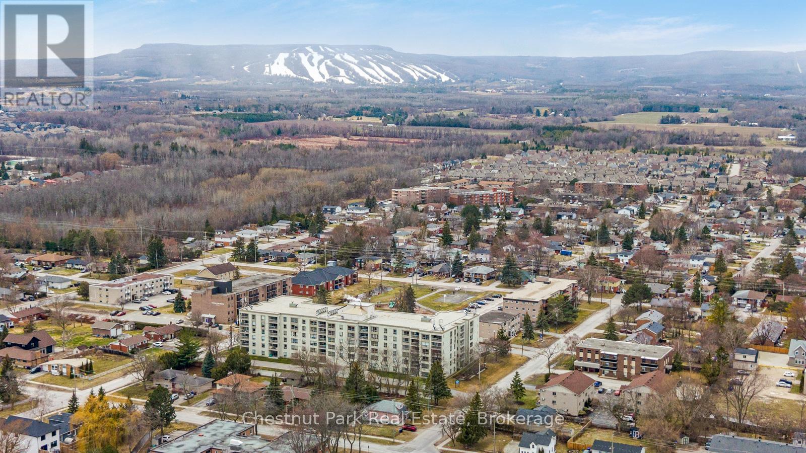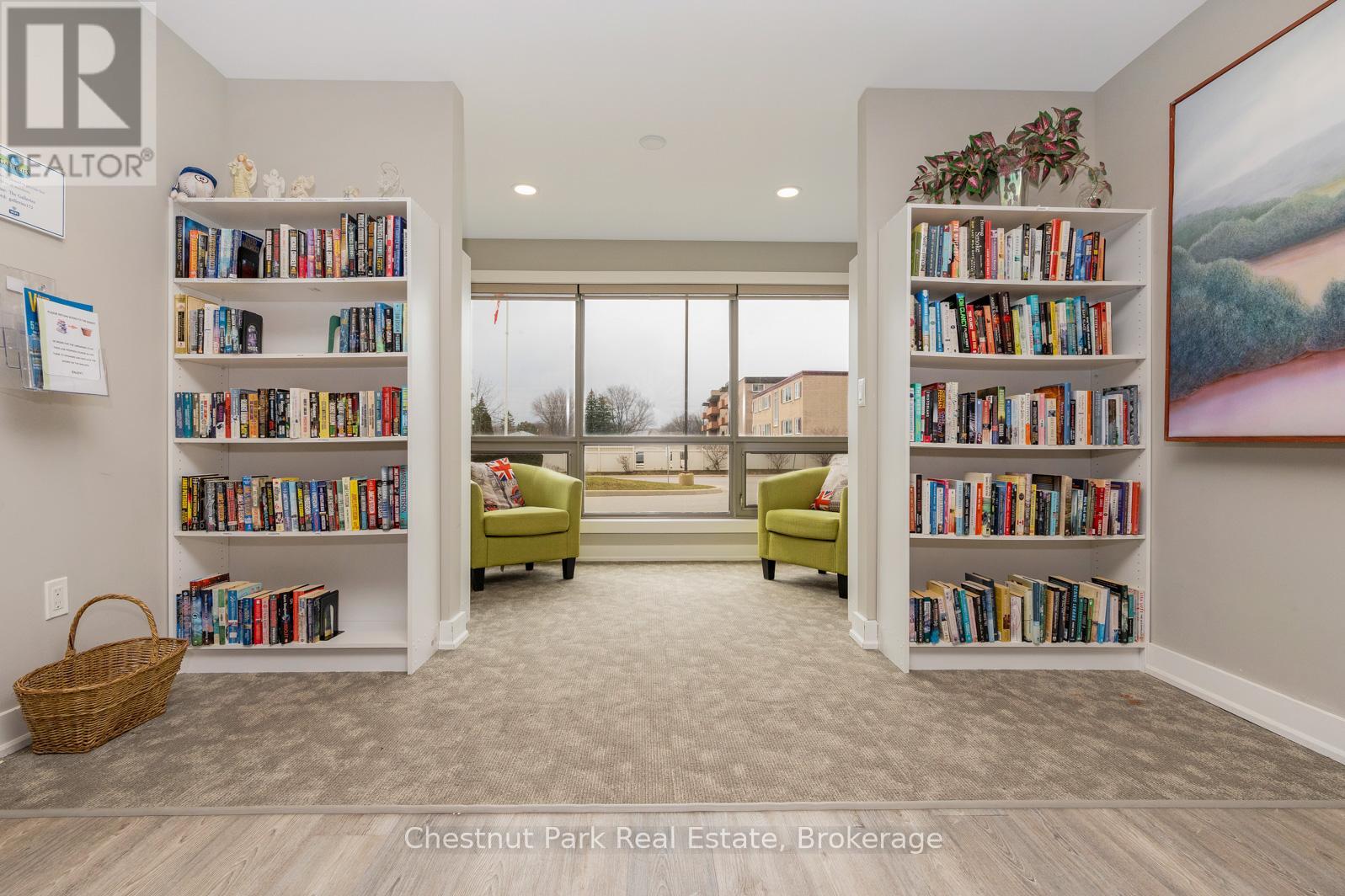 Bright and light 2 bedroom condo on the main floor in The Galleries. This west facing unit boasts ample space with over 1100 sqft; newly installed vinyl plank flooring; and freshly painted. Easy access to the secure front entrance with concierge service or keyless fob side entry to the building, no elevator is needed! Enjoy the convenience of main floor living, easy access to the sauna/fitness/games room, the social room/library, the guest suite (rental rates apply), and your locker. Your heated underground parking space #27 is conveniently located near your unit, access it using the stairs closest to your unit or the elevator just down the hall. Your condominium fees conveniently include heating, air conditioning, water and parking. The building is pet friendly for small pets. Located on the town bus route, giving you access to all in town amenities ~ downtown, shoppes, grocery stores, Georgian Bay, and a short drive to Blue Mountain Resort. This move in ready condominium offers something for everyone, comfort, convenience, and camaraderie! Enjoy the westerly sunshine and escarpment views from your new home. (id:64974)