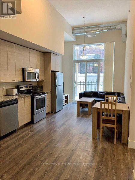 Elegance and convenience in this exceptional FULLY furnished residence, offering soaring 13-ft ceilings and a spacious private terrace. With its premium layout and two walkouts, this suite feels more like a townhouse than a condo.The sun-drenched interiors boast oversized windows and doors in both the living area and bedroom, flooding the space with natural light. A large den, converted into a second bedroom, provides added flexibility. Ensuite laundry with a stacked washer/dryer is included for your convenience. Located just STEPS from Laurier University (only a 2-minute walk), this boutique building offers privacy with approximately 65 exclusive residences. Enjoy a secured semi-private entry and a stunning rooftop terrace. HIGH SPEED INTERNET is included, and all you need to bring are your personal belongings! (id:64974)