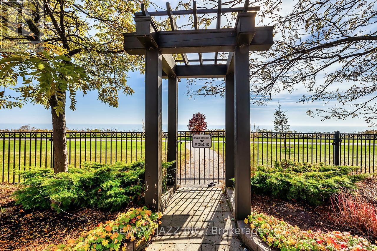 Rare ground-floor condo with unobstructed panoramic views of Lake Ontario from your unit with over 1000 sqf of finished living space. Beautiful 2 bedroom and 2 bath condo with large covered patio overlooking the park and Lake with direct access into the unit. Lovely open concept floor plan featuring a large eat-in kitchen with breakfast bar, 9 foot ceilings, engineered hardwood flooring, primary bedroom with full ensuite bath, 2nd bedroom with convenient "murphy" bed, laundry area, one underground car parking is included a 2nd spot is currently rented. This luxury condo has it all with ownership that includes an exclusive Gold Membership to the Admirals Walk Clubhouse enjoy access to a fully equipped gym, oversized indoor pool, steam room, on-site restaurant, and a host of additional premium amenities and community events that elevate everyday living. Convenient location only minutes to the 401 and and offers endless outdoor opportunities located directly on the Lake. Do not miss this rare ground floor unit! See HD video of this fabulous unit and its Lake views! (id:64974)