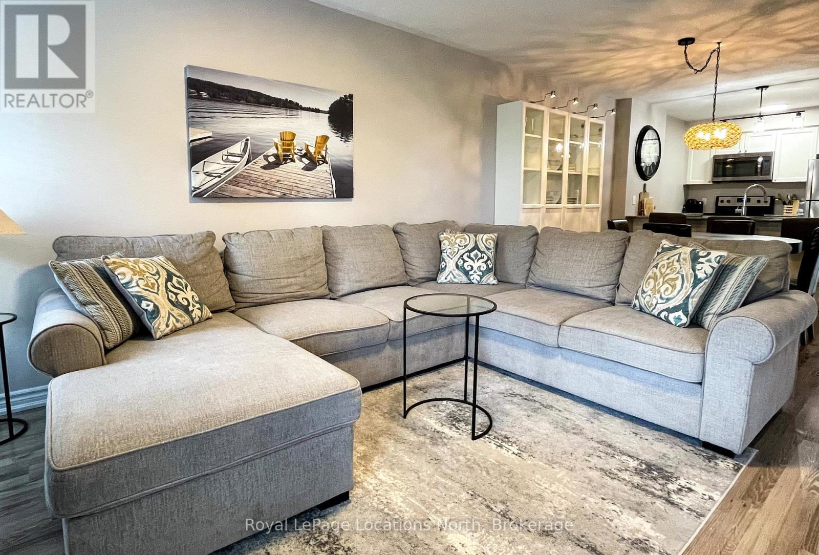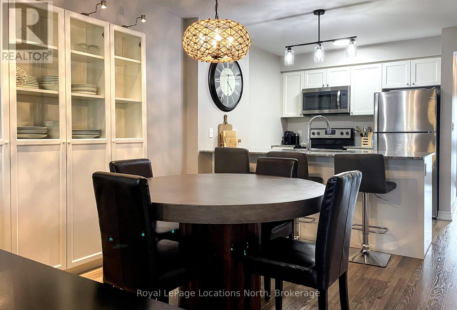 Welcome to 5 Anchorage, Unit 102, a beautifully appointed ground-floor condo in the sought-after waterfront community of Wyldewood Cove. This 2-bedroom, 2-bathroom suite is the perfect four-season retreat or full-time residence. Enjoy views of Georgian Bay right from your living room and seamless indoor-outdoor living with a walkout to a private covered terrace. The open-concept layout features a stylish kitchen with ample storage, a cozy dining/living area with a gas fireplace, and large windows that bathe the space in natural light. The primary bedroom includes a 4-piece ensuite, while the second bedroom and a 3-piece bath are just steps away. With in-suite laundry, private storage, and the option for shared watersport storage, everything you need is right here. Whether you're looking for a place to relax or a home base for your adventures, this location delivers. Step off your terrace and stroll to the waterfront, the heated year-round pool, or the fitness centre. Dip your toes in the bay, launch your paddleboard, or explore nearby hiking and biking trails, golf courses, ski hills and beaches. Situated just minutes from downtown Collingwood and the Village at Blue Mountain, you'll have easy access to shopping, dining, entertainment and lots of outdoor activities. Don't miss your chance to own this incredible slice of Georgian Bay life. (id:64974)