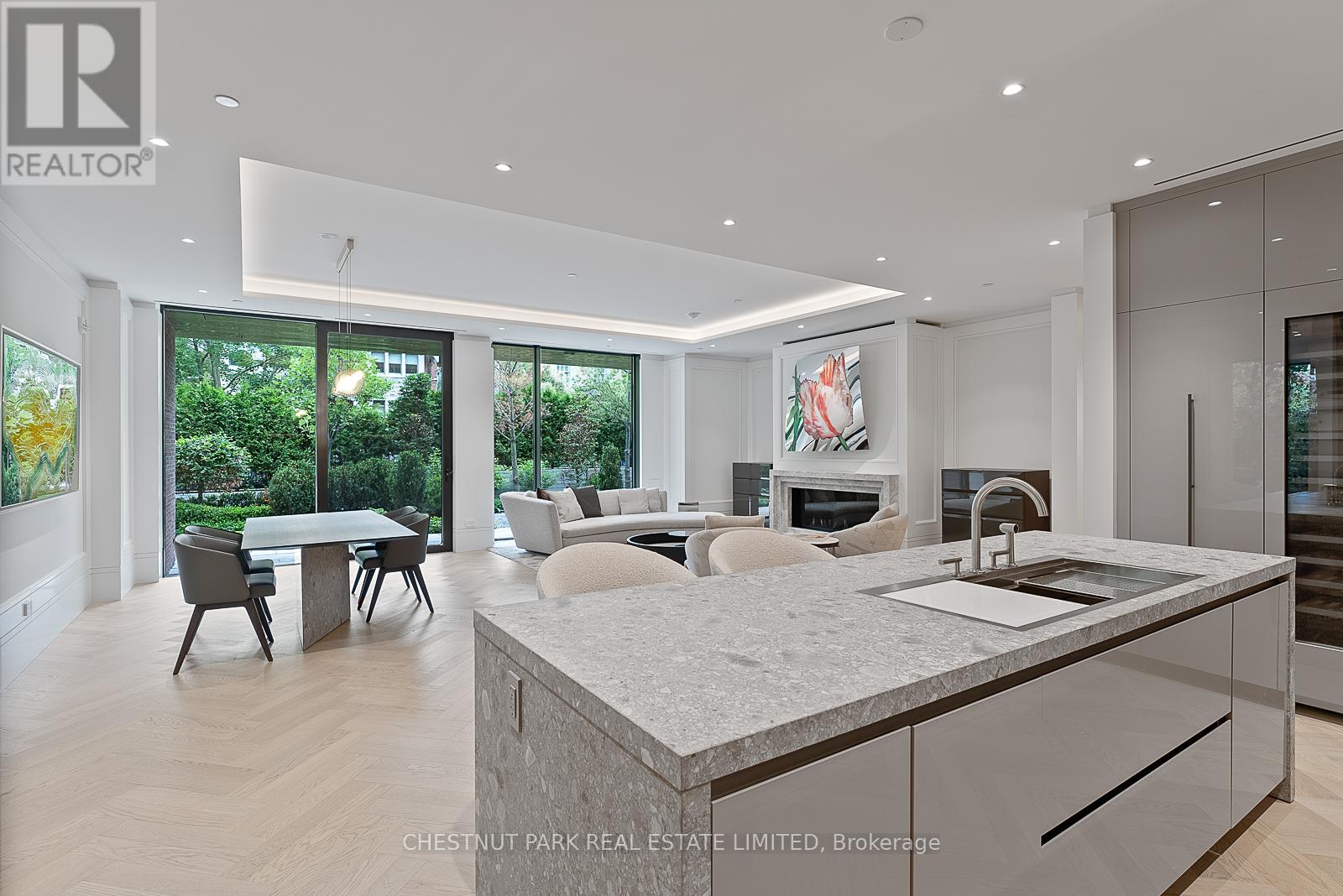 Welcome to 7 Dale, an exquisite boutique residence by Siamak Hariri and Studio Munge, exemplifying quiet luxury in every thoughtful detail. This fabulous one-of-a-kind apartment offers all the livability, private outdoor space and design aesthetic of a midcentury bungalow, set in a newly completed condominium in the heart of Rosedale! Collect art and appreciate great design. A gallery style entrance with large art walls creates a dramatic and memorable first impression and leads to an open concept great room perfect for hosting family gatherings, holiday entertaining or simply relaxing in. Enjoy cooking... You will fall in love with the sleek DaDa chef's kitchen featuring huge central island & 9-piece Gaggenau appliance package with both gas and induction options. Adore nature? Massive floor-to-ceiling glass panels with walkouts from every room frame the changing seasons of your own private outdoor space. The generous dining/seating terrace is sheltered from rain by a bronze canopy and surrounded by lush layers of beautifully manicured gardens. Value privacy... The split bedroom layout allows for maximum separation of space while a corner family room offers an alternative retreat off the great room, ideal for reading or watching films. Enjoy the ease and convenience of main floor accessibility with 24 hour concierge services just down the hall and potential for a direct private gated access to Dale Avenue (perfect for morning runs or walking the dogs!) Downstairs, a sumptuous spa and fitness club await, fitted with Pent, Peleton and Tonal equipment. A home suited for year round enjoyment or lock and leave to travel at a moment's notice with complete security and peace of mind assured. Mere minutes to the city's finest shopping and dining venues, yet feels like an exclusive retreat a world away from the urban bustle. This is a rare opportunity to enjoy a lifestyle without compromise, combining the unique features of a home with all of the benefits of a condominium. (id:64974)