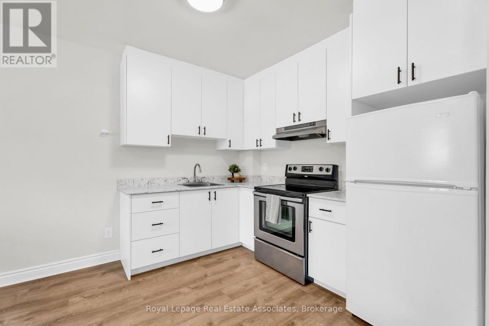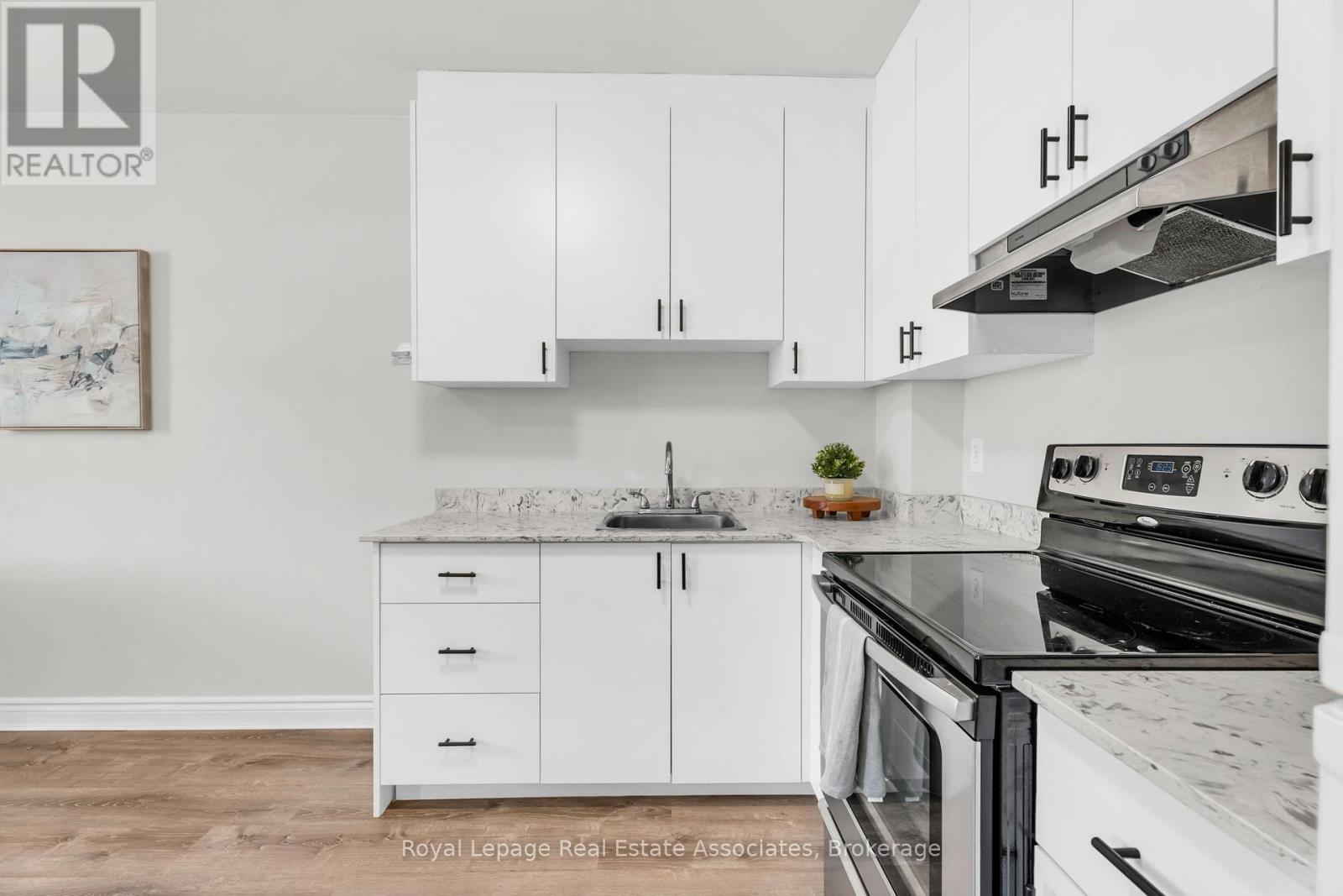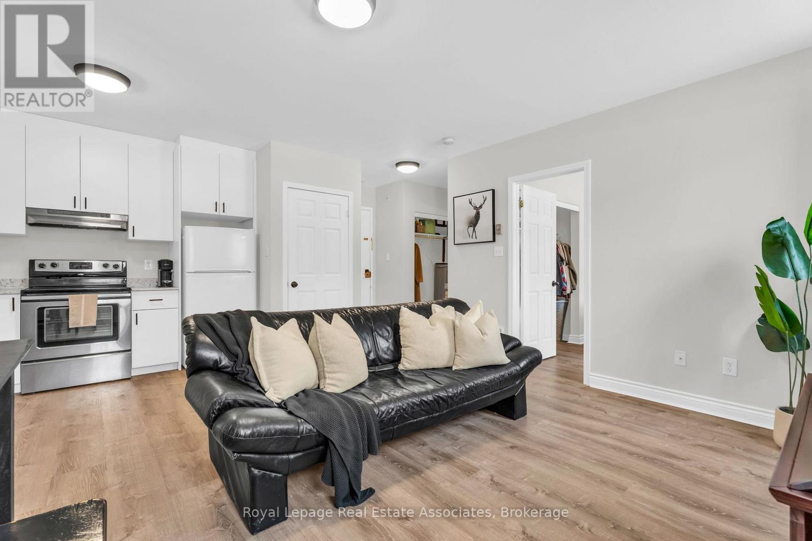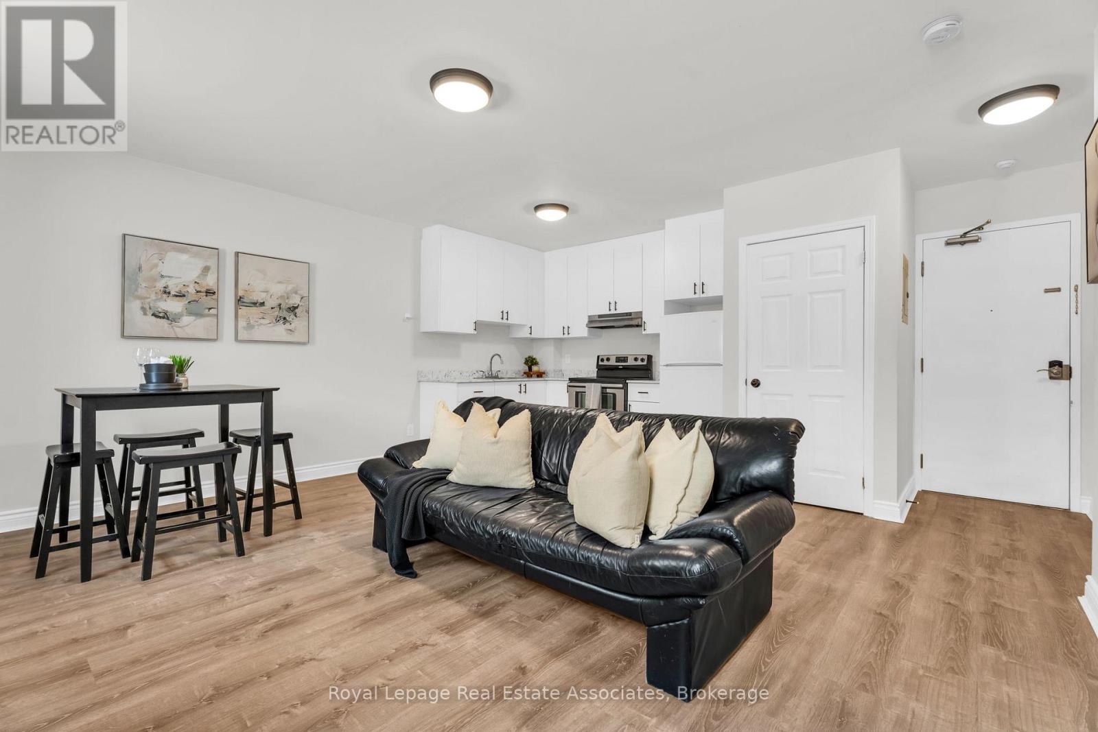 An excellent opportunity for first-time buyers or investors to step into the market. This well-maintained and thoughtfully updated unit features a bright, open-concept layout with a functional kitchen overlooking a spacious living and dining area. Recent upgrades include luxury vinyl plank flooring throughout, modern pot lights, and a beautifully updated 4-piece bathroom. The renovated kitchen showcases new cabinetry, quartz countertops, and stainless steel appliances, offering both style and functionality. Enjoy a generously sized bedroom along with the convenience of in-suite laundry. Ample visitor parking is available along the building. Centrally located in Orangeville, within walking distance to the downtown core, shopping, restaurants, and more. A must-see opportunity offering comfort, convenience, and strong value. (id:64974)