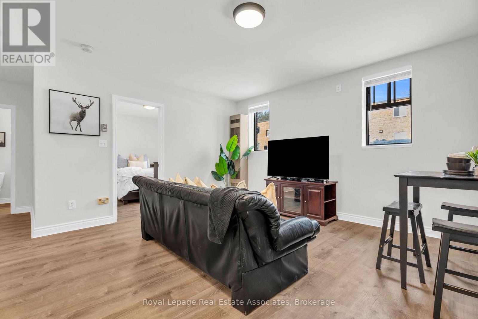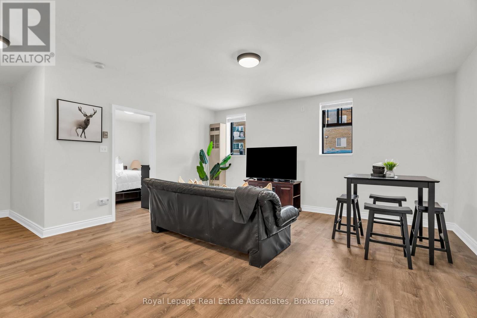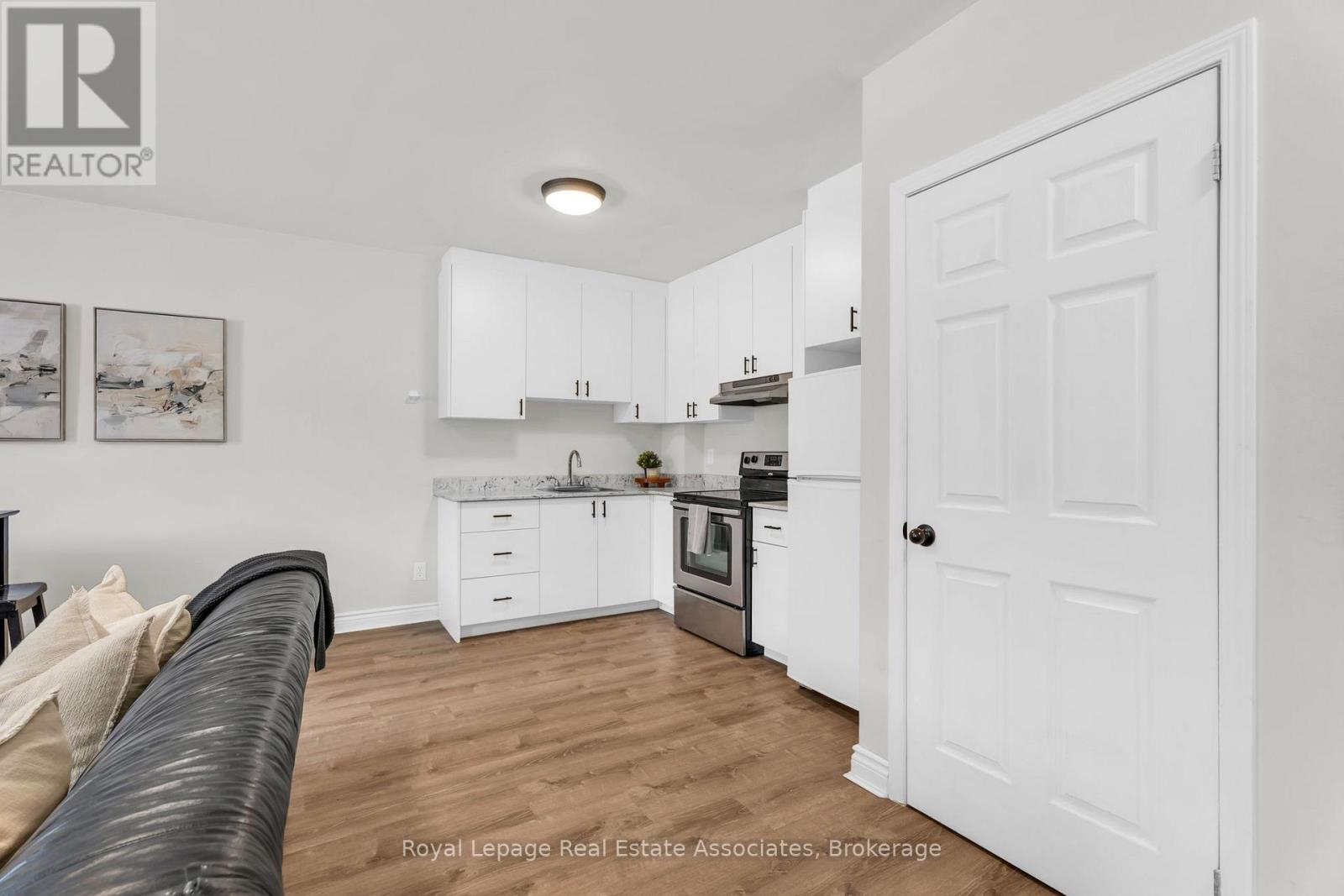 An excellent opportunity for first-time buyers or investors to step into the market. This well-maintained and thoughtfully updated unit features a bright, open-concept layout with a functional kitchen overlooking a spacious living and dining area. Recent upgrades include luxury vinyl plank flooring throughout, modern pot lights, and a beautifully updated 4-piece bathroom. The renovated kitchen showcases new cabinetry, quartz countertops, and stainless steel appliances, offering both style and functionality. Enjoy a generously sized bedroom along with the convenience of in-suite laundry. Ample visitor parking is available along the building. Centrally located in Orangeville, within walking distance to the downtown core, shopping, restaurants, and more. A must-see opportunity offering comfort, convenience, and strong value. (id:64974)
