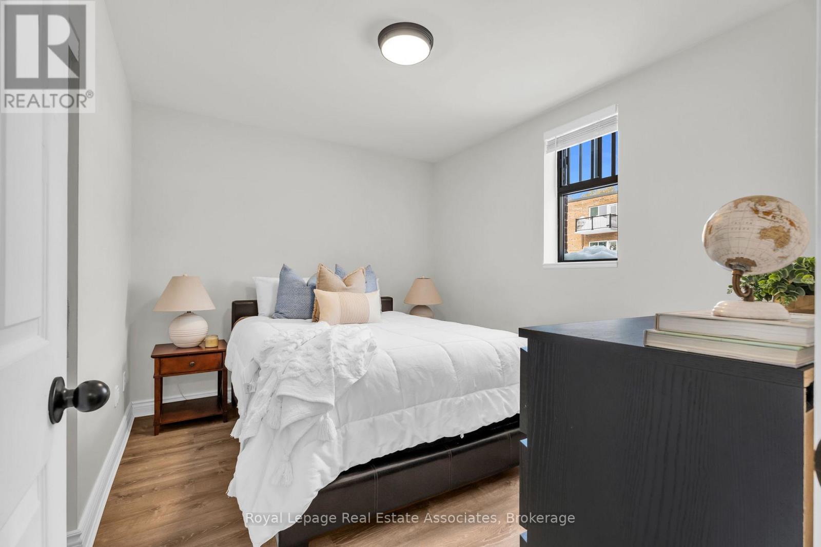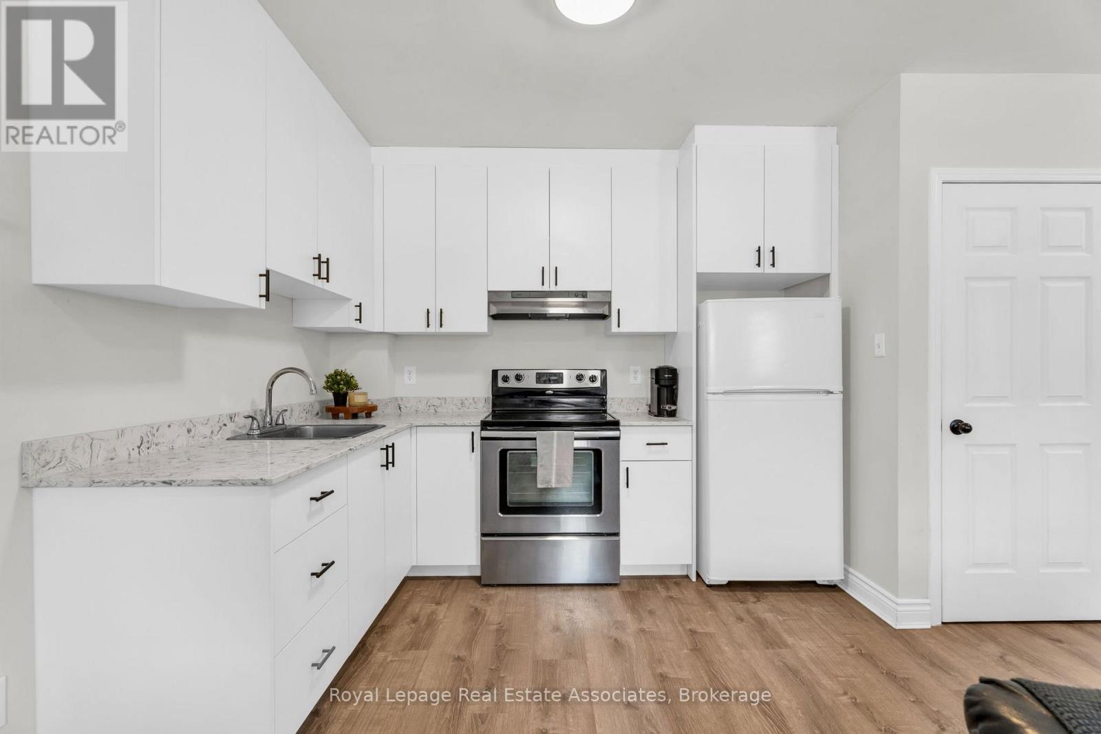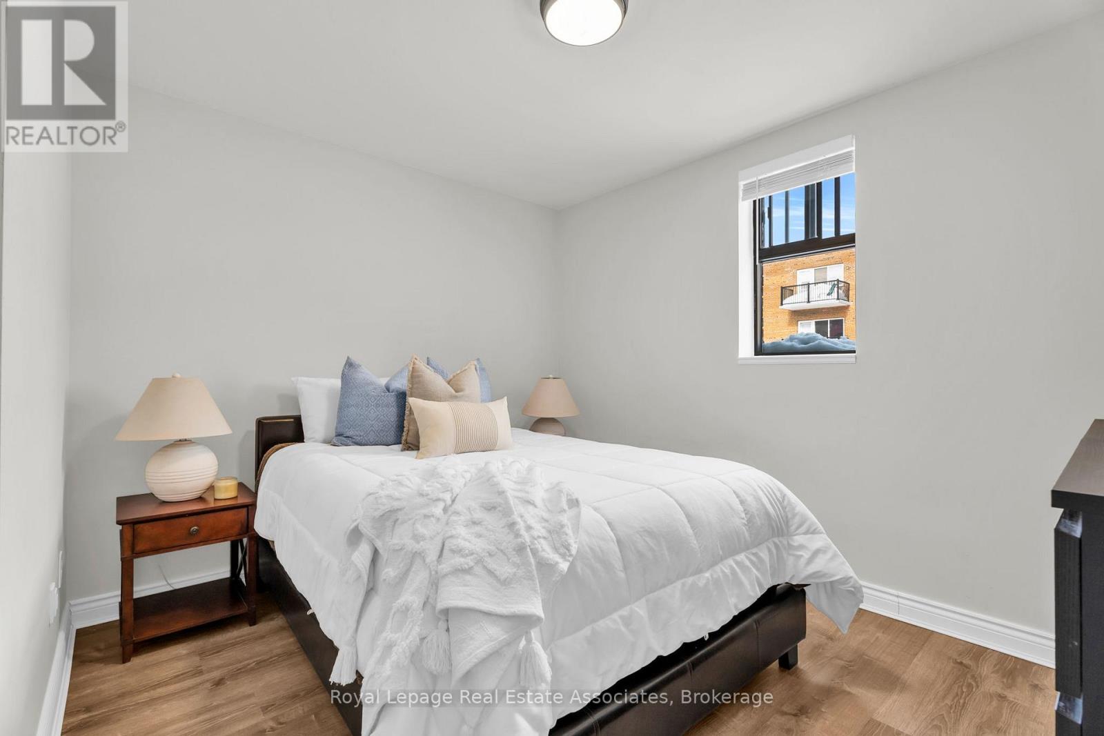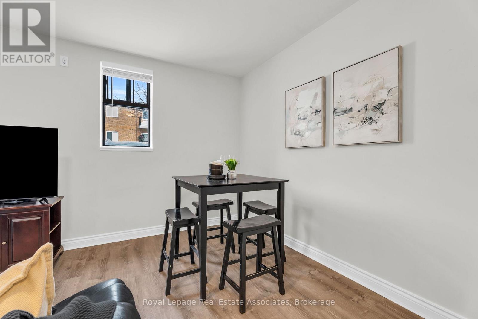 An excellent opportunity for first-time buyers or investors to step into the market. This well-maintained and thoughtfully updated unit features a bright, open-concept layout with a functional kitchen overlooking a spacious living and dining area. Recent upgrades include luxury vinyl plank flooring throughout, modern pot lights, and a beautifully updated 4-piece bathroom. The renovated kitchen showcases new cabinetry, quartz countertops, and stainless steel appliances, offering both style and functionality. Enjoy a generously sized bedroom along with the convenience of in-suite laundry. Ample visitor parking is available along the building. Centrally located in Orangeville, within walking distance to the downtown core, shopping, restaurants, and more. A must-see opportunity offering comfort, convenience, and strong value. (id:64974)