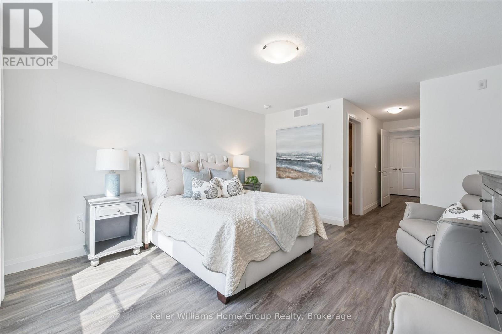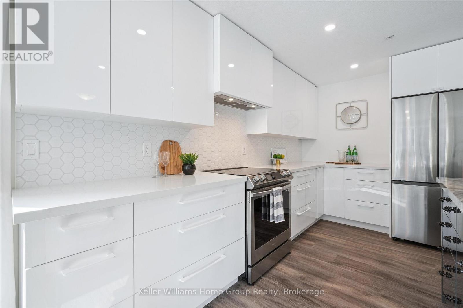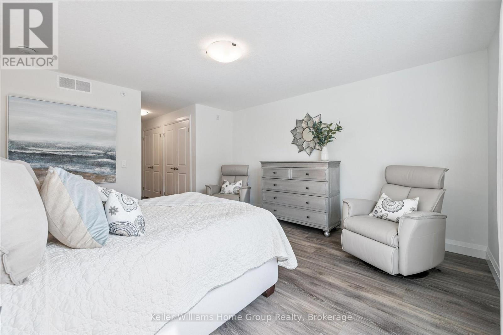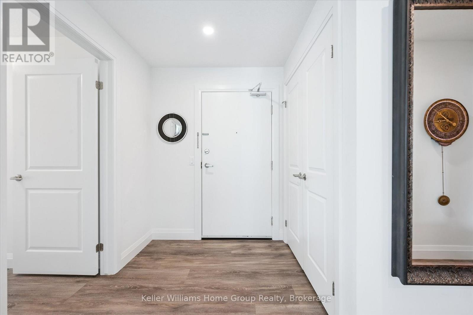 Welcome to elevated living in this stunning corner unit condo, offering over 1,300 square feet of thoughtfully designed space. Built in 2022 by Keating Construction, this 2-bedroom, 2-bathroom ground-floor home combines upscale finishes with everyday comfort in a layout that's both functional and elegant. Natural light floods the open-concept living area, where a striking modern electric fireplace creates a cozy yet contemporary focal point. The designer kitchen is a true show stopper featuring upgraded cabinetry, sleek surfaces, and premium fixtures that make cooking and entertaining a pleasure. Enjoy the added luxury of automatic blinds and custom drapery throughout, bringing style and ease to every room. The spacious primary suite includes a well-appointed en-suite and generous closet space, while the second bedroom offers flexible use for guests or a home office. With direct ground-floor access and a private balcony perfect for your morning coffee, this condo is ideal for those seeking low-maintenance, high-quality living. Whether you're downsizing, investing, or purchasing your first home, this exceptional unit offers modern flair, convenience, and lasting value in a vibrant community. (id:64974)