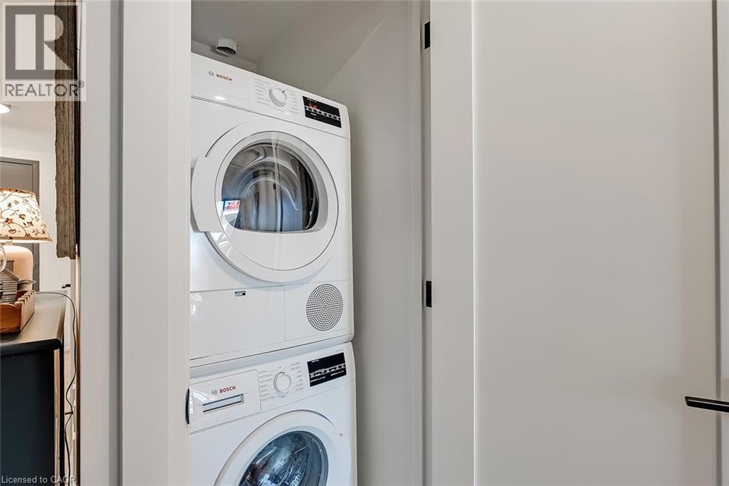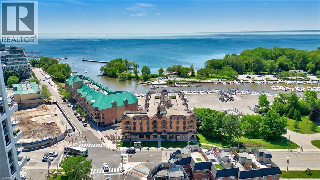 Gorgeous 1 bed 1 bath fully renovated unit with chic finishes in Bronte's boutique Pier 12 condo in the heart of Bronte Village. The updated kitchen features stainless appliances, quartz counters, pot lights and undermount sink. The bright living room/dining room faces east and features engineered flooring, and the beautiful bathroom has a glass step in shower with gold accents. You can access your balcony from the living room or bedroom. Enjoy stunning sunsets and outstanding views of the harbor, lake, historic boat yard, and the main strip, and enjoy sunrises, sunsets and BBQs with guests from the updated roof top terrace with 360-degree views. Fantastic amenities include a roof top library and party room, indoor pool, sauna, and exercise room. Steps to the lake, marina, restaurants, and shops and all Bronte has to offer. Includes two underground parking garages. Lockers are available to rent for $20/Month. (id:64974)