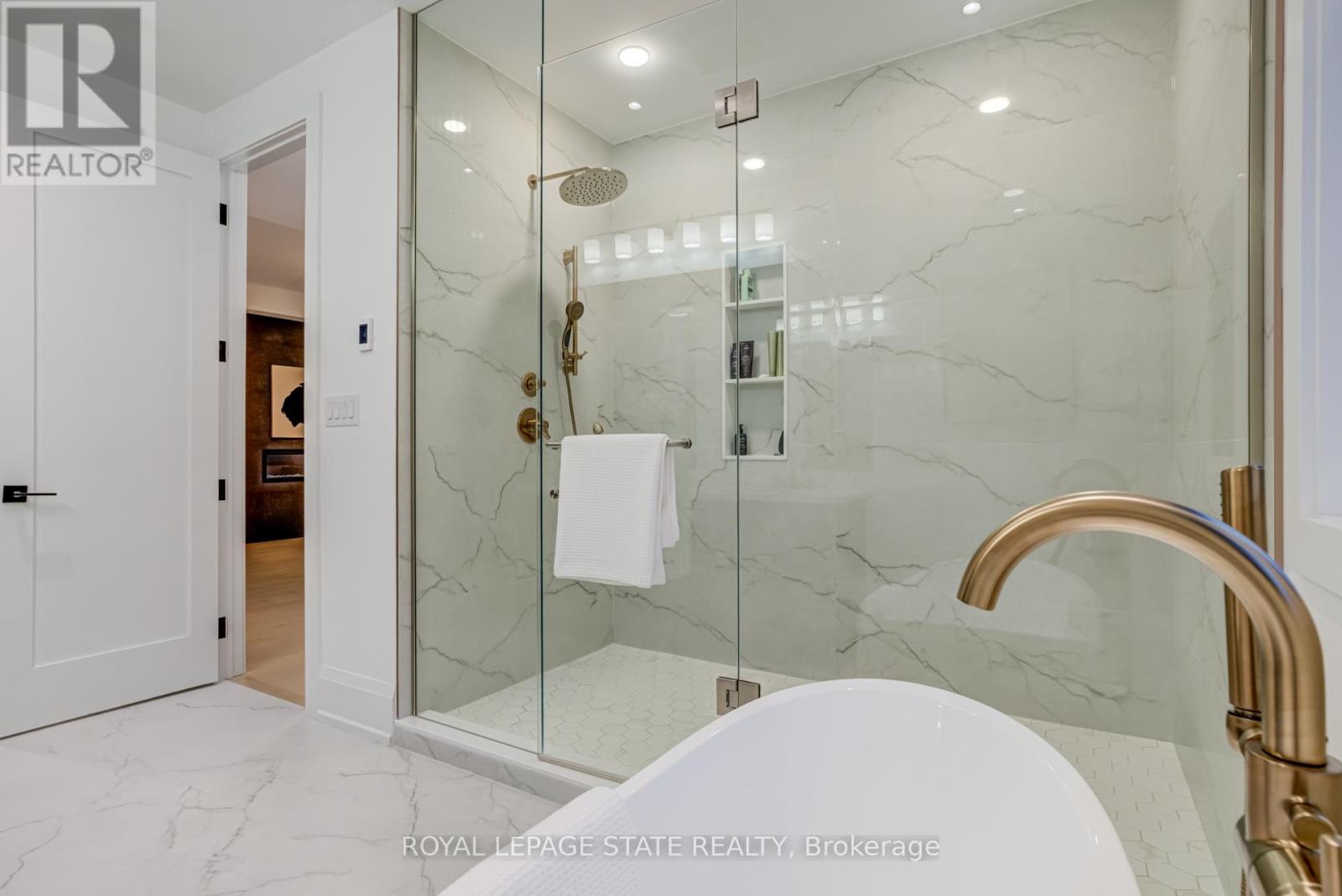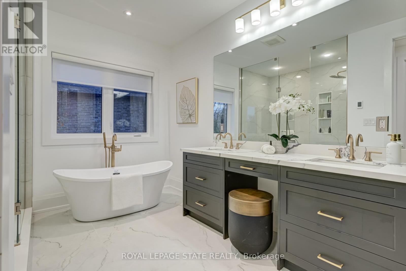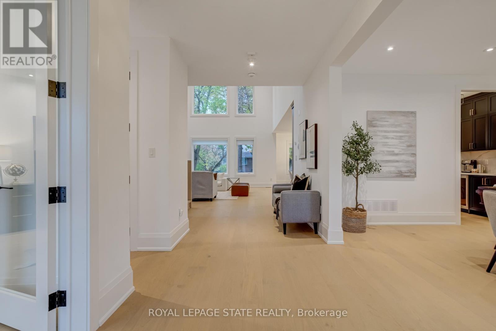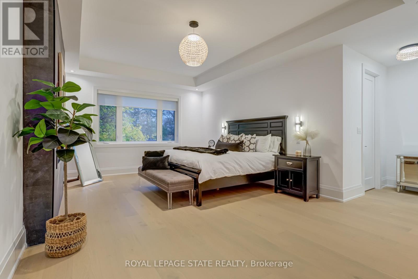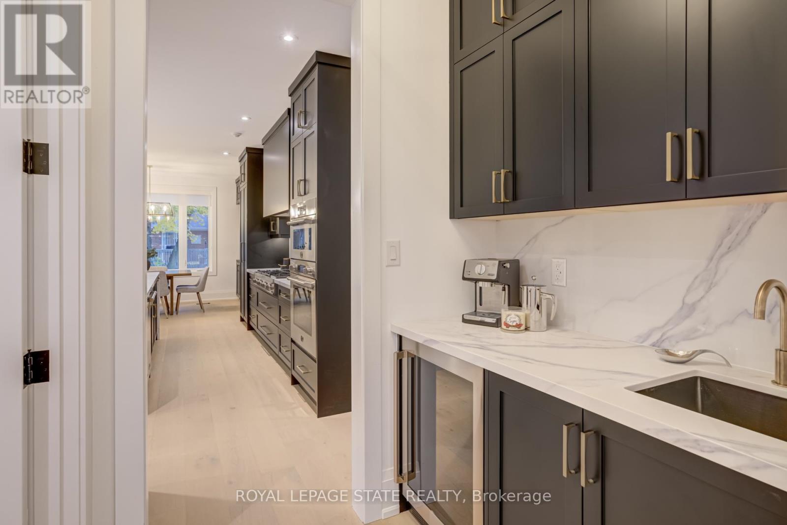 Crafted with exceptional attention to detail and completed in 2025 (Tarion warranty), this custom two-storey luxury home offers nearly 6,000 sqft. of finished living, 5+1 bedrooms, 6 total baths, and a contemporary transitional design blending sophistication with family-friendly functionality. Situated on a 75 x 105 ft lot in Ancaster's Nakoma neighbourhood, it features striking curb appeal with a stone-and-stucco exterior and a 2.5-car triple tandem garage. Inside, soaring 9 ft ceilings on all three levels, wide-plank white oak hardwood, 8 ft solid core doors, 9 baseboards, and oversized windows create a sense of grandeur. The 19-ft great room showcases floor-to-ceiling windows and a 42 gas fireplace flanked by custom cabinetry. A main-floor office with built-ins, formal dining room, and powder room provide elegant, purposeful spaces, while the dining table converts into a pool table for dual-purpose entertaining. The gourmet kitchen features black cabinetry, a 9' x 5' waterfall quartz island, full-slab quartz backsplash, champagne and honey bronze fixtures, Bertazzoni appliances, and a walk-in pantry and servery with black stainless-steel sink. Adjacent are the mudroom/laundry with garage entry and a main-level bedroom with ensuite. Upstairs, four bedrooms each have ensuite access, including a primary retreat with 10 ft tray ceiling, oversized walk-in closet, linear fireplace, and spa-inspired 5-piece ensuite with heated floors. The finished lower level offers 9 ft ceilings, oversized windows, sixth bedroom, full bathroom, linear fireplace, and endless possibilities. Additional features include radon mitigation, 200-amp service, hardwired security system, and DryCore subfloor. Outside, the back patio provides a starting point for a dream outdoor space, with a pre-approved building permit for an in-ground pool and gas lines for BBQ. Centrally located, this home offers walkability to schools, parks, shops, and quick access to Hwy 403. (See full list of features.) (id:64974)