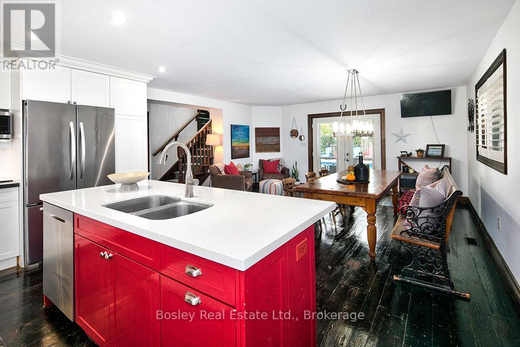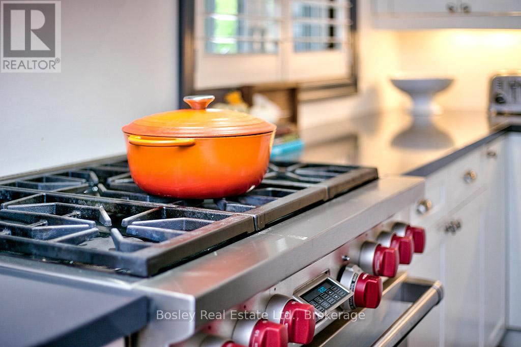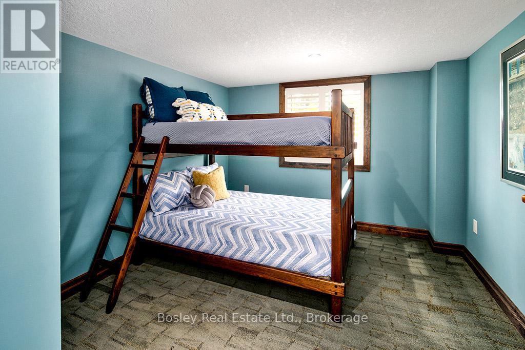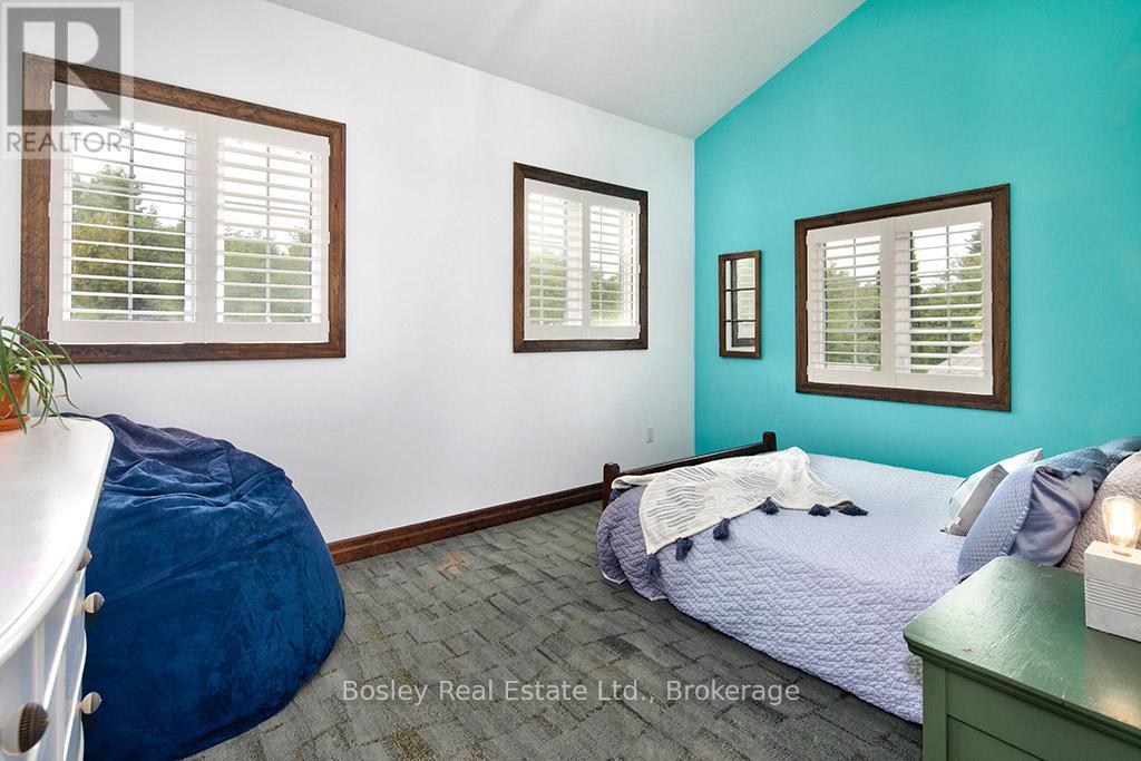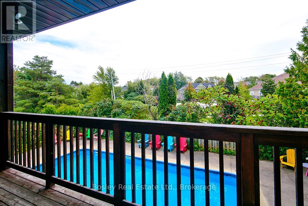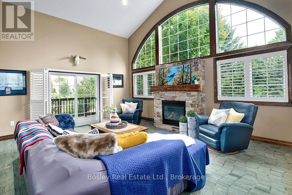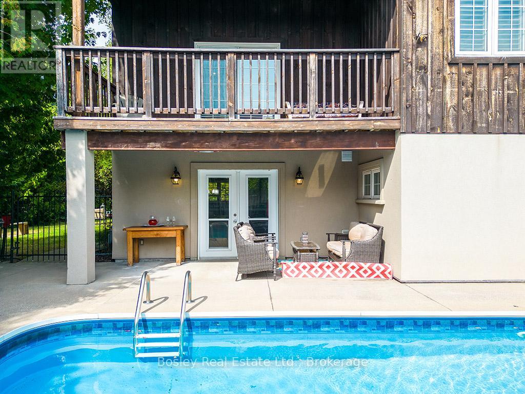Located on a private lane, this architecturally designed chalet offers refined living within walking distance to Blue Mountain Resort and Monterra Golf. Situated on a 1/4 acre lot, this property features a private inground pool, spa amenities including a sauna, wet room, and steam shower, with no additional fees. The spacious foyer leads to a gourmet kitchen with quartz countertops and an oversized island. The main level features a primary bedroom with a luxury ensuite and walk-in closet. The Great Room boasts vaulted ceilings, a stone gas fireplace, and a walkout to a covered deck overlooking the 27' x 40' pool. The side yard provides space for outdoor activities, while the upper level offers 5 additional bedrooms, a 5-piece bathroom, and a sauna. Close to hiking, skiing, and the amenities of Blue Mountain Village, and just minutes from Collingwood, this property offers year-round enjoyment. ** This is a linked property.** (id:64974)