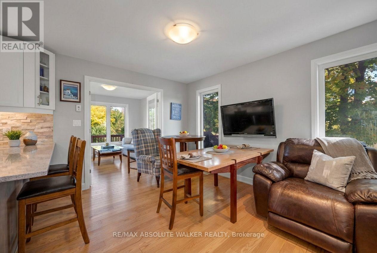 Discover this exceptional 2 + 1 bedroom, 2 bathroom bungalow, built in 2020, offering modern elegance and comfort on an oversized corner lot, a rare find on this street. With a 1-car garage, this home seamlessly blends style, function and serenity. Step into a beautifully upgraded interior featuring top-of-the-line finishes throughout. The primary bedroom includes a convenient cheater ensuite for privacy and ease. Natural light floods the sunroom, creating a peaceful retreat, and from there you can step out onto the massive wrap-around deck, perfect for entertaining or simply soaking in the outdoors. Mature trees around the property provide a sense of seclusion and tranquility. A standout feature is the included 13 kW generator, offering peace of mind and ensuring your systems stay powered through outages. The fully finished basement adds an extra dimension to this homes appeal. Here you'll find a third bedroom, a full bathroom, and an expansive rec room, ideal for multi-gen living, guests, or a play and entertainment hub. Living in Merrickville means embracing a charming, historic village. Merrickville delights with its heritage architecture, vibrant arts scene, artisan galleries, boutique shops, cafés, and riverside trails. Outdoor enthusiasts will love the walking and biking paths along the Rideau ,boating, and garden attractions like the Rideau Woodland Ramble. Despite its peaceful village atmosphere, Merrickville maintains convenient access to larger centres, making this an ideal blend of tranquility and accessibility. This home offers turnkey luxury, flexibility, and a lifestyle that captures the essence of Merrickville living. Don't miss your opportunity to call this rare corner-lot bungalow your new home. (id:64974)