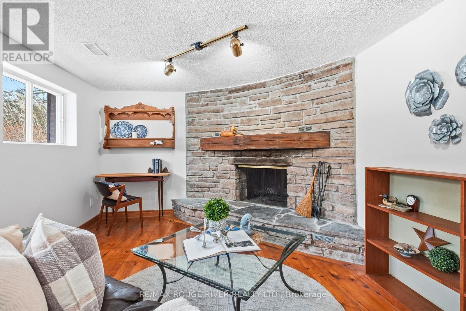 Offered for the first time in nearly five decades, this well-loved 3-bedroom sidesplit sits on just over 1.5 acres on the edge of Cobourg. Owned by the same family since 1977, the home offers a functional multi-level layout with bright principal rooms, three comfortable bedrooms, one full bath, and an attached garage for everyday convenience.The lower-level family room is a standout feature, anchored by a beautiful stone fireplace with a wood mantle and finished with reclaimed pine floors, a warm and inviting space for gatherings or quiet evenings in. Outside, mature trees, thoughtfully landscaped perennial gardens, and a quaint rock pond tucked into the front yard create privacy and a peaceful setting that feels worlds away while still being minutes to town amenities. A rare first-time offering in a location where space and proximity rarely meet. (id:64974)
