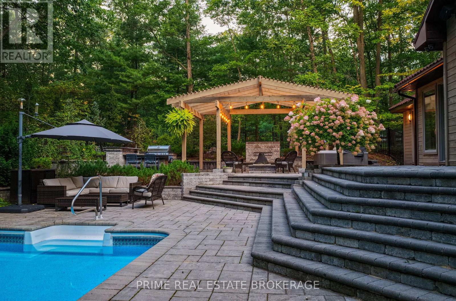 Secluded Huron Woods retreat with private beach access, smart tech, and a resort-ready backyard. Tucked on a treed lot at 10219 Pinetree Drive in Lambton Shores, this detached bungalow backs onto protected lands by Pinery Provincial Park, surrounding daily life with birdsong and Grand Bend sunshine.Step inside to a calm, coastal aesthetic where comfort meets innovation. Geothermal heating and cooling keep bills low and seasons steady. Whole-home smart integration-lighting, sound, security, sprinklers, and hot tub-puts everything at your fingertips. A fully renovated chef's kitchen anchors the main floor with modern cabinetry, generous prep space, and easy flow to sunlit living and dining zones for Sunday pancakes and midweek pasta nights. Two restful bedrooms on this level pair with refreshed baths for effortless routines and unhurried evenings by the fireplace.The lower level shifts the mood from serene to celebratory. A bar lounge with keg tap and wine fridge sets the scene for movie marathons and big-game watch parties, while flexible spaces accommodate a gym, hobby corner, or quiet office for remote work.Out back, the vacation begins at home: a heated pool, built-in outdoor kitchen, and natural-gas fire pit create an effortless gathering place. The fenced yard feels wonderfully secluded, with deer wandering just beyond, yet you're minutes to Grand Bend shops and lakefront fun.Living in Huron Woods is a lifestyle upgrade. Enjoy deeded access to a private Lake Huron beach, exclusive use of the clubhouse and tennis courts, and meandering trails to the Ausable River. Paddle at sunrise, beach-walk at sunset, repeat.For families, retirees, and professionals seeking a Grand Bend bungalow that balances nature, efficiency, and amenity-rich community, this is the rare opportunity. Character and tech, serenity and entertainment-wrapped in one address. (id:64974)