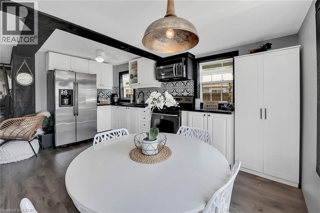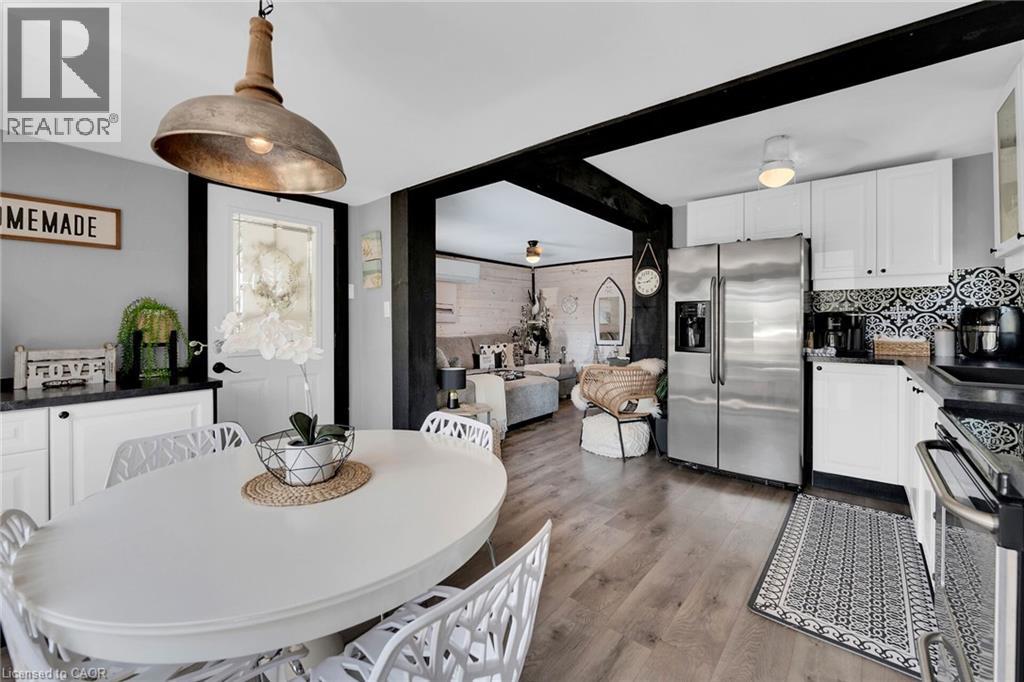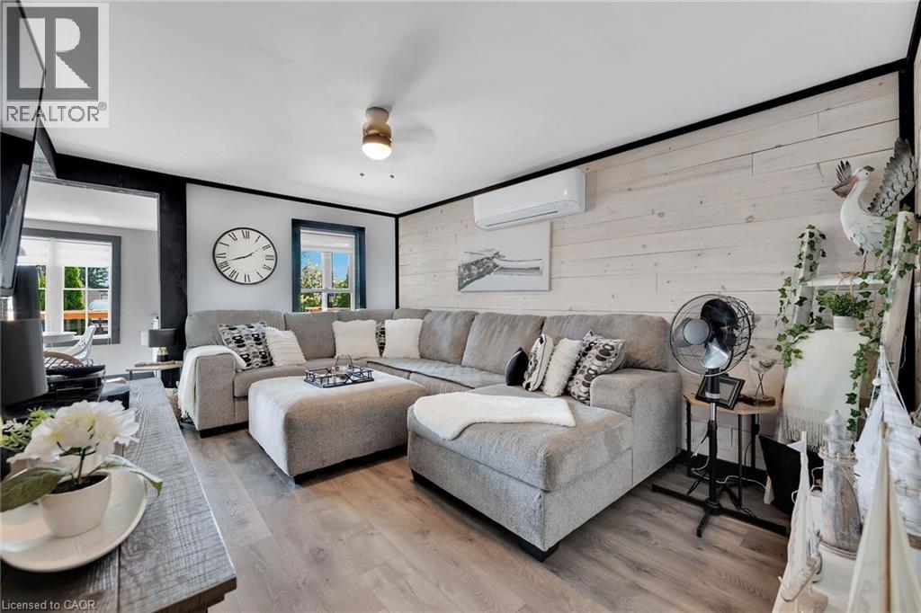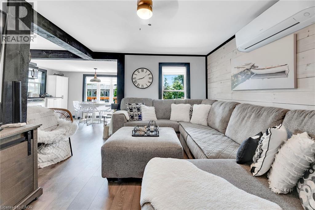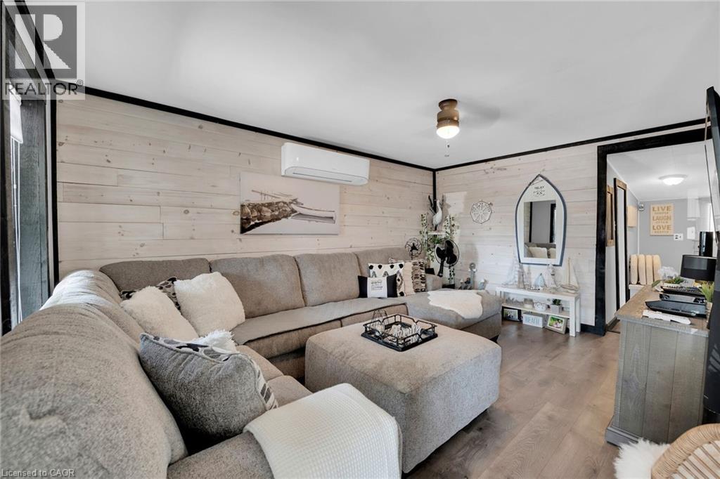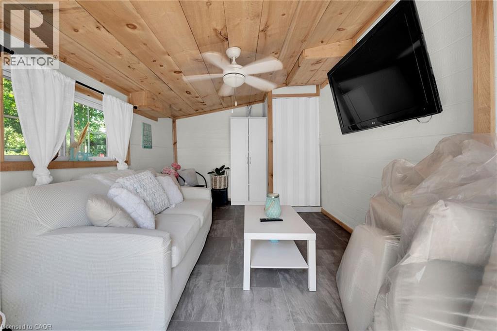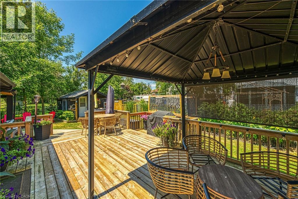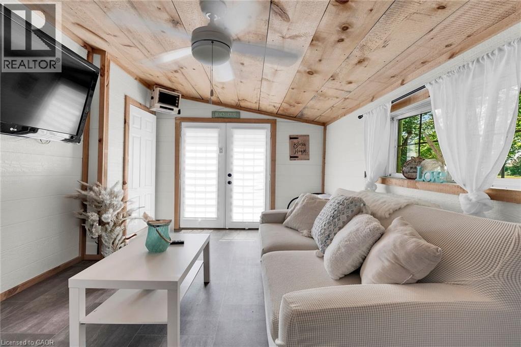 Searching for a “TURN-KEY” Lake Erie experience - you need to check out 1023 Lakeshore Road located in the heart of Selkirk’s popular Cottage Country - short walk to area beaches - less than 20 drive west to Port Dover's popular amenities. Ftrs “Better Than New” completely renovated board & baton nautical themed cottage situated on large manicured lot offering entertainer’s “DREAM” back yard highlighted w/100sf covered deck, BBQ deck, sun drenched gazebo mounted on 345sf deck, stand-up bar, 2 bedroom furnished bunkie. Paved drive extends to 140sf of front deck/landing enjoying partial water views - provides entry to 884sf of stylish living area showcasing modern white kitchen cabinetry enhanced w/black countertops & SS appliances - continues to inviting living room boasting lake facing - onto primary bedroom, adjacent bedroom housing bunk-beds, rear mud room & separate attached family room with independent heat/cool HVAC system - incorporates stacker washer/dryer. Notable Extras - economic mini-split heat/cool HVAC system, holding tank, cistern & 100 amp hydro. 45 min commute to Hamilton, Brantford & 403 - mins east of Selkirk. Cottage is situated on leased land in Featherstone Point Park - $4400 annual land lease fee incs property tax allows for 9 month occupancy (Jan/Feb/March must vacate) - enjoying nearby amenities includes 2 private beaches, children’s park & volleyball net. Attractive & Affordable - The “PERFECT” Lake Erie Getaway Destination Venue! (id:64974)