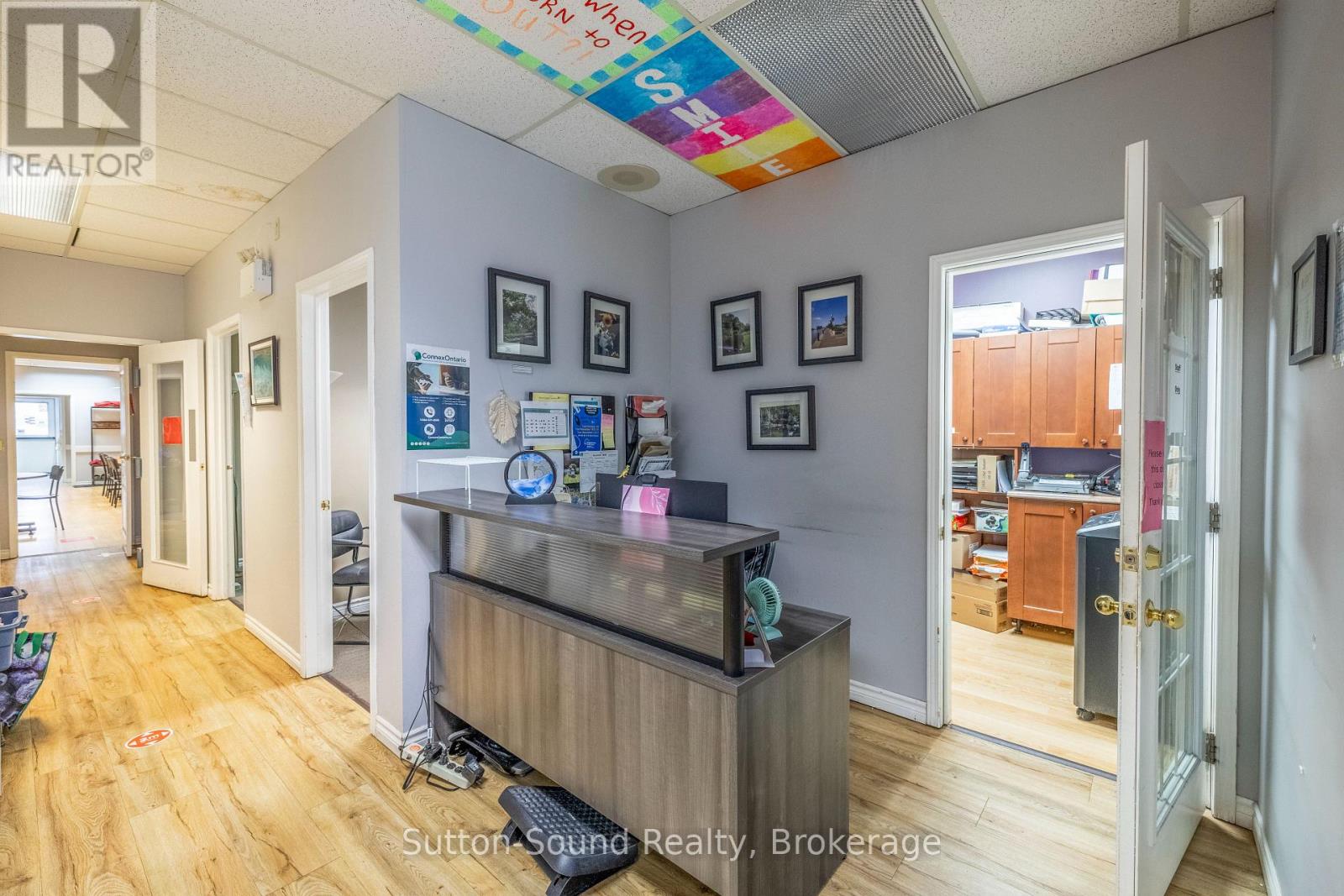 Located in the heart of Owen Sound's vibrant Downtown River District, this well-positioned commercial property presents an excellent opportunity for both owner-users and investors. The building is currently occupied with month-to-month tenancy, offering immediate flexibility for future plans. The property features two main Street entrances, allowing for the potential to split the space or accommodate multiple uses. The current layout includes 11 private offices, two reception areas, and a large boardroom, making it ideal for professional, medical, or service-oriented businesses. (See attached Floor Plans - measurements are approximate.) Additional highlights include two washrooms, a kitchenette, and rear access to 1st Avenue East with parking for three vehicles. Note: This property is being sold together with 1028 2nd Avenue East, creating a rare opportunity to acquire a larger footprint in one of Owen Sound's most desirable commercial corridors. (id:64974)